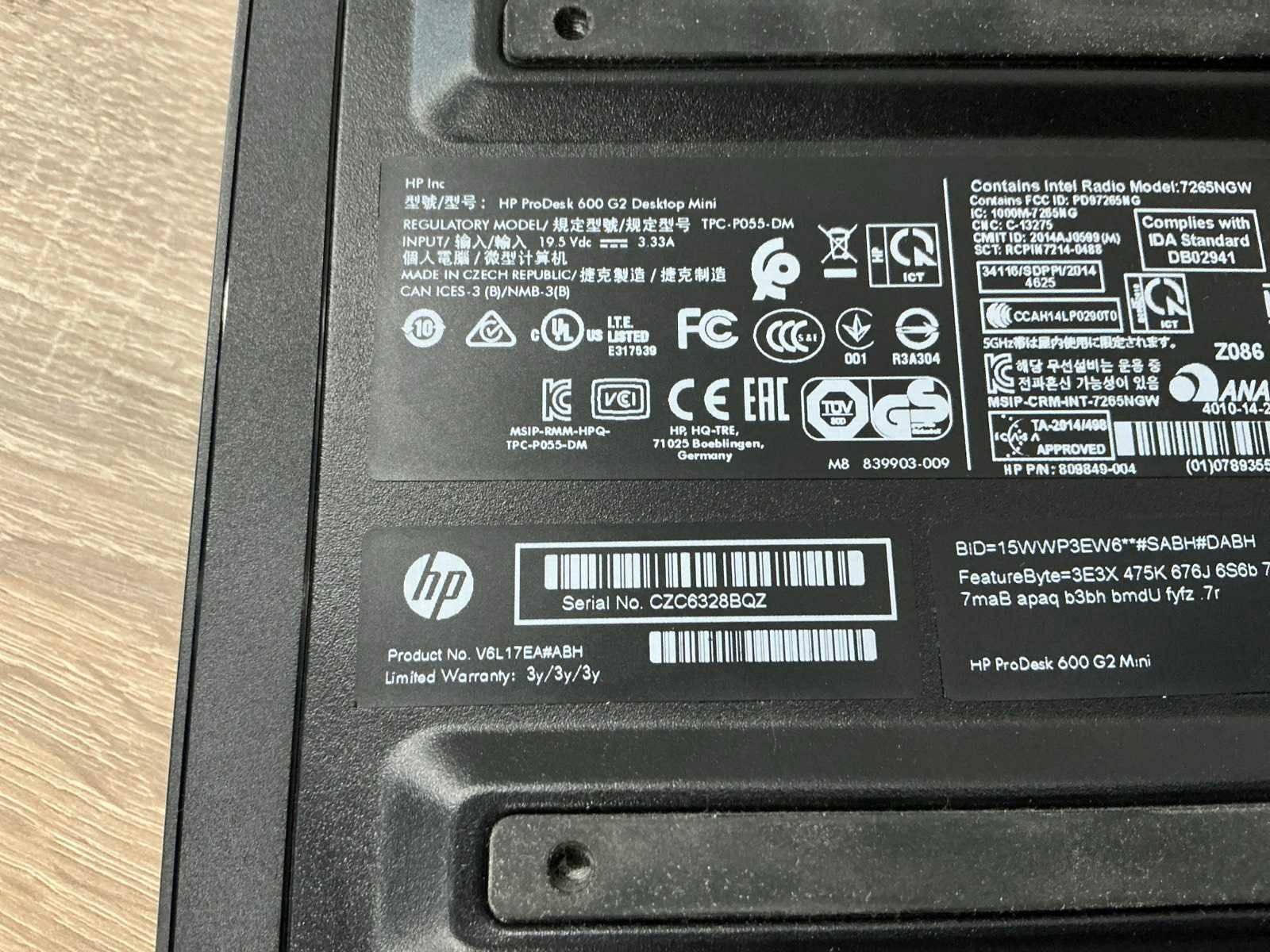 Merk: HP Type: HP ProDesk 600 G2 DM Processor type: Intel(R) Core(TM) i5-6500T CPU @ 2.50GHz,x86_64 @ 3.1GHz, logical CPUs: 4, Speed: 3100MHz Type datadrager: SSD/SATA 256.1GB Serienummer: CZC6328BQZ RAM Geheugen Type: 8GB