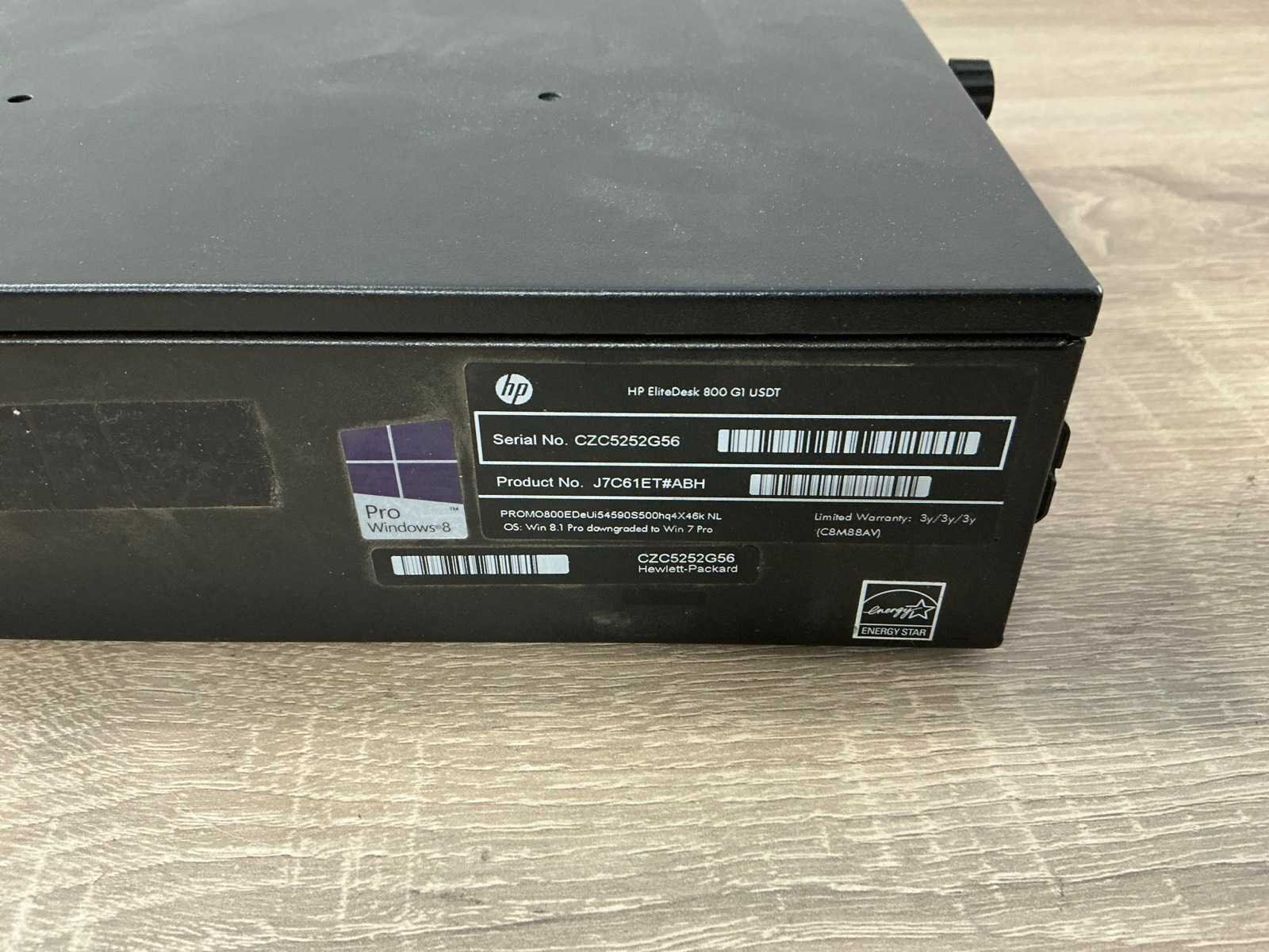 Merk: Hewlett-Packard Type: HP EliteDesk 800 G1 USDT Processor type: Intel(R) Core(TM) i5-4590S CPU @ 3.00GHz,x86_64 @ 3.7GHz, logical CPUs: 4, Speed: 3700MHz Type datadrager: HDD/SATA 500.1GB Serienummer: CZC5252G56 RAM Geheugen Type: 4GB