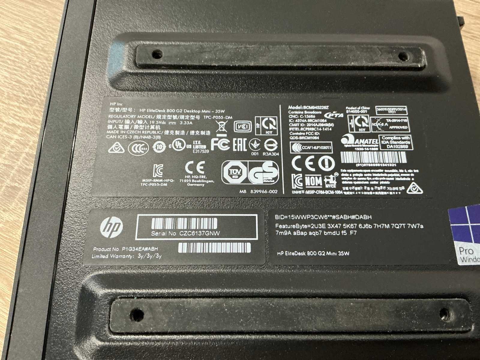 Merk: HP Type: HP EliteDesk 800 G2 DM 35W Processor type: Intel(R) Core(TM) i5-6500T CPU @ 2.50GHz,x86_64 @ 3.1GHz, logical CPUs: 4, Speed: 3100MHz Type datadrager: SSD/SATA 250.1GB Serienummer: CZC6137GNW RAM Geheugen Type: 8GB