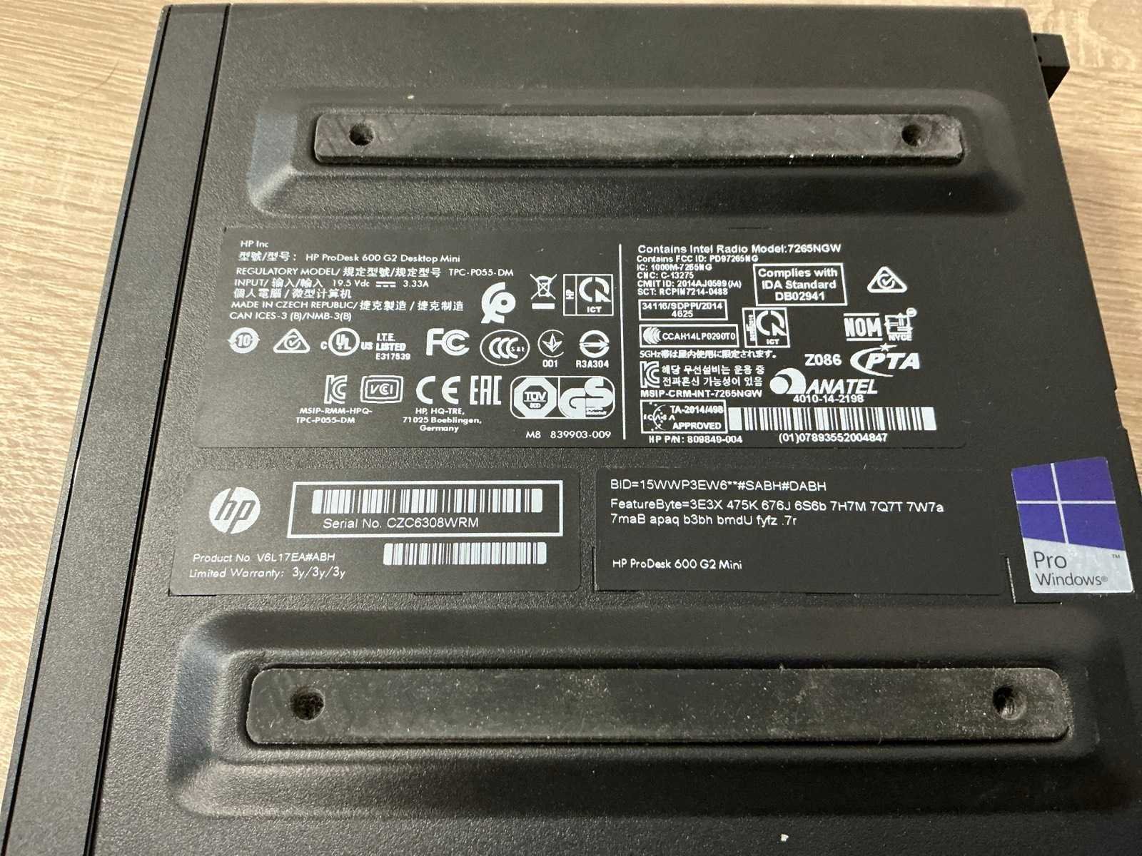 Merk: HP Type: HP ProDesk 600 G2 DM Processor type: Intel(R) Core(TM) i5-6500T CPU @ 2.50GHz,x86_64 @ 3.1GHz, logical CPUs: 4, Speed: 3100MHz Type datadrager: SSD/SATA 256.1GB Serienummer: CZC6308WRM RAM Geheugen Type: 8GB