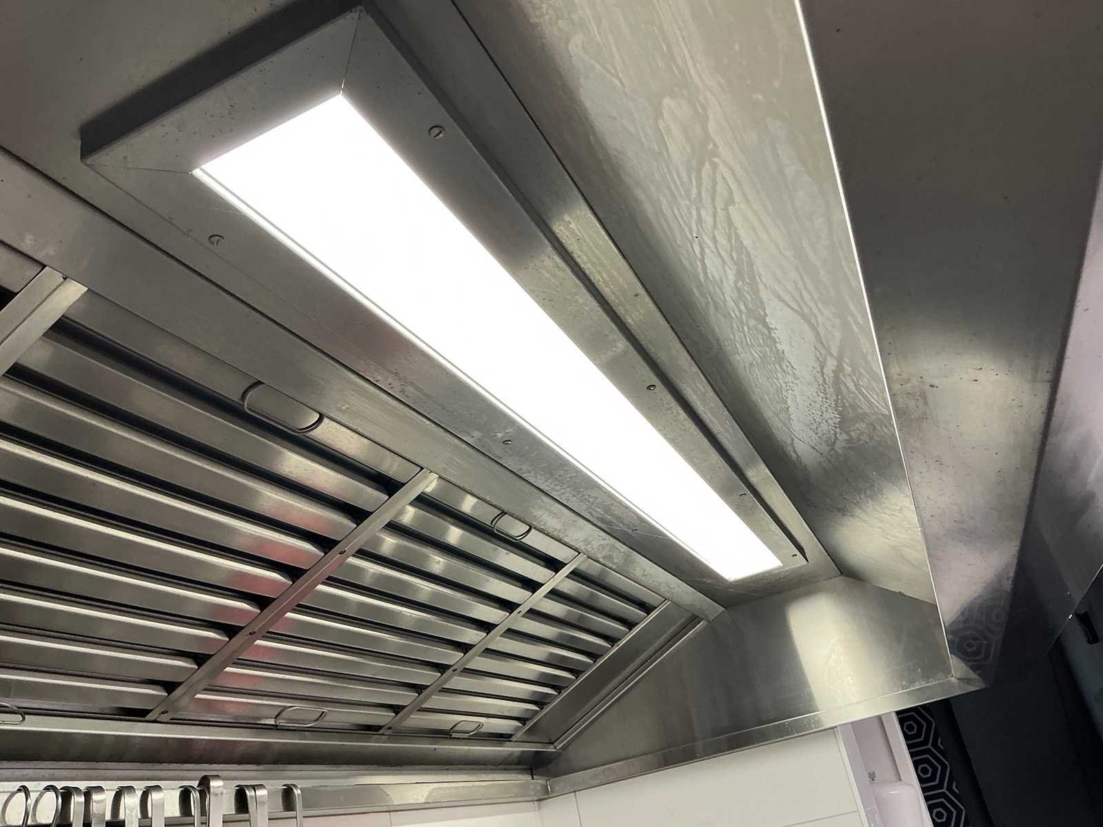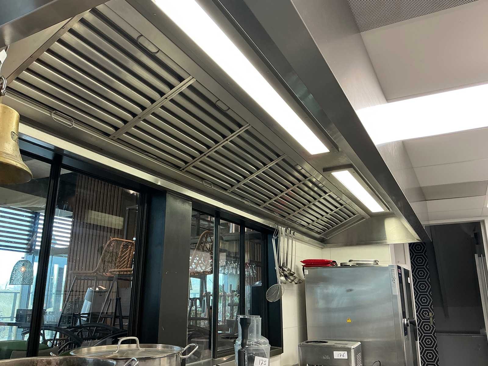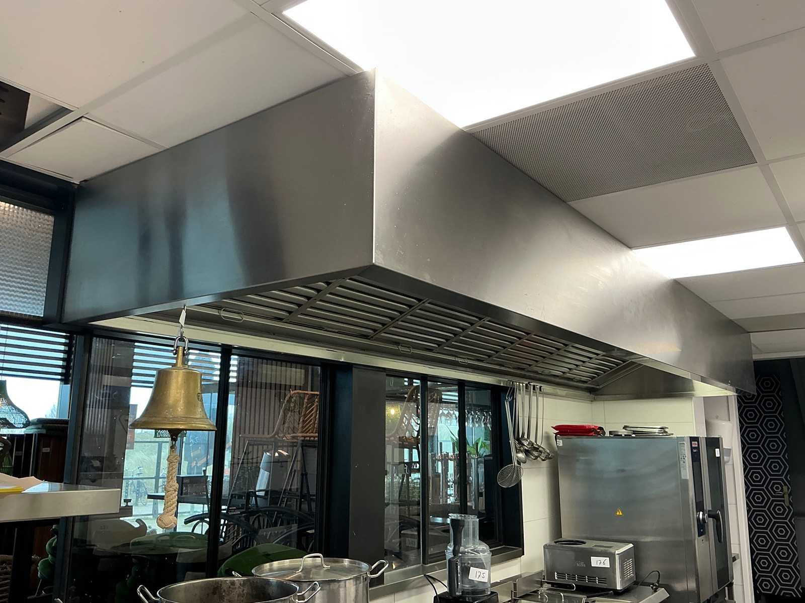 Dit kavel dient door de koper professioneel gedemonteerd te worden. Afzuiginstallatie op dak niet meegeleverd. Lengte: 400cm Breedte: 110cm Hoogte: 40cm