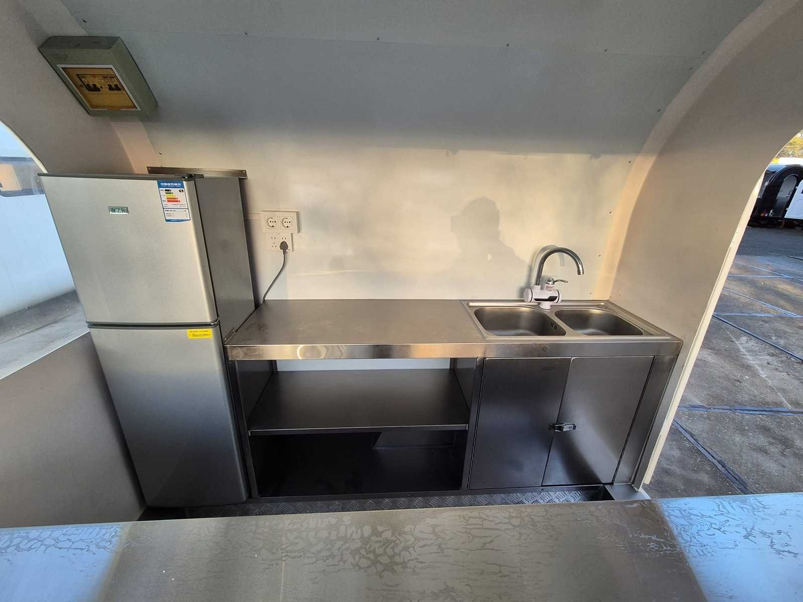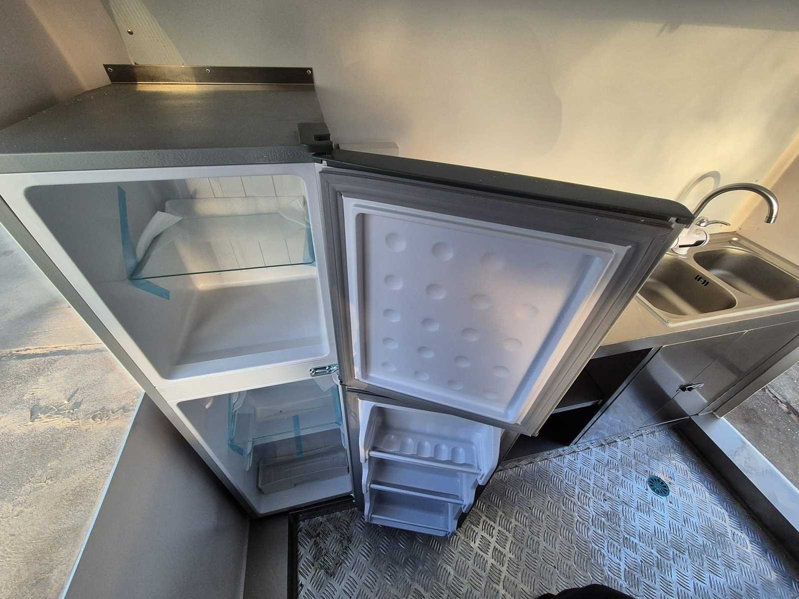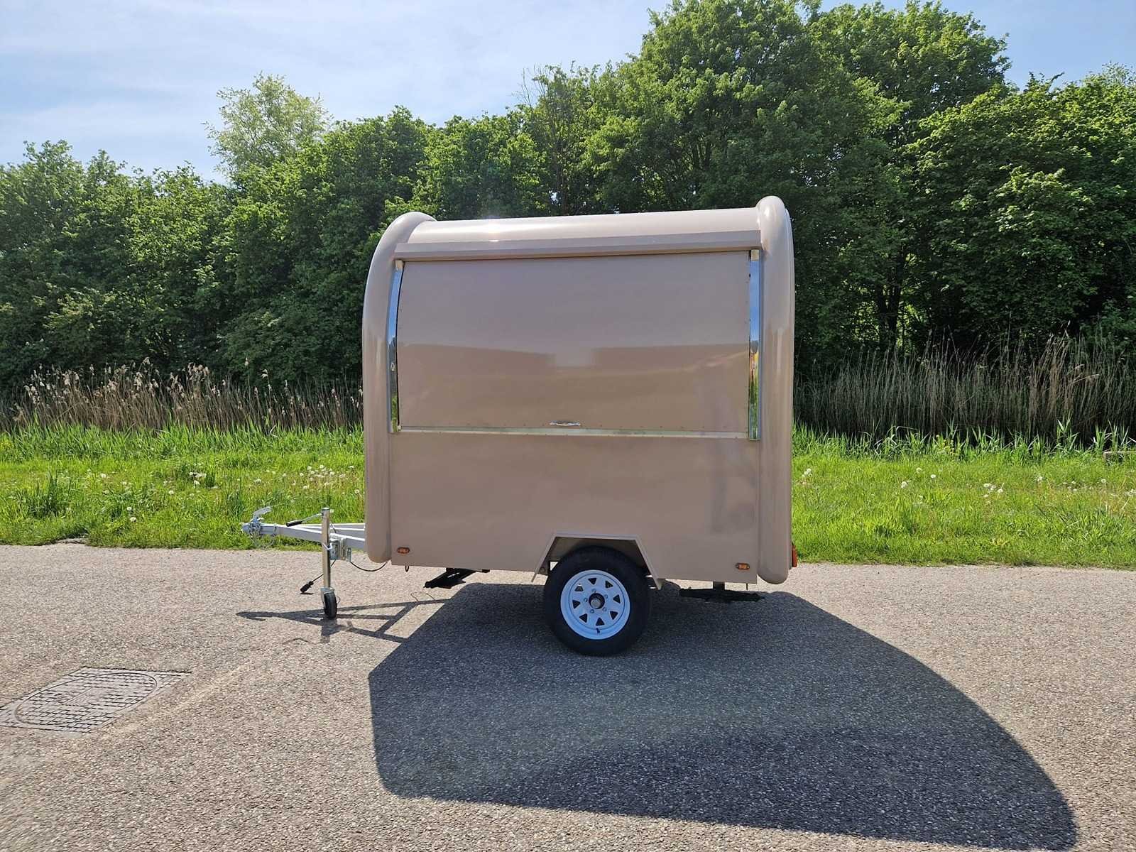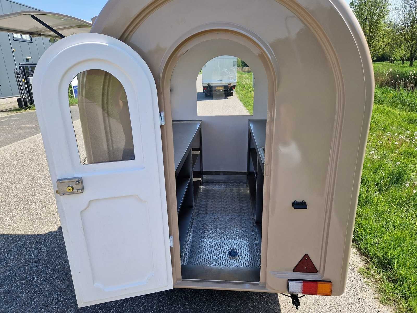 Beige foodtruck met ledverlichting, rvs inbouwkeuken / werkbank, koelkast, groepenkast, stabilisatiepoten. Afmetingen en gewicht: Lengte: 220 cm (cabine), totaal 320 cm Breedte: 160 cm Hoogte: 230 cm Gewicht: 550 KG Bouwjaar: 2025 Aantal assen: 1 Ledig gewicht: 550kg Hoogte: 230cm Lengte: 320cm Breedte: 160cm