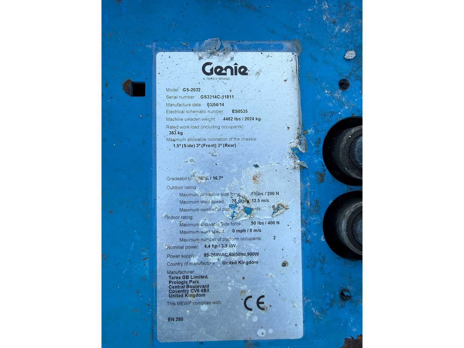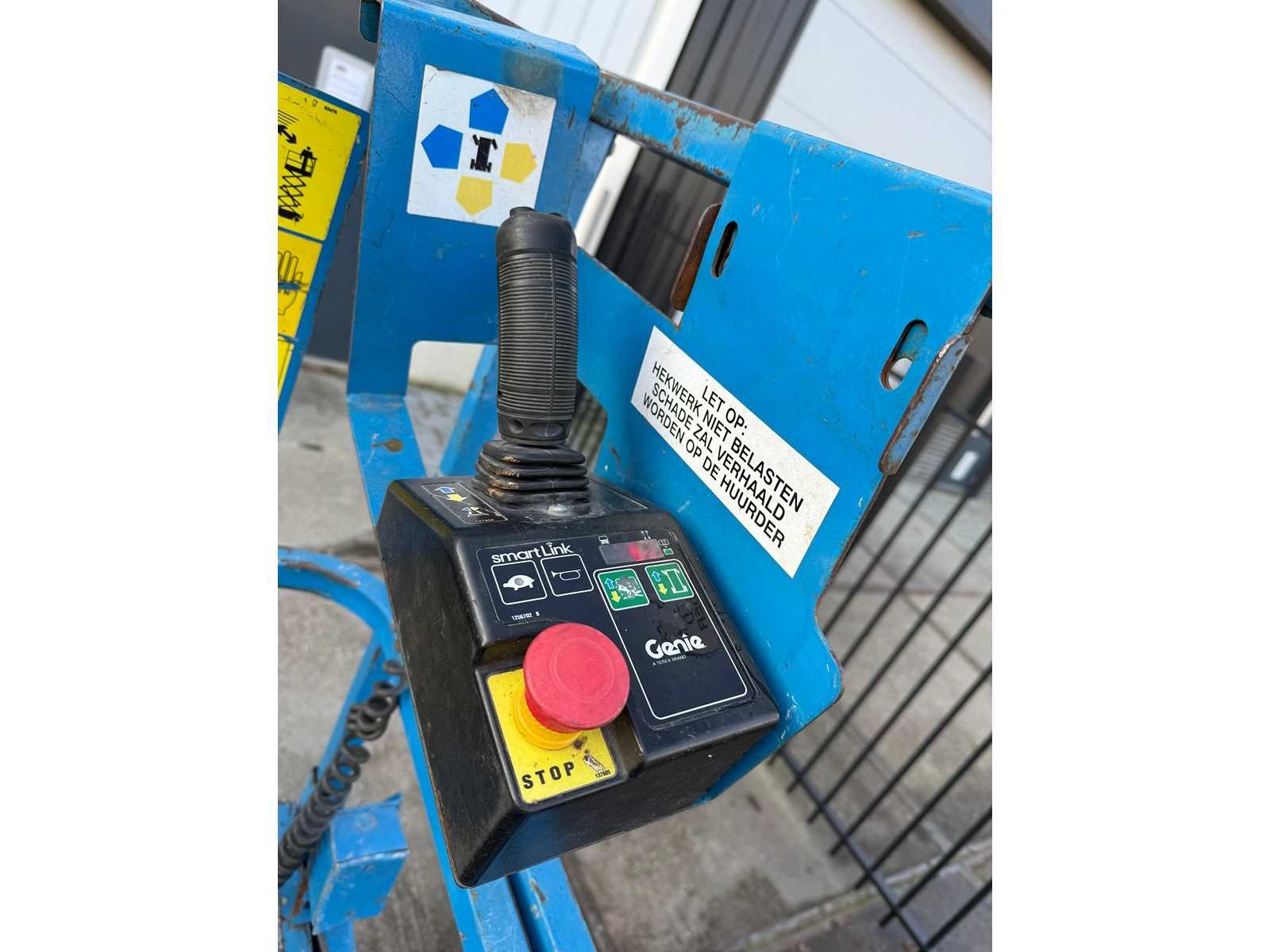 Voorzien van uitschuifbaar platform Merk: Genie Type: GS 2032 Bouwjaar: 2014 Serienummer: gs3214C-11811 Elektrisch: true Schaarhoogwerker: true Werkhoogte: 8000mm Plateau afm. l: 2200mm Plateau afm. b: 600mm Platform capaciteit: 363kg Afgelezen urenstand: 554 Eigen gewicht: 2024kg Totale afmeting L: 2440mm Totale afmeting Breedte: 810mm Totale afmeting Hoogte: 1750mm