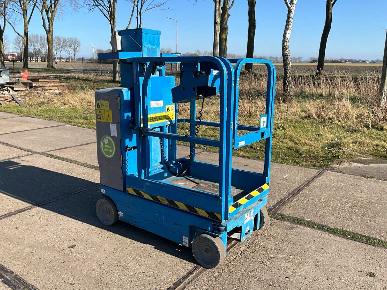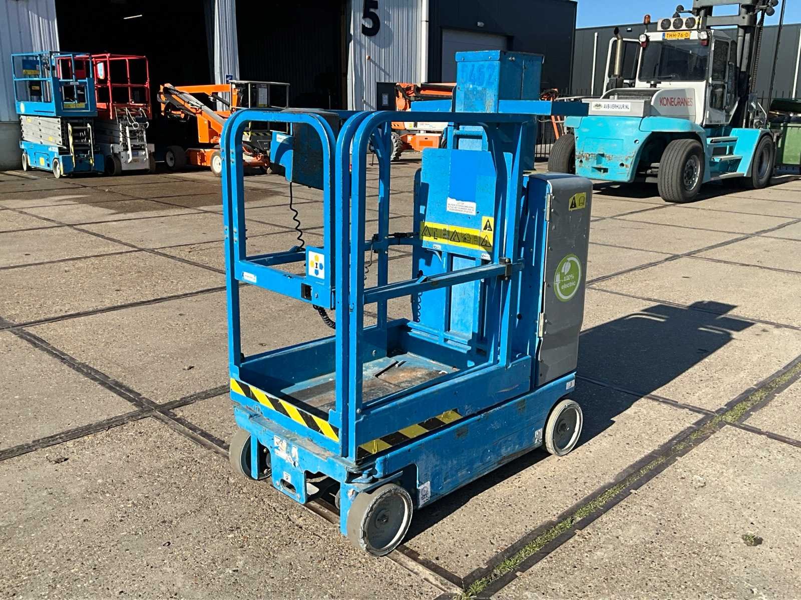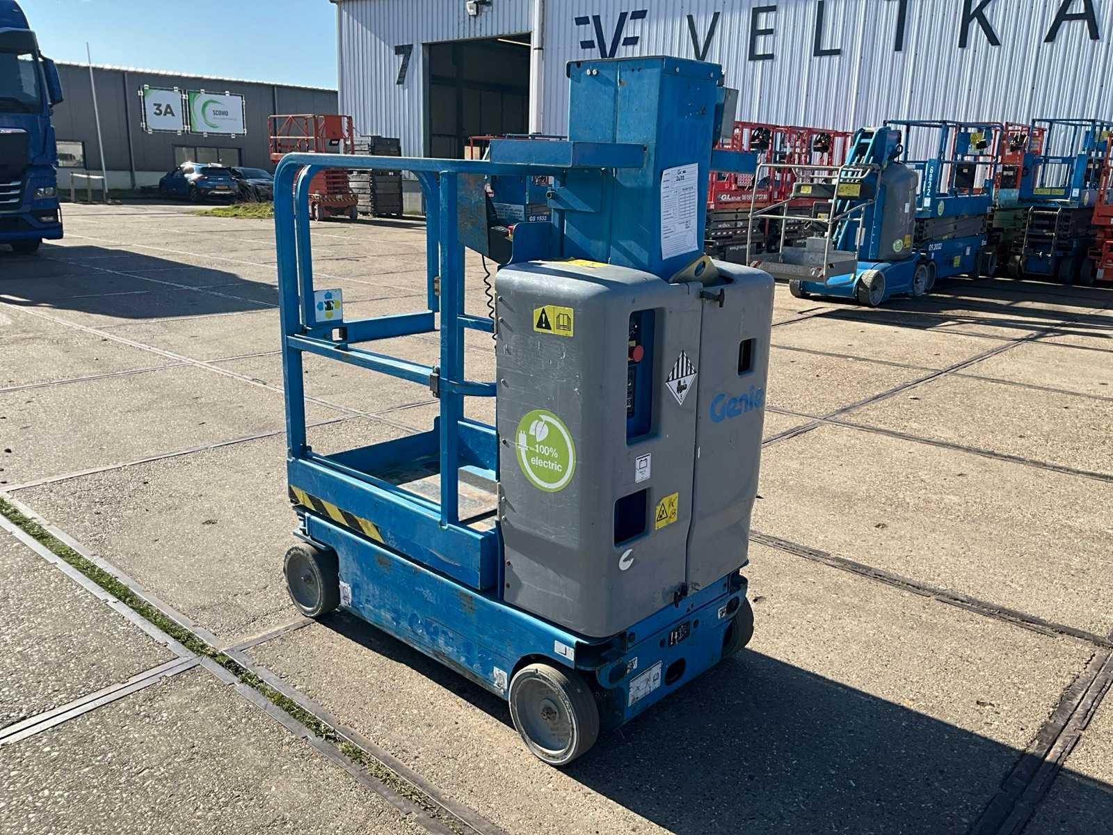 Platformhoogte 3660 mm; v.v. non-marking banden Merk: Genie Type: GRC-12 Bouwjaar: 2016 Serienummer: 2422 Elektrisch: true Masthoogwerker: true Werkhoogte: 5660mm Plateau afm. l: 600mm Plateau afm. b: 900mm Platform capaciteit: 227kg Afgelezen urenstand: 385 Totale afmeting L: 800mm Totale afmeting Breedte: 1370mm Totale afmeting Hoogte: 1730mm