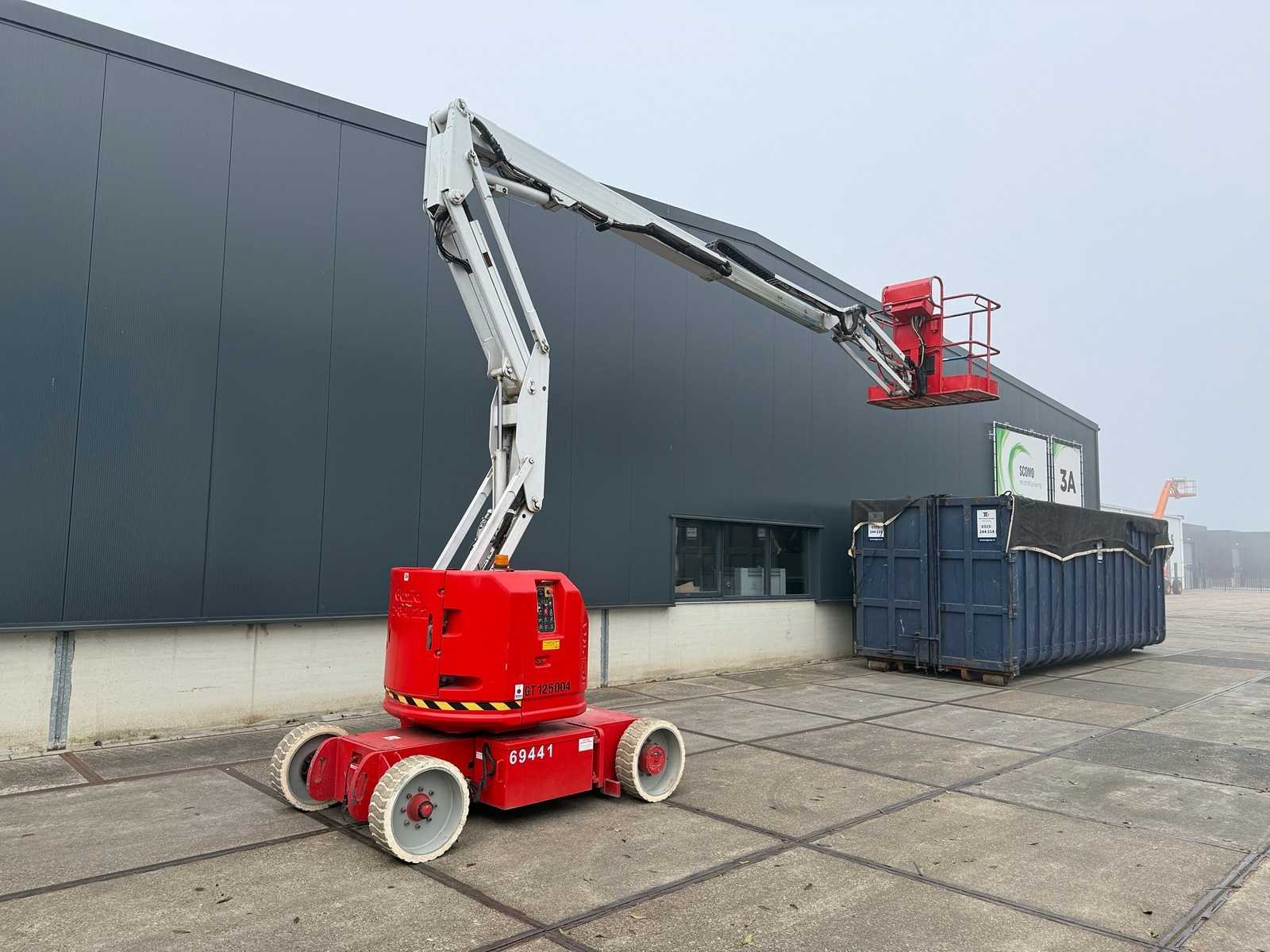 Platformhoogte 10.520 mm Merk: Genie Type: z34/22 Bouwjaar: 2008 Serienummer: Z34N088213 Elektrisch: true Knikarm hoogwerker: true Werkhoogte: 12520mm Horizontale rijkwijdte: 6770mm Platform capaciteit: 227kg Afgelezen urenstand: 976 Eigen gewicht: 5227kg Totale afmeting L: 5640mm Totale afmeting Breedte: 1730mm Totale afmeting Hoogte: 2000mm
