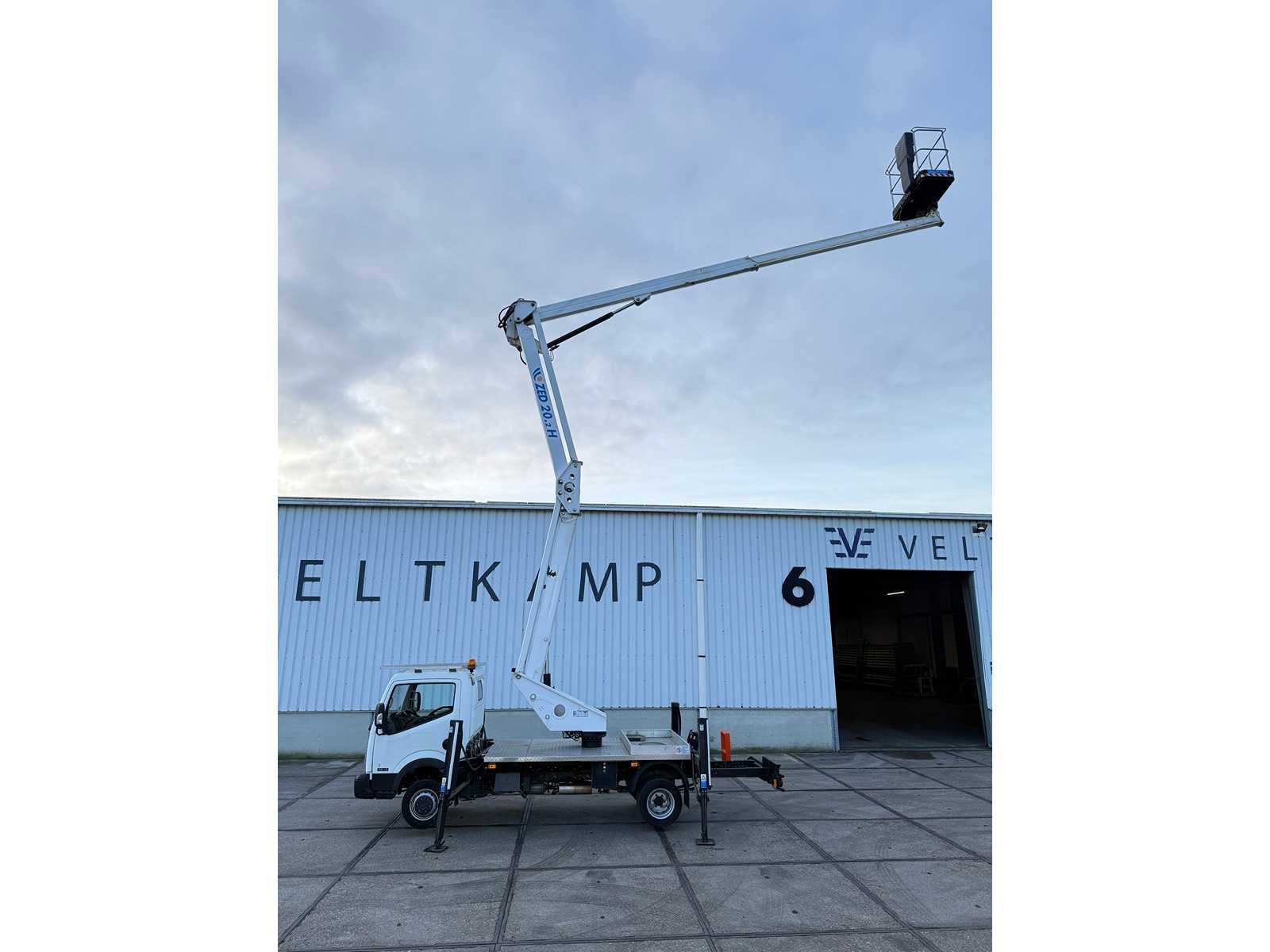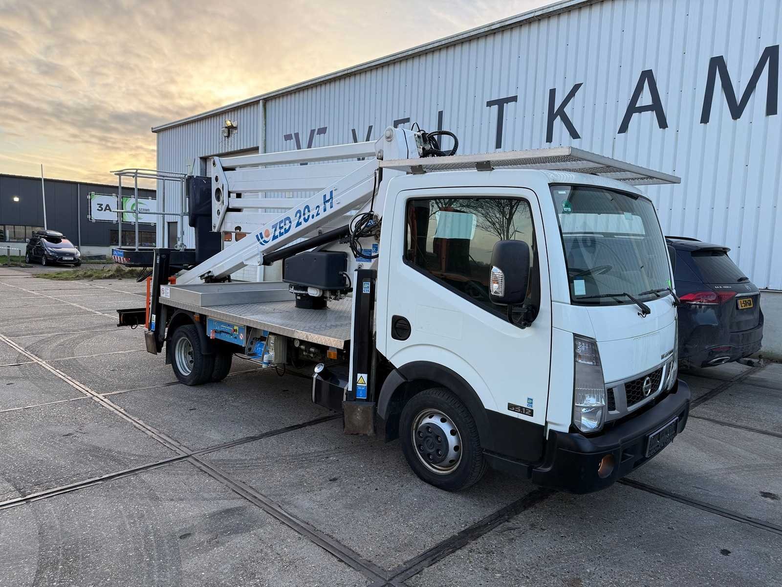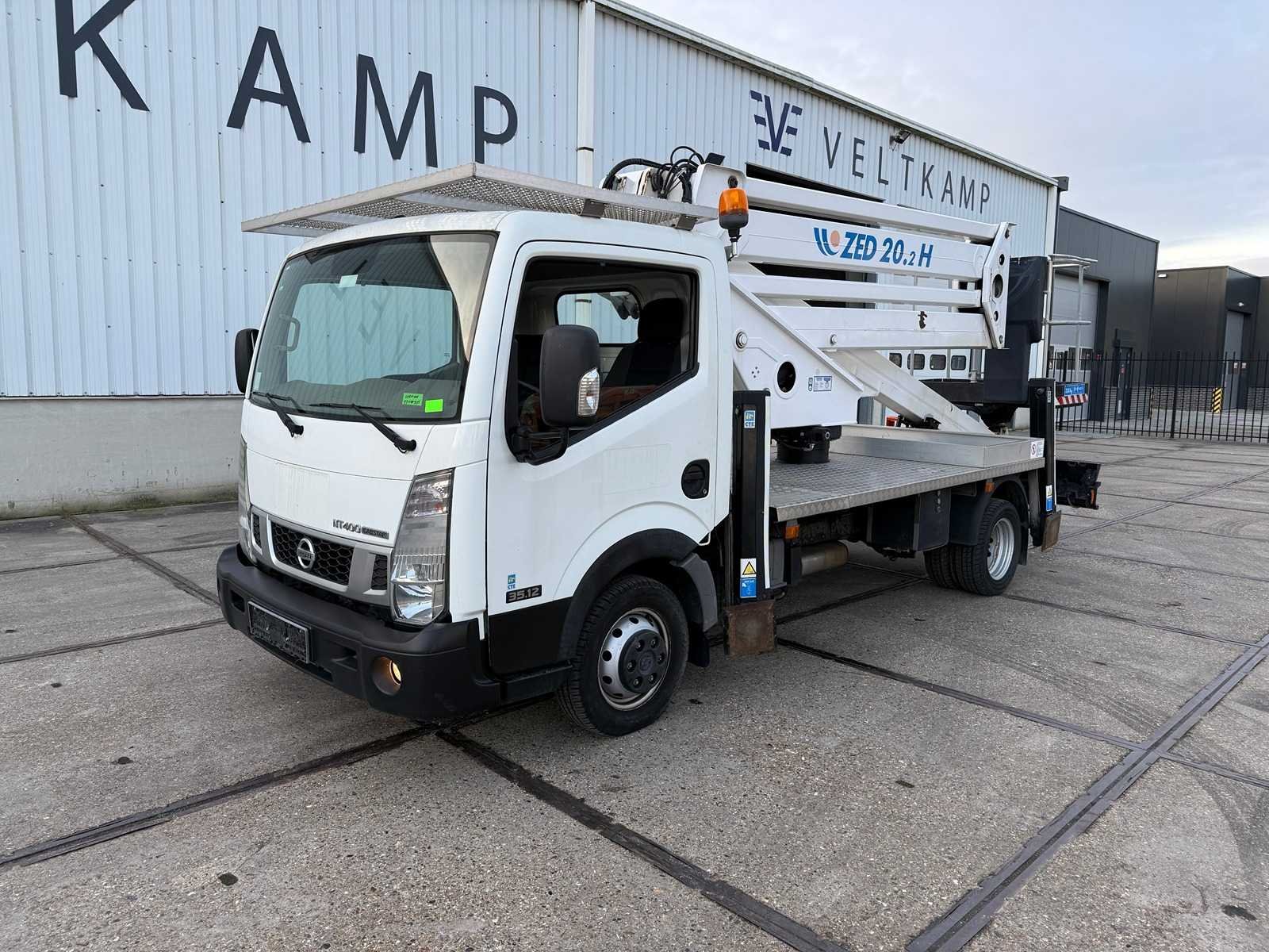Aslast: 1- 1750kg, 2- 2200kg. Hoogwerker: merk Hematec, type ZED 20.2 H, werklast 230kg, platform 1330x630mm, max werkhoogte 18000mm draaiuren 1799; let op, Duits kenteken: B U 2479 Merk: Nissan Type: NT400 Model: Cabstar Bouwjaar: 2015 Chassisnummer: VWASUFF24F5172864 Afgelezen kilometerstand: 24771km Brandstof: diesel Aandrijving: Achter Transmissie: Handgeschakeld Tellerstand niet afleesbaar: true Aantal deuren: 2 Aantal cilinders: 4 Carrosserie: Hoogwerker