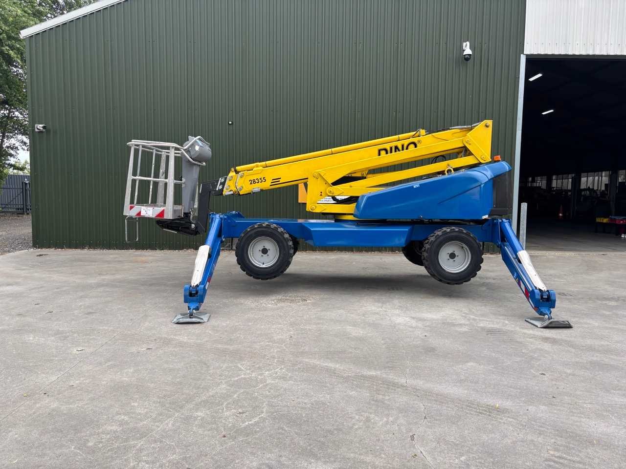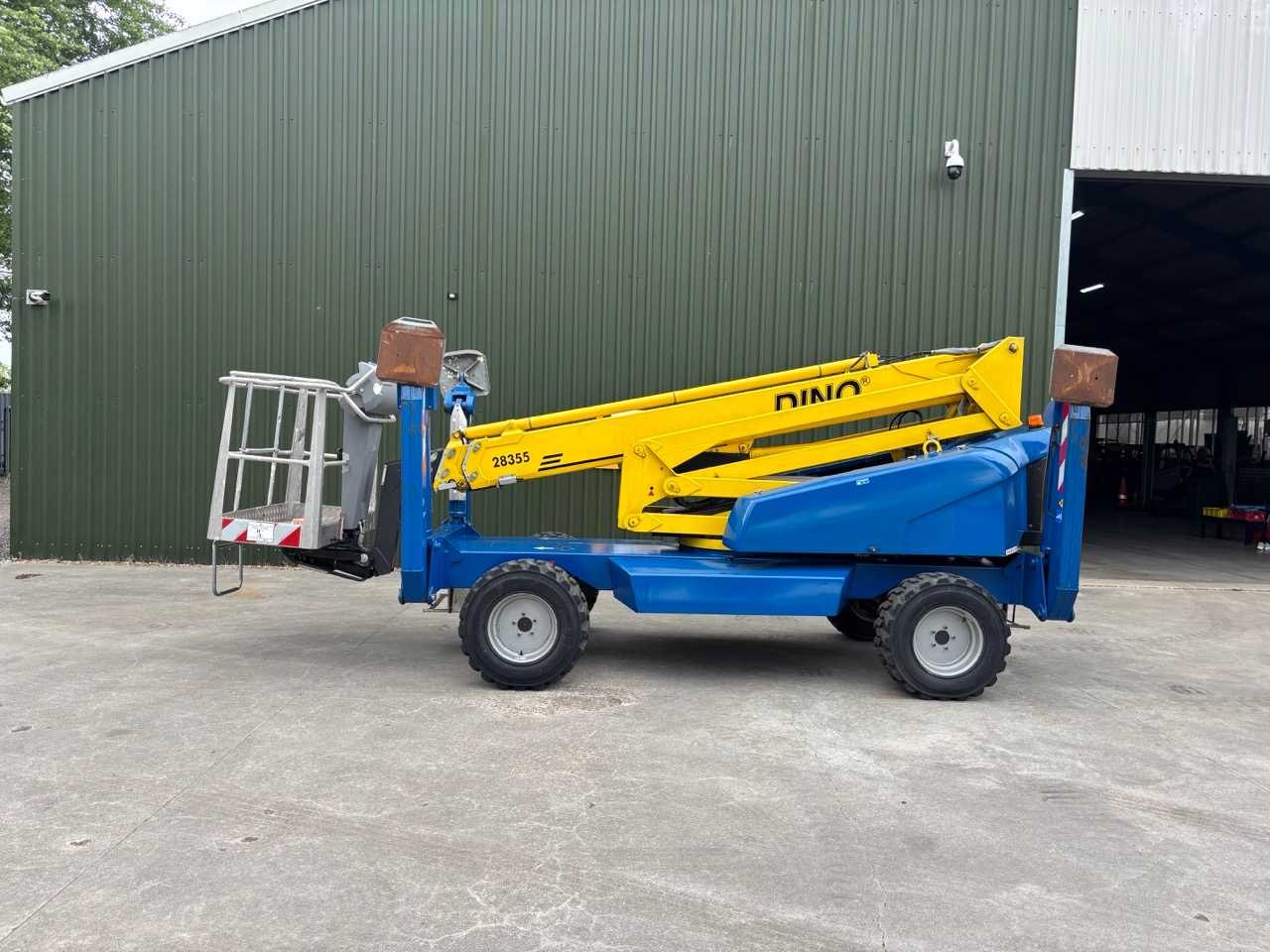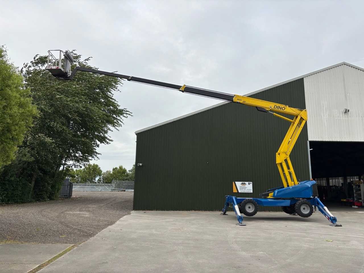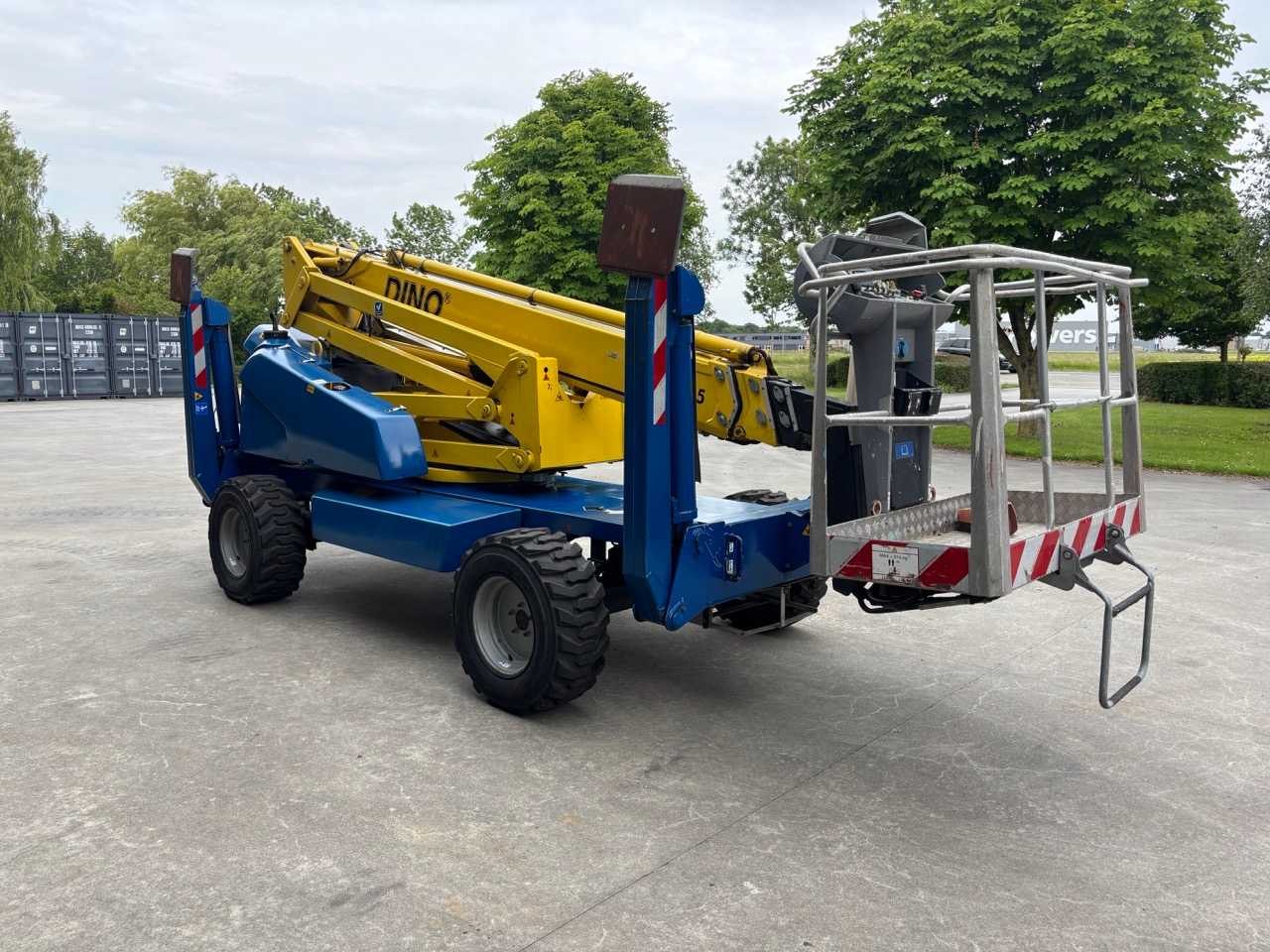 4 wiel aangedreven en 4 wiel gestuurd (4x4x4), voorzien van “Caterpillar” dieselmotor Merk: DINO Type: 205RXT Bouwjaar: 2007 Serienummer: YGC205RXT70020029 Diesel: true Telescoop hoogwerker: true Werkhoogte: 20000mm Horizontale rijkwijdte: 13000mm Plateau afm. l: 680mm Plateau afm. b: 1500mm Platform capaciteit: 215kg Eigen gewicht: 4100kg Totale afmeting L: 5800mm Totale afmeting Breedte: 2600mm Totale afmeting Hoogte: 2450mm