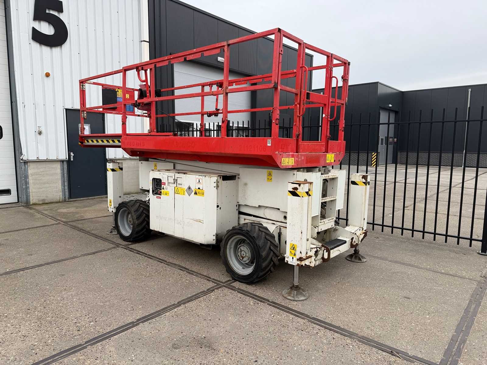 Voorzien van “Kubota” dieselmotor en uitschuifbaar platform; 4x4 aangedreven Merk: Genie Type: GS 3369 RT Bouwjaar: 2013 Serienummer: GS6913-2347 Diesel: true Schaarhoogwerker: true Werkhoogte: 12000mm Plateau afm. l: 2800mm Plateau afm. b: 1350mm Platform capaciteit: 454kg Afgelezen urenstand: 1557 Eigen gewicht: 3980kg Totale afmeting L: 3800mm Totale afmeting Breedte: 1750mm Totale afmeting Hoogte: 2530mm