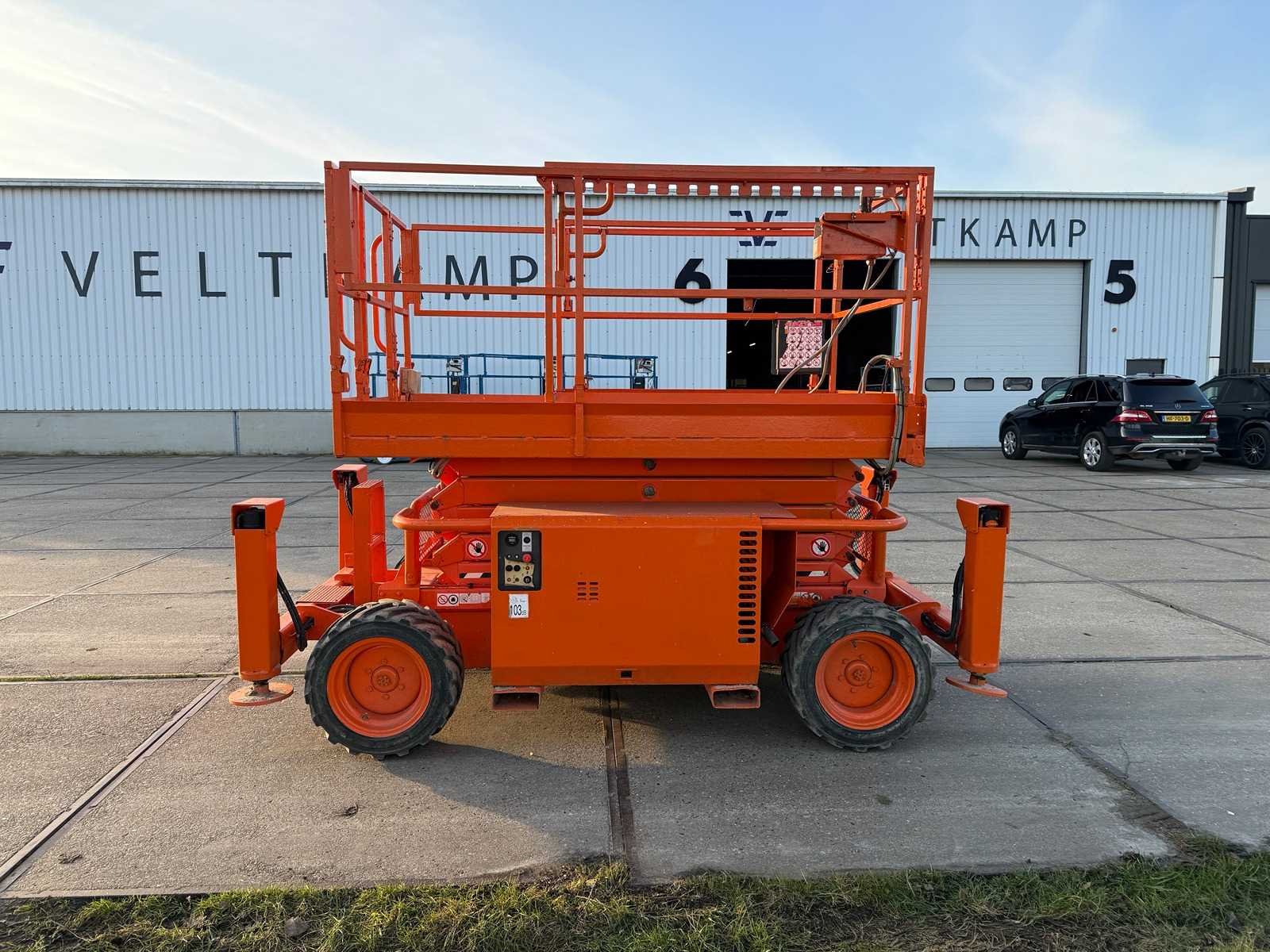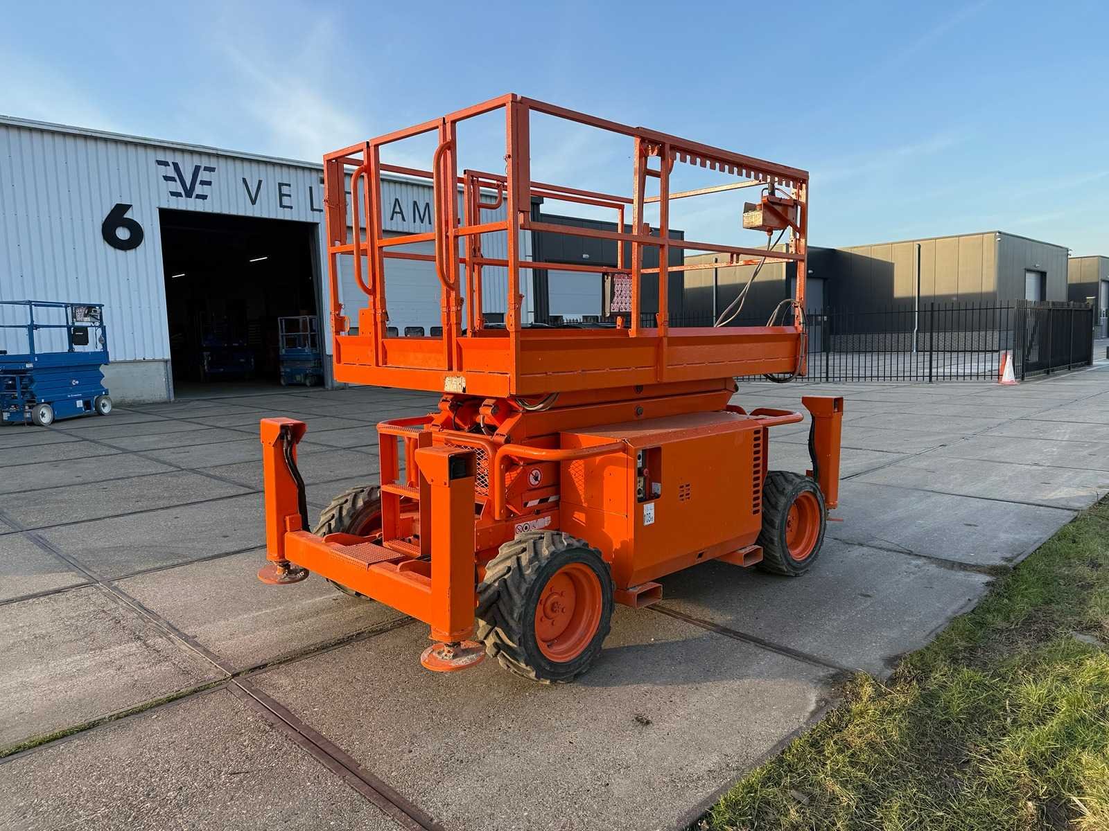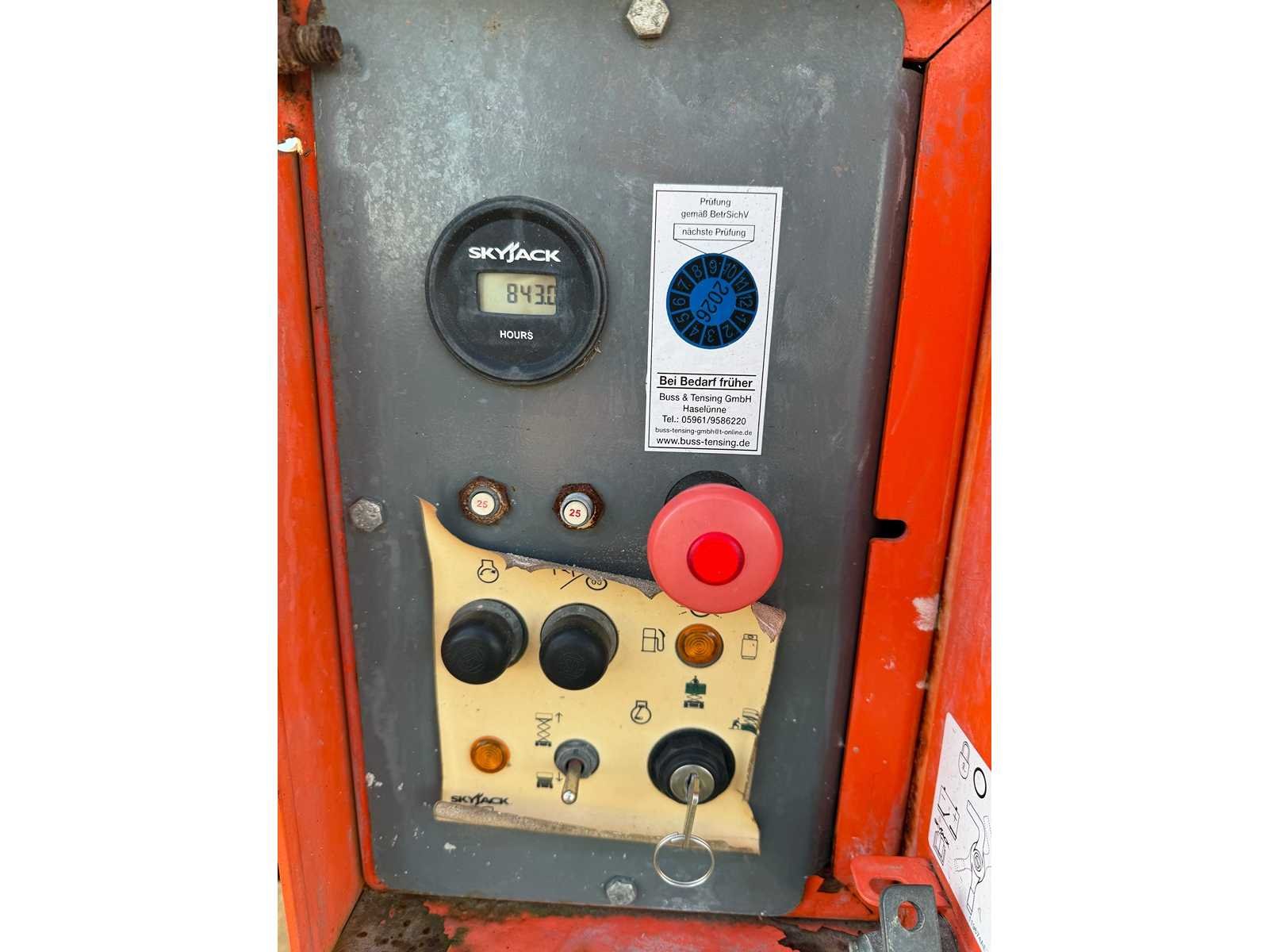 Platformhoogte 9700 mm; v.v. volrubber banden; Bedieningskast hoogte regeling boven mist. Merk: SkyJack Type: SJ6832RT Bouwjaar: 2017 Serienummer: 37009818 Diesel: true Schaarhoogwerker: true Werkhoogte: 11700mm Plateau afm. l: 2080mm Plateau afm. b: 1530mm Platform capaciteit: 454kg Afgelezen urenstand: 834 Eigen gewicht: 3770kg Totale afmeting L: 3300mm Totale afmeting Breedte: 1720mm Totale afmeting Hoogte: 2500mm