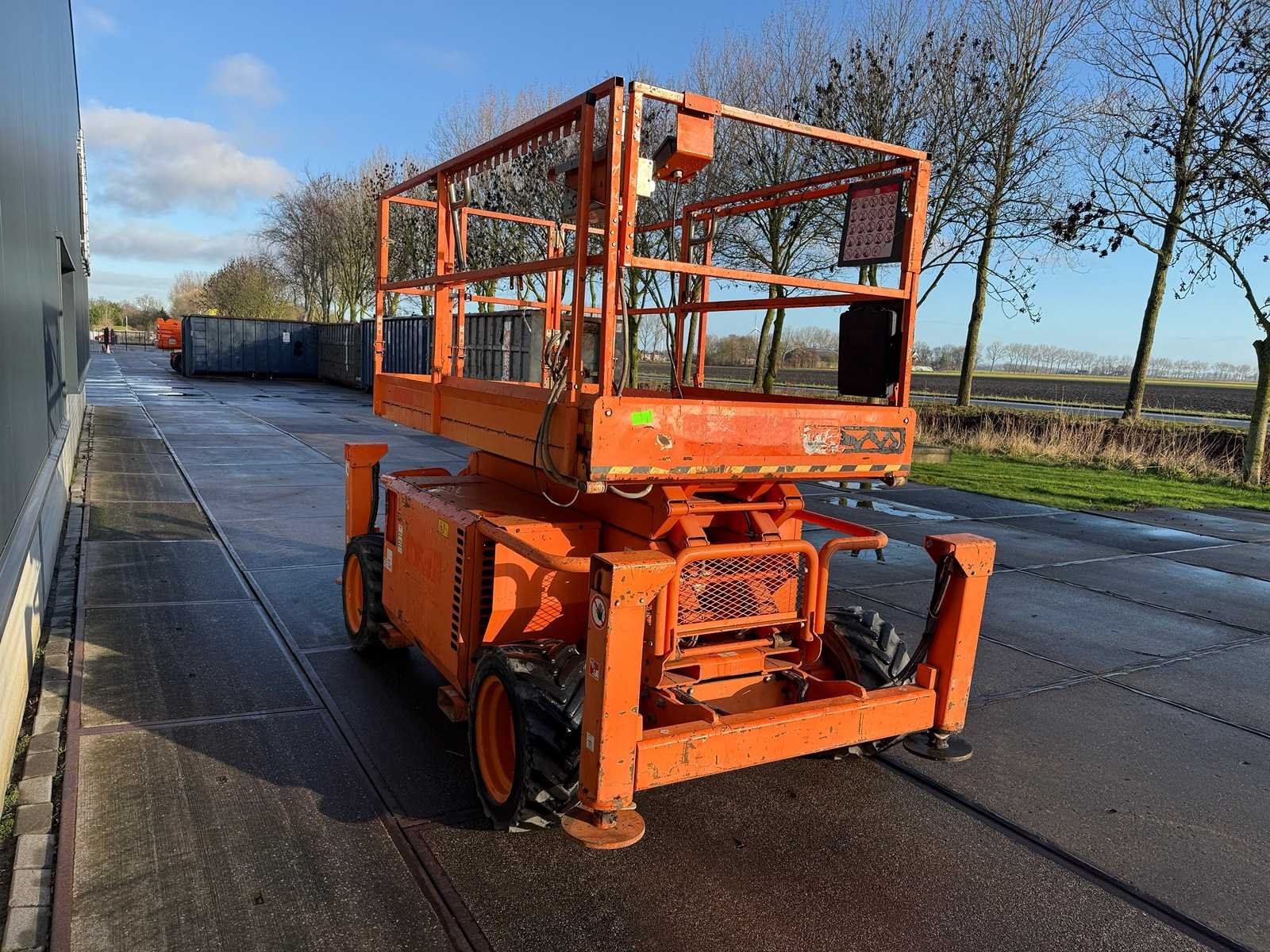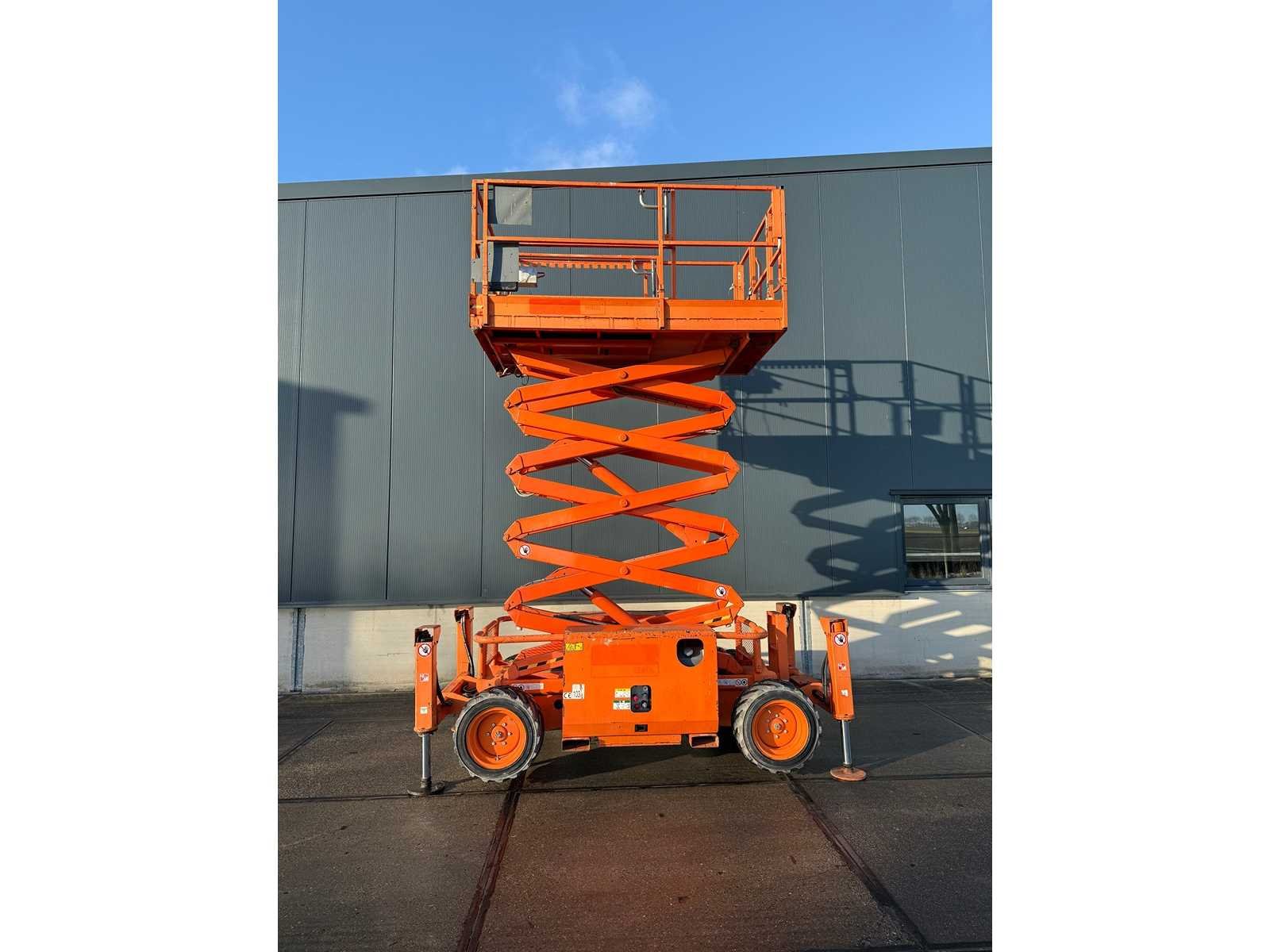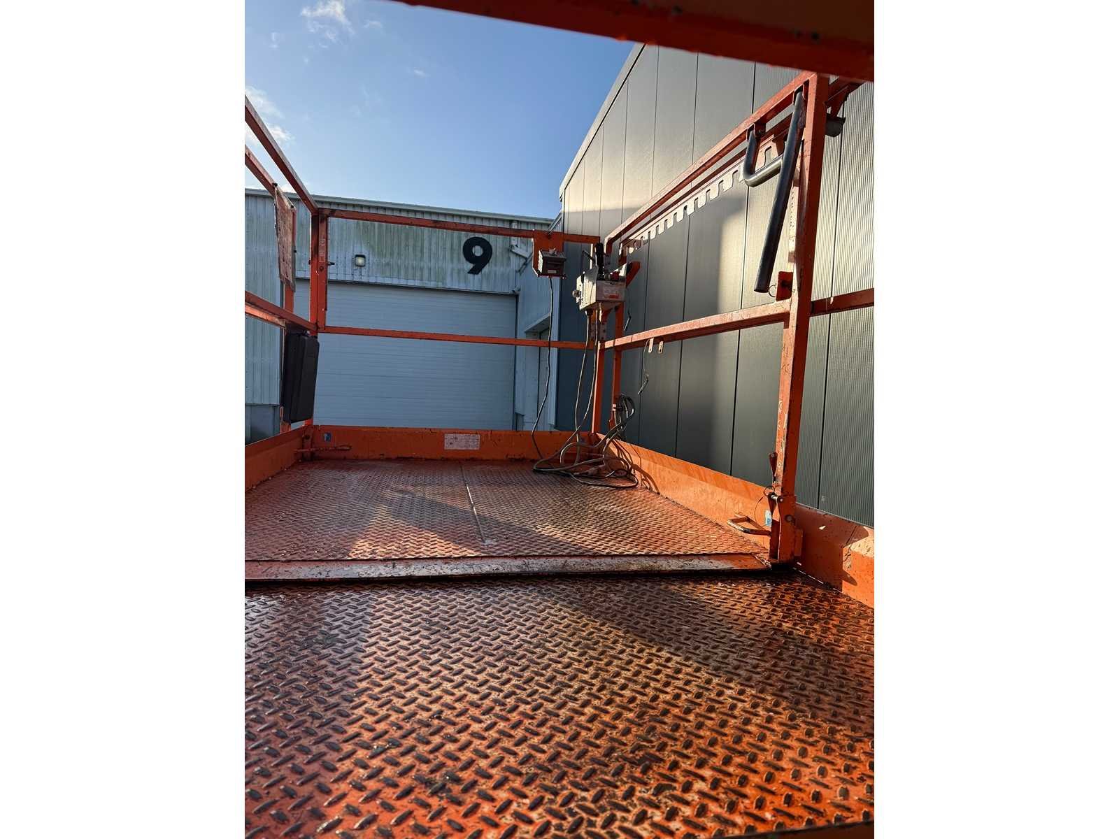Platformhoogte 9700 mm; v.v. volrubber banden; Let op dit kavel is voorzien van kenteken: TLD-82-H Merk: SkyJack Type: SJ6832RT Bouwjaar: 2015 Serienummer: 37006192 Diesel: true Schaarhoogwerker: true Werkhoogte: 11700mm Plateau afm. l: 2080mm Plateau afm. b: 1530mm Platform capaciteit: 454kg Afgelezen urenstand: 834 Eigen gewicht: 3770kg Totale afmeting L: 3300mm Totale afmeting Breedte: 1720mm Totale afmeting Hoogte: 2500mm