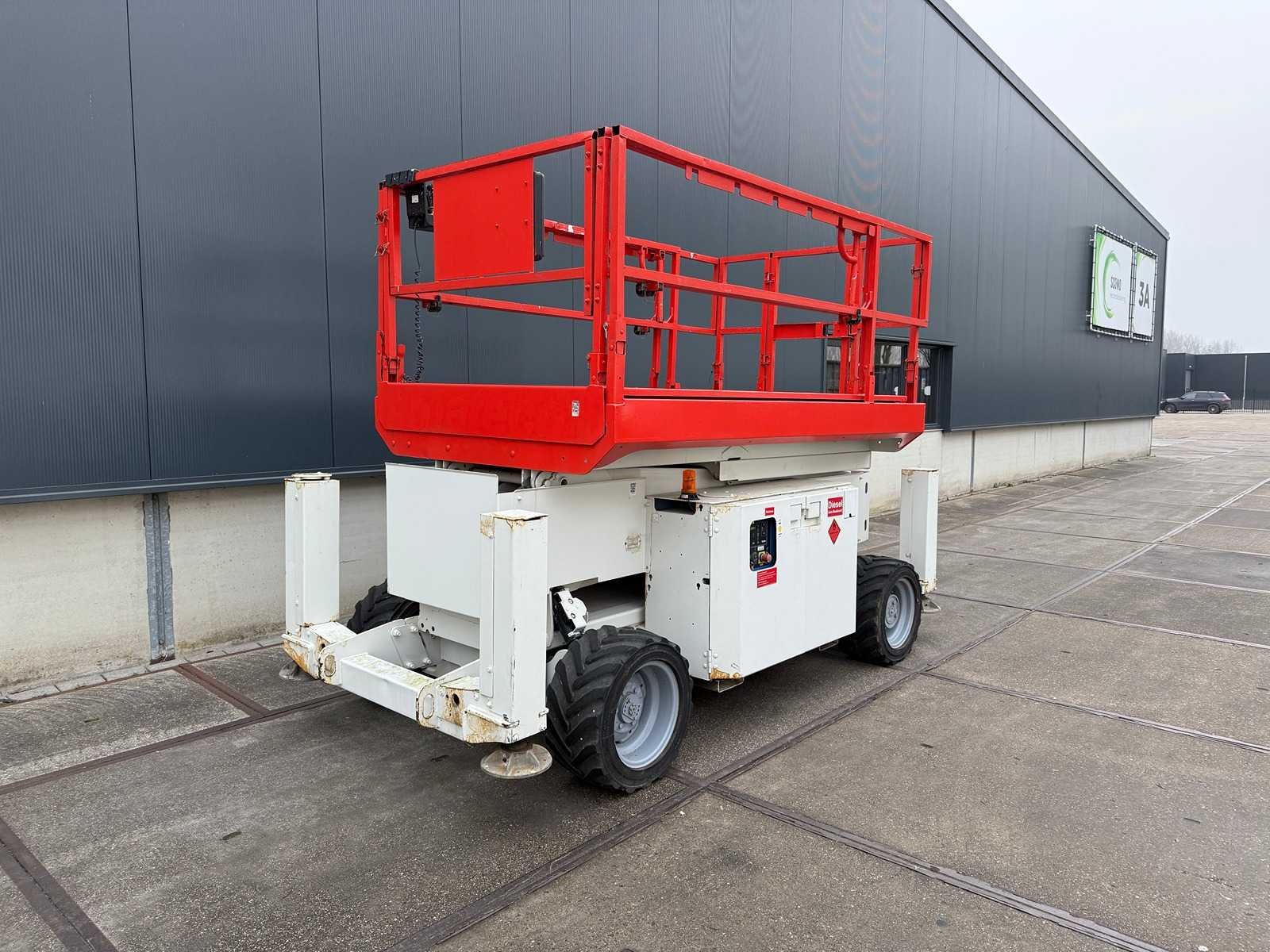 Voorzien van “Kubota” dieselmotor en uitschuifbaar platform; 4x4 aangedreven Merk: Genie Type: GS 2669 RT Bouwjaar: 2013 Serienummer: GS6913-1942 Diesel: true Schaarhoogwerker: true Werkhoogte: 10000mm Plateau afm. l: 2800mm Plateau afm. b: 1350mm Platform capaciteit: 680kg Afgelezen urenstand: 1683 Eigen gewicht: 3798kg Totale afmeting L: 3800mm Totale afmeting Breedte: 1750mm Totale afmeting Hoogte: 2530mm