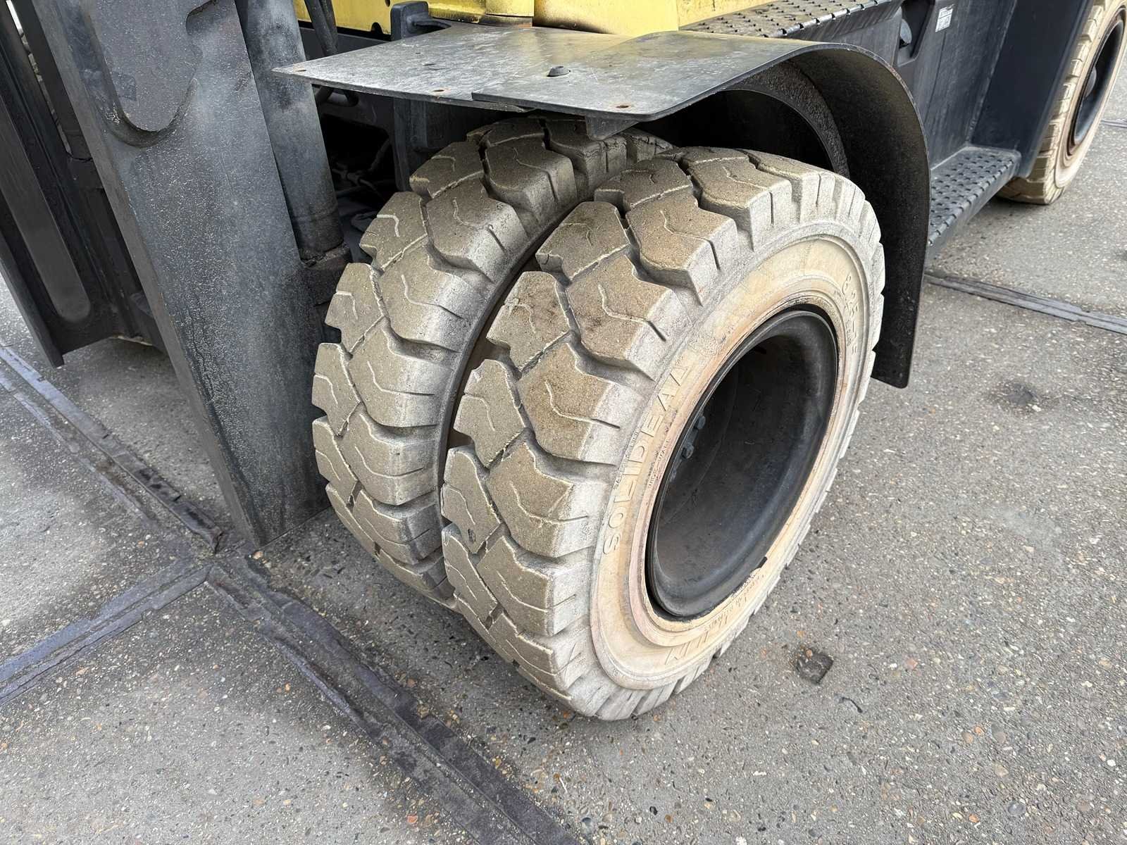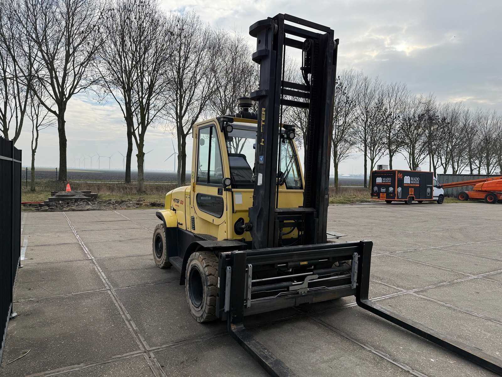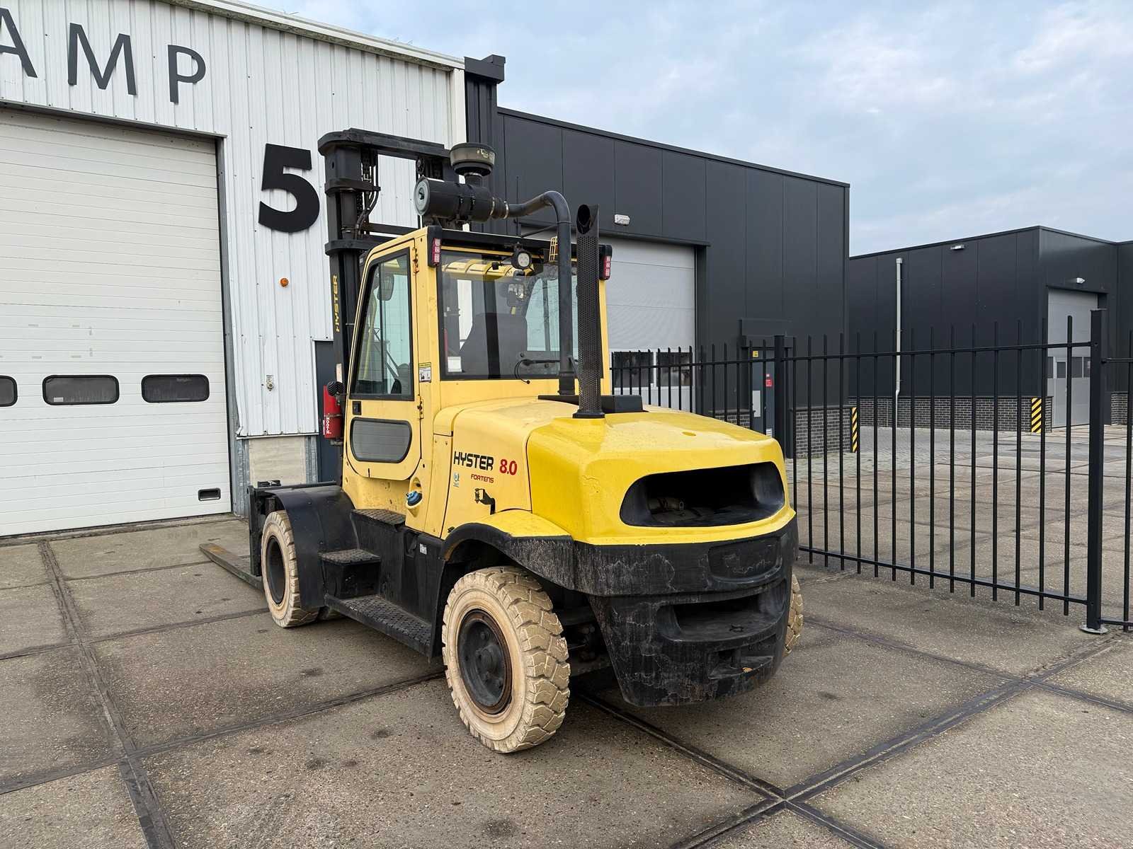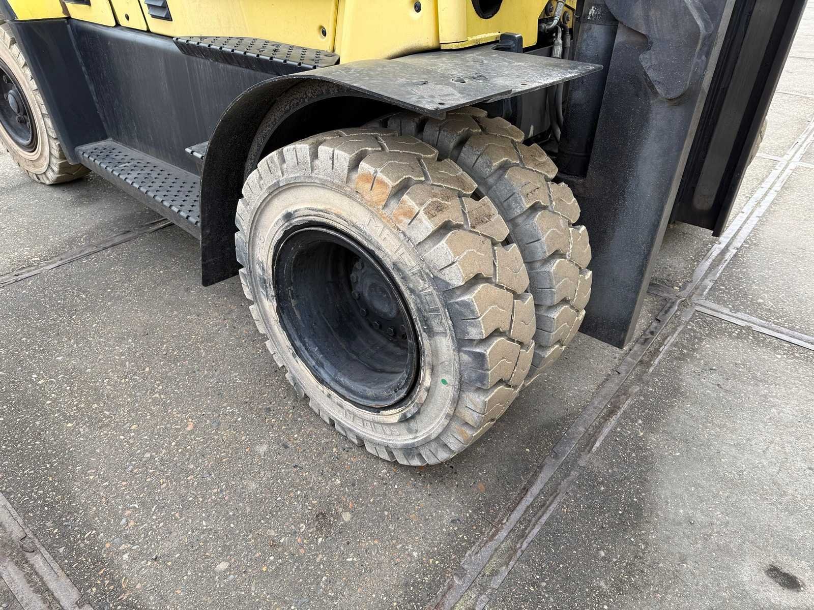 Ad-blue Merk: HYSTER Type: H8.0TT6 Bouwjaar: 2018 Serienummer: C299E01666S Brandstof: Diesel Soort band: Volrubber banden Aantal wielen: 4 Afgelezen urenstand: 11152 Side-shift: true Hydraulisch verstelbare lepels: true Duplex mast: true Eigen gewicht: 12436kg Hefvermogen: 4800kg Lepellengte: 2400mm Vol rubber banden: true Minimale doorrijhoogte: 3450mm Totale afmeting L: 6300mm Totale afmeting Breedte: 2289mm Totale afmeting Hoogte: 3450mm Diesel: true
