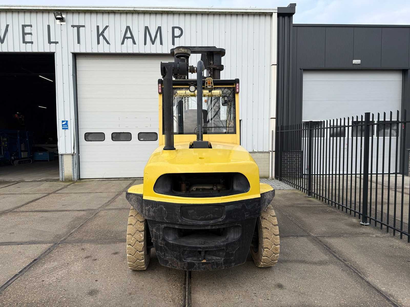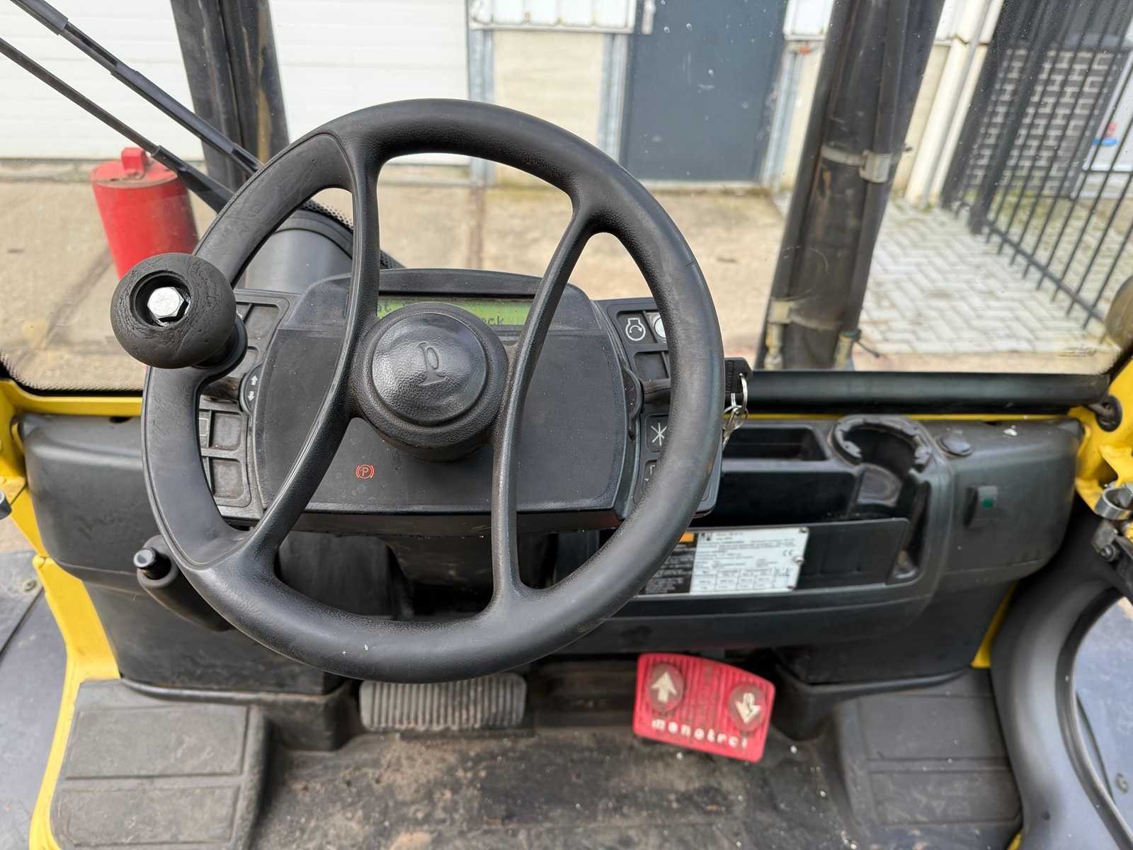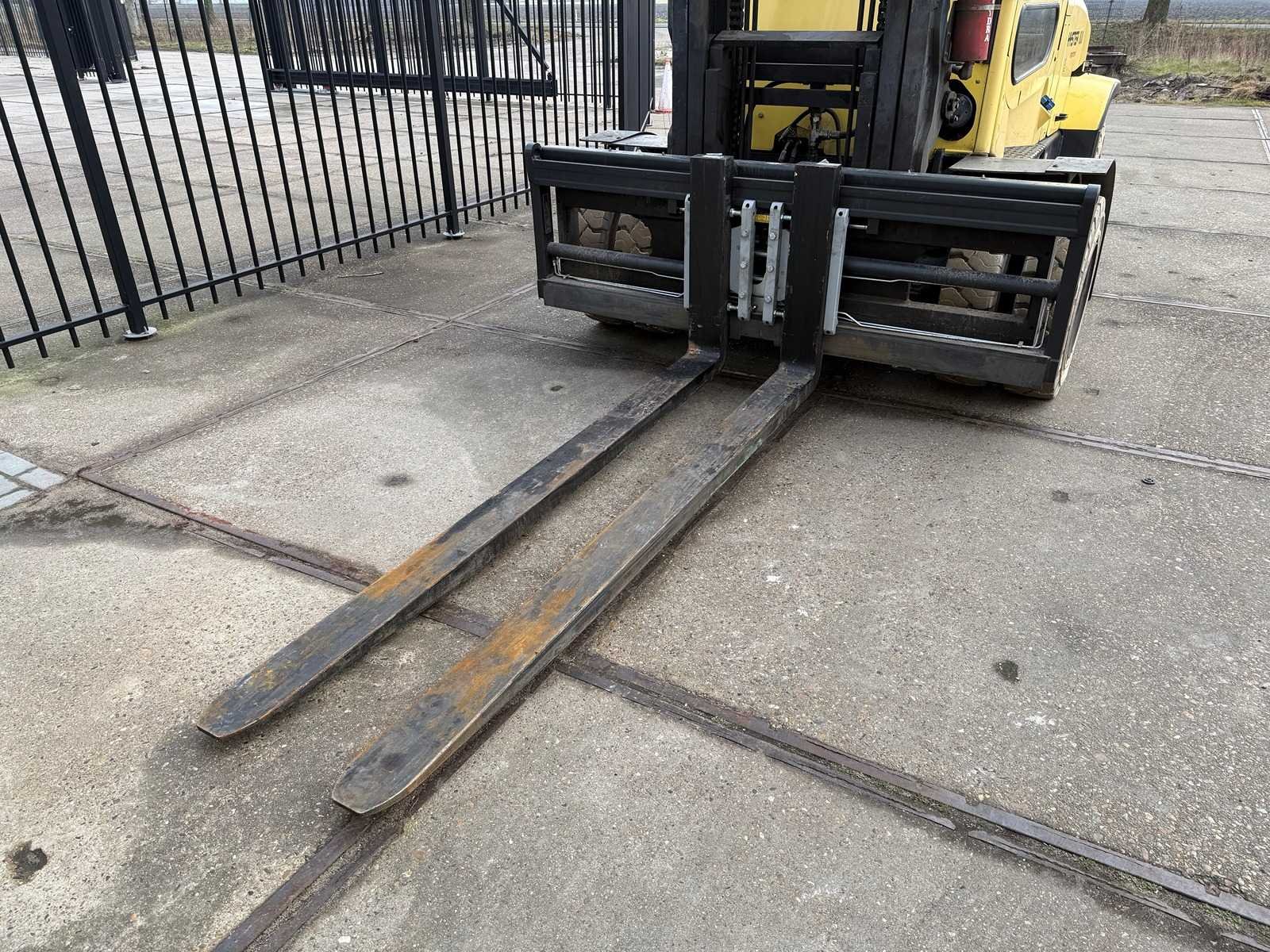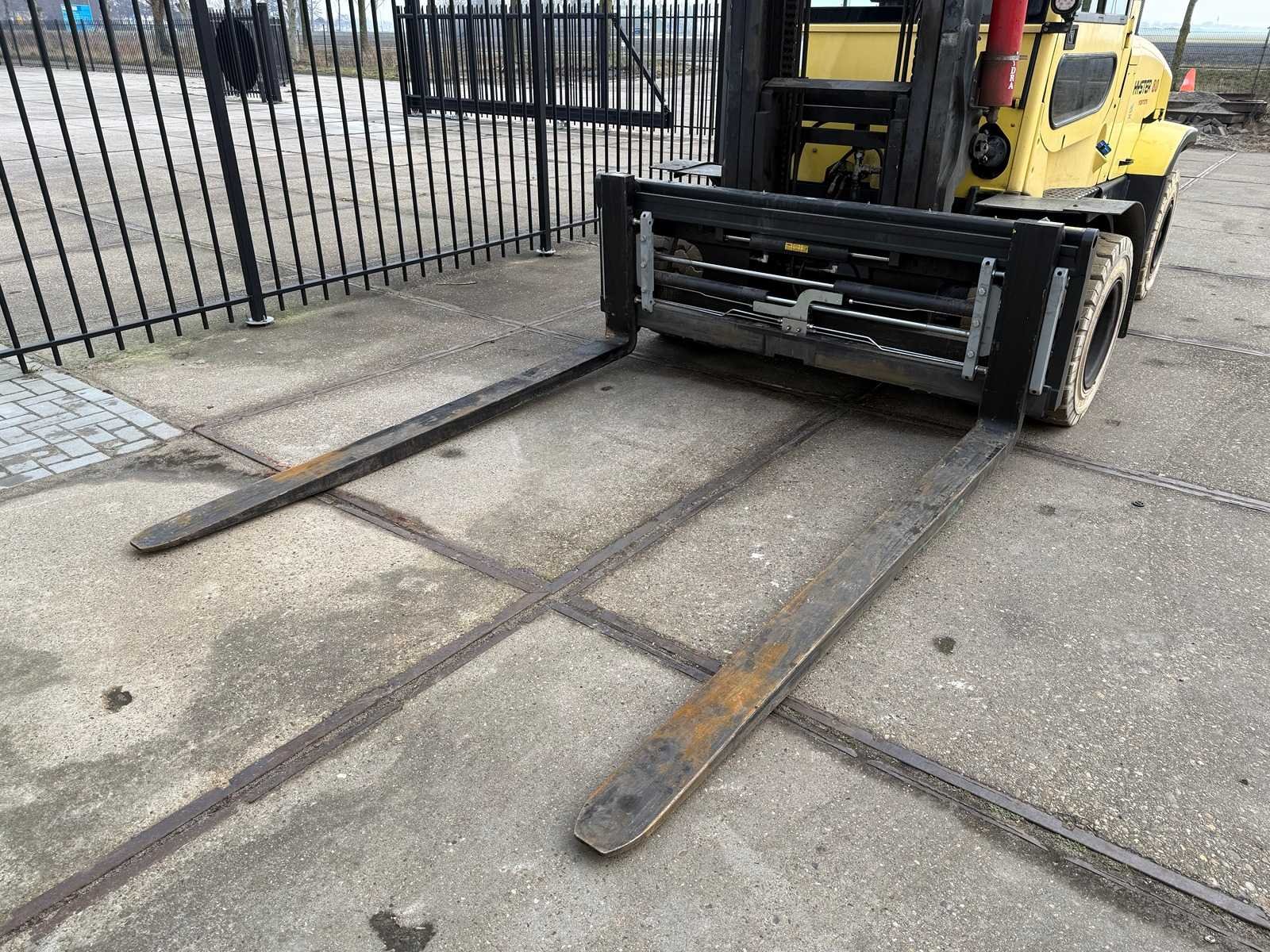 Ad-blue Merk: HYSTER Type: H8.0TT6 Bouwjaar: 2018 Serienummer: C299E01666S Brandstof: Diesel Soort band: Volrubber banden Aantal wielen: 4 Afgelezen urenstand: 11152 Side-shift: true Hydraulisch verstelbare lepels: true Duplex mast: true Eigen gewicht: 12436kg Hefvermogen: 4800kg Lepellengte: 2400mm Vol rubber banden: true Minimale doorrijhoogte: 3450mm Totale afmeting L: 6300mm Totale afmeting Breedte: 2289mm Totale afmeting Hoogte: 3450mm Diesel: true
