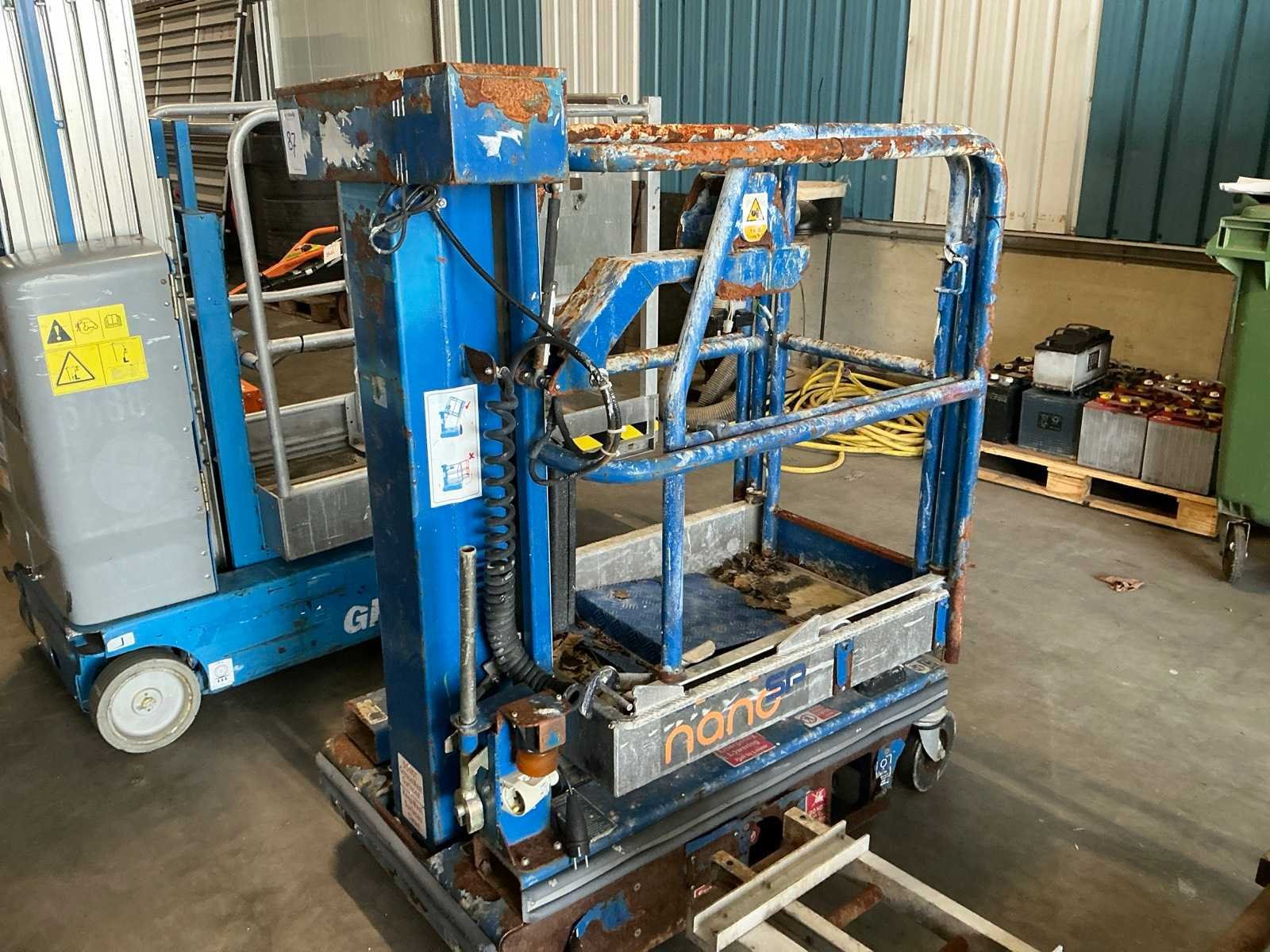 Defect; Merk: NANO Masthoogwerker: true Plateau afm. l: 1100mm Plateau afm. b: 630mm Platform capaciteit: 200kg Accu lader: true Totale afmeting L: 1300mm Totale afmeting Breedte: 770mm Totale afmeting Hoogte: 1590mm
