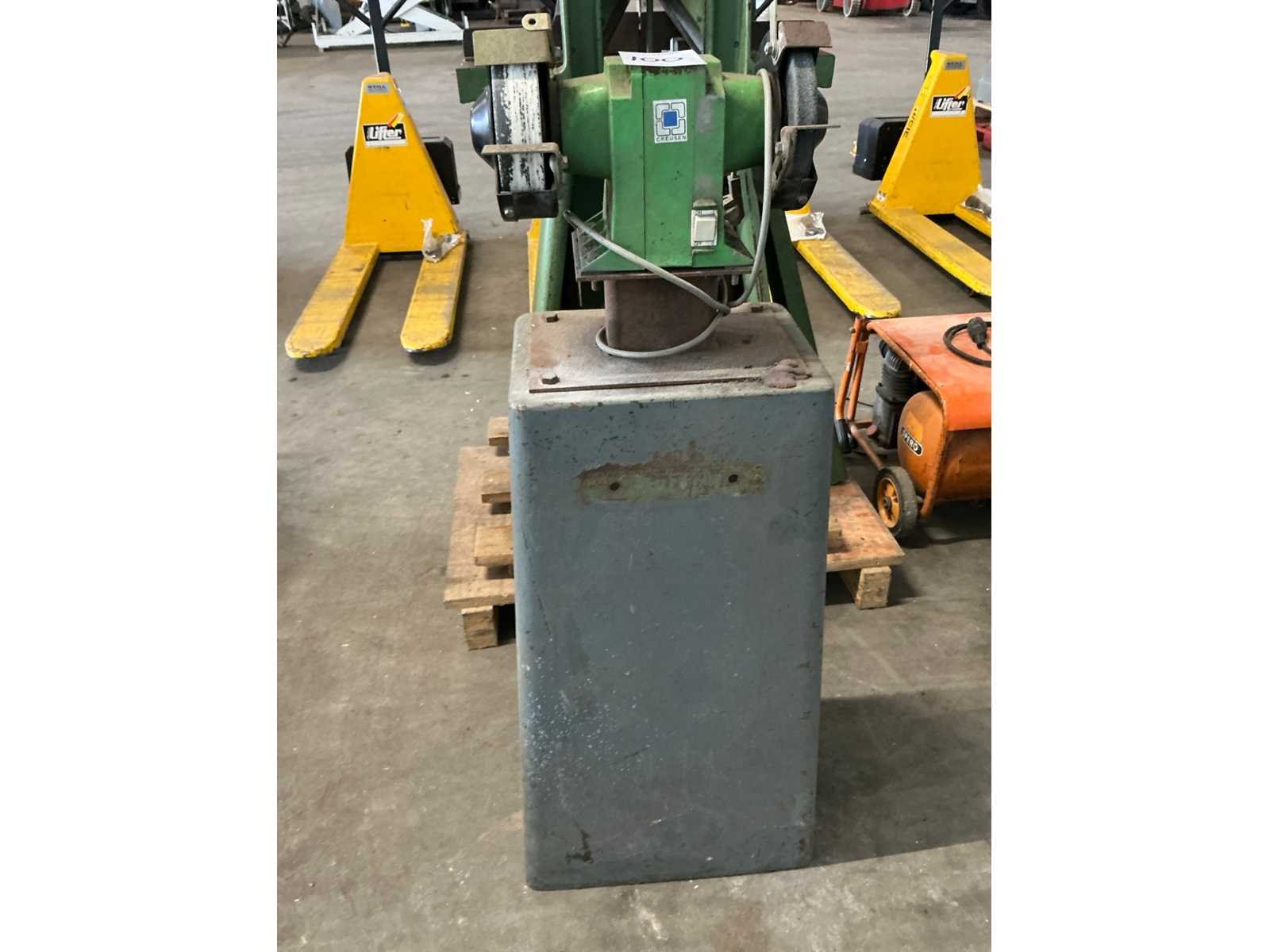 Gemonteerd op tafel Merk: CREUSEN Type: DS 5150 TS Serienummer: 512204 Slijpsteen Ø: 140mm Snelheid van n =: 3000rpm Aansluiting: 220V Afmeting l: 300mm Afmeting b: 450mm Afmeting h: 1130mm