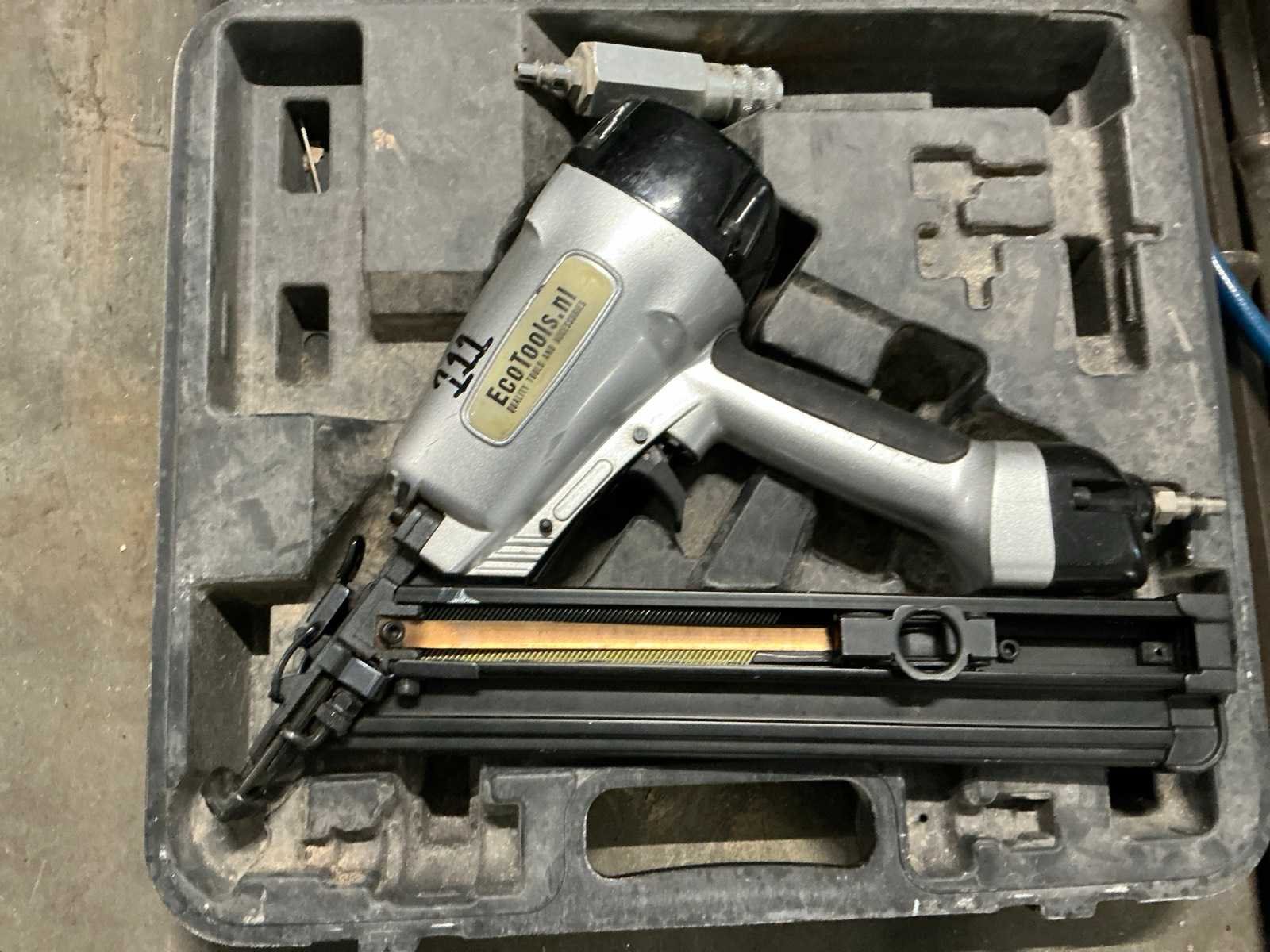 Bestaande uit ECOtools pneumatische tacker, 2x luchtslanghaspel en Pneumatische betonboor
