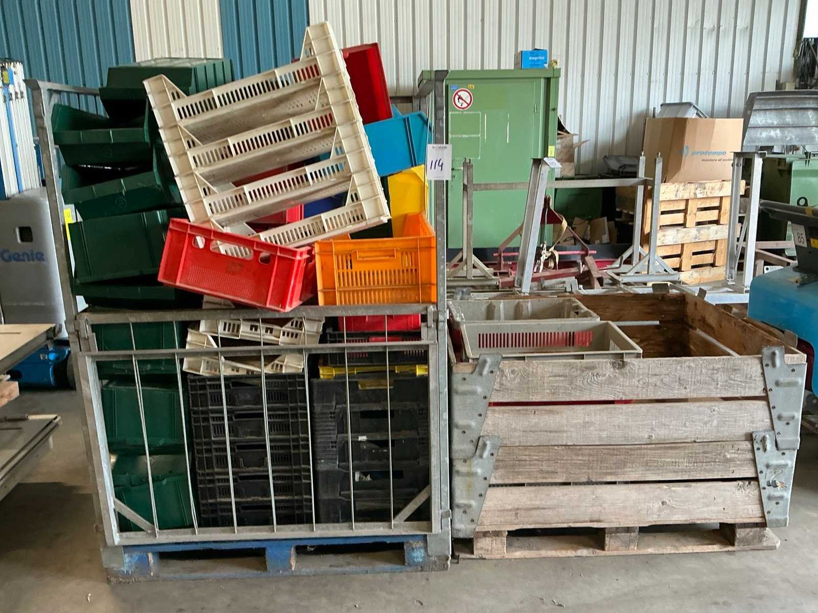 Diverse afmetingen kratten verdeeld over 2 pallets