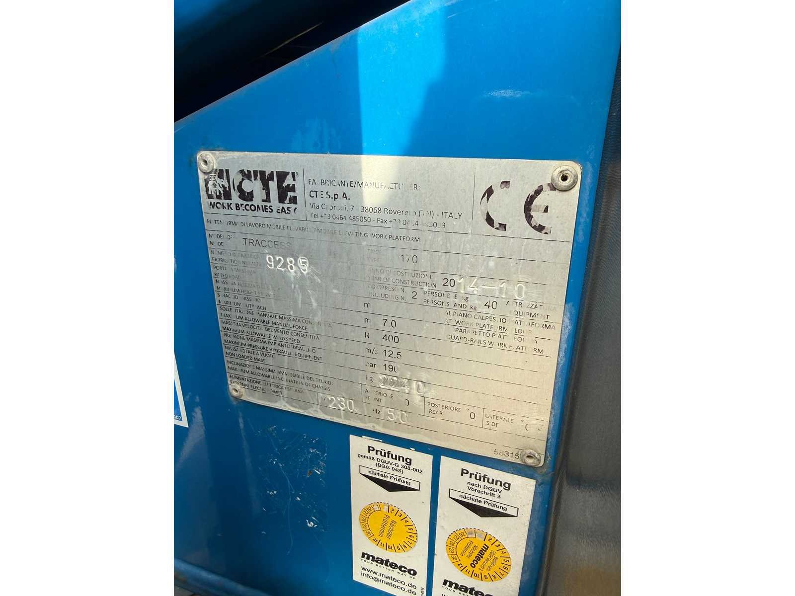 Merk: CTE Type: Traccess Bouwjaar: 2014 Serienummer: 9285 Knikarm hoogwerker: true Horizontale rijkwijdte: 7000mm Plateau afm. l: 620mm Plateau afm. b: 1240mm Eigen gewicht: 2240kg Totale afmeting L: 4600mm Totale afmeting Breedte: 1030mm Totale afmeting Hoogte: 2050mm