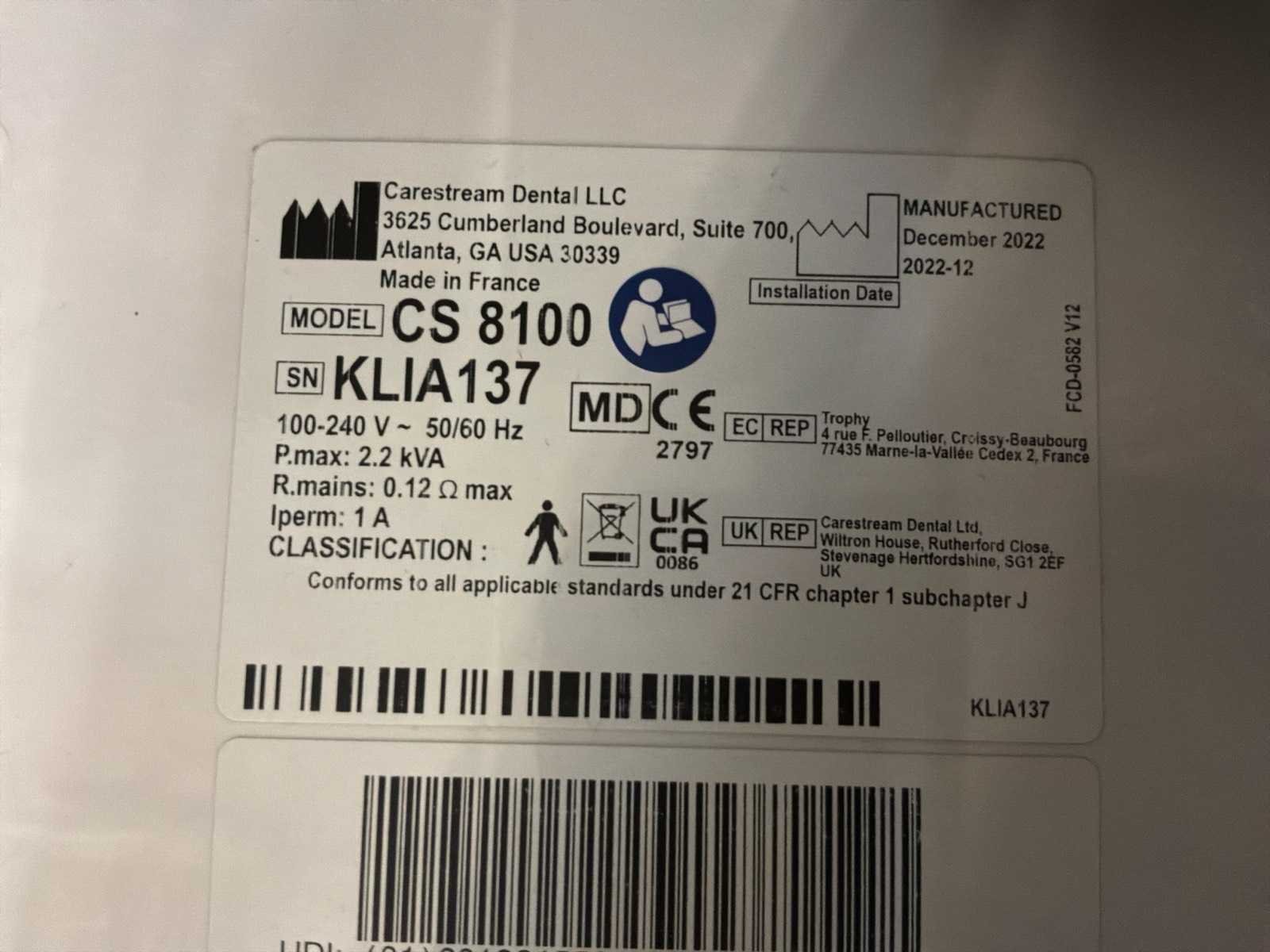 Merk: Carestream Type: CS8100 Bouwjaar: 2022 Serienummer: KLIA137 Digitaal: true