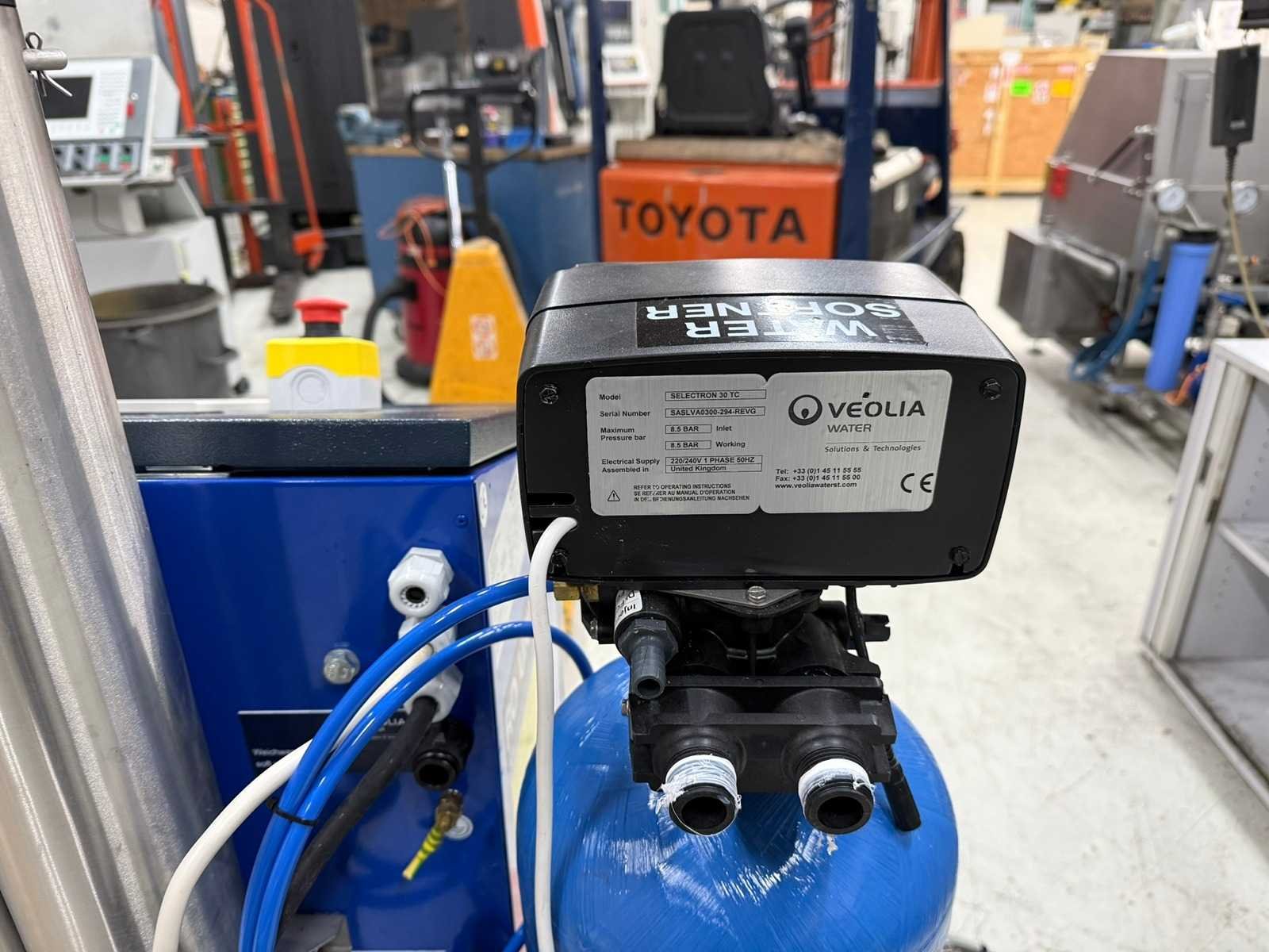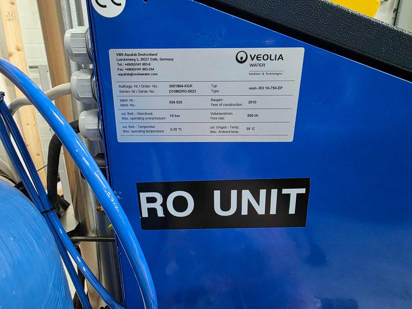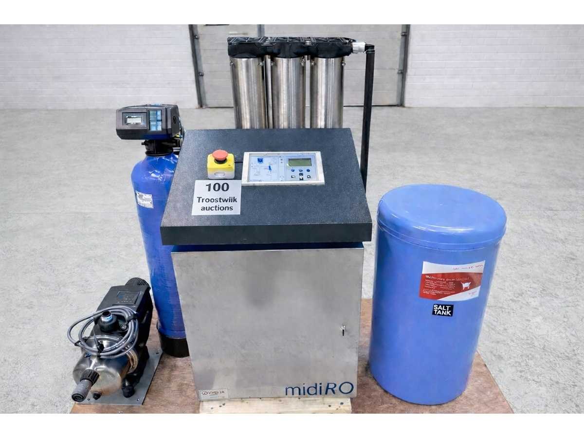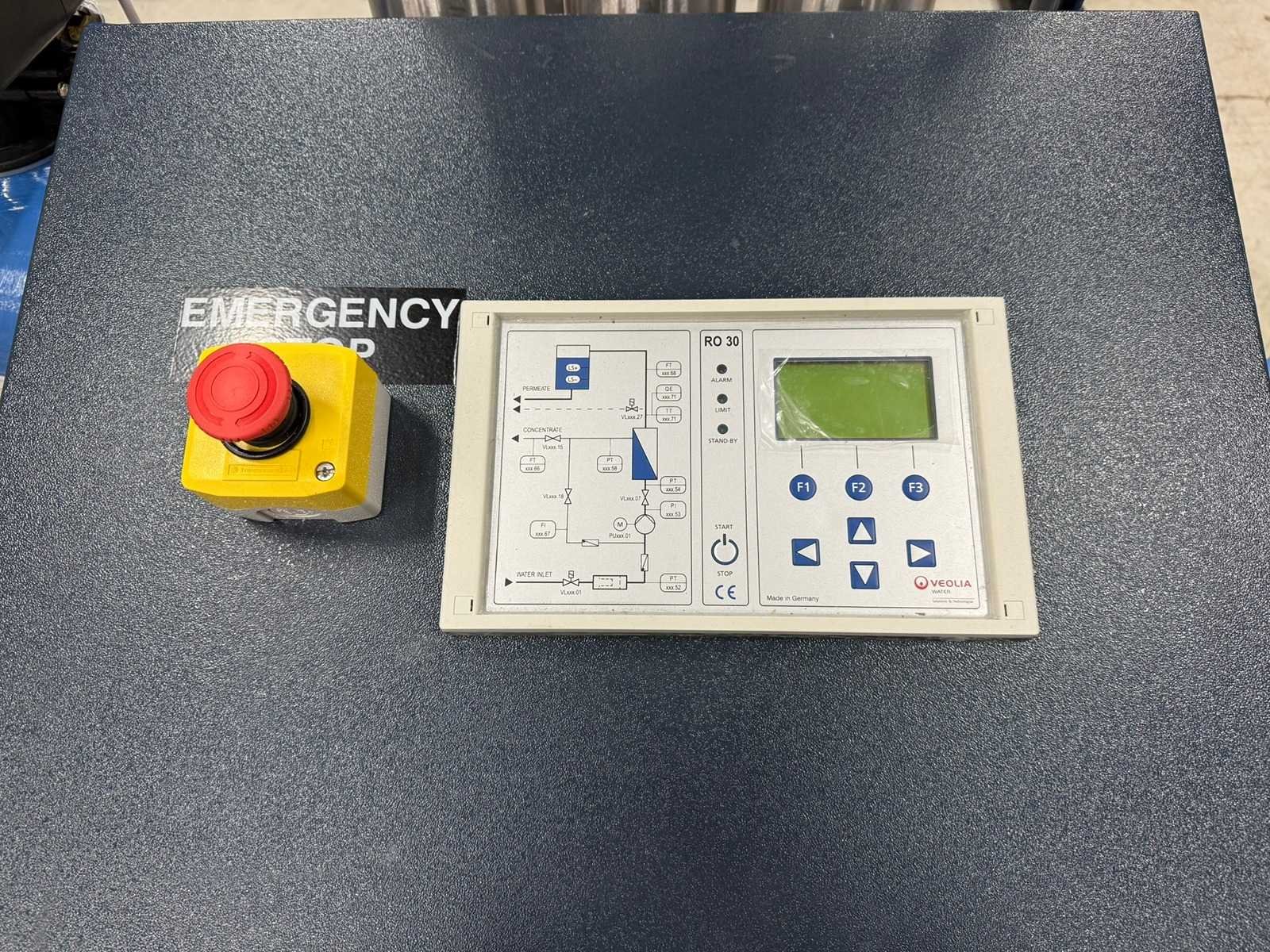 Veolia midiRO 10-750-EP – Omgekeerde osmose installatie (2010) (nr.:100) Professionele midiRO 10-750-EP omgekeerde osmose (RO) installatie, geschikt voor de productie van hoogwaardig gezuiverd water. Deze compacte en robuuste installatie is ontworpen voor industrieel gebruik en toepassingen waar een constante waterkwaliteit vereist is, zoals in de metaalbewerking, oppervlaktebehandeling, voedingsindustrie of laboratoriumomgevingen. De installatie is nieuw, nooit gebruikt en is afkomstig uit bouwjaar 2010. De installatie is opgebouwd uit een roestvaststalen behuizing en voorzien van meerdere RVS membraanhouders, een overzichtelijk bedieningspaneel en een noodstop. Dankzij de geïntegreerde voorbehandeling en drukregeling is het systeem betrouwbaar en efficiënt in gebruik. Kenmerken: • Type: Veolia midiRO 10-750-EP • Omgekeerde osmose waterzuivering • Capaciteit: ca. 500 liter per uur* • Bouwjaar: 2010 • Staat: nieuw , nooit gebruikt • RVS membraanhouders • Elektronische besturing • Compact opgesteld • Inclusief drukvat en zoutvat (zoals afgebeeld) Merk: Veolia Gewicht: 500kg Type: midi RO 10-750-EP Bouwjaar: 2010 Aansluiting: 380V Totale afmeting L: 1800mm Totale afmeting Breedte: 1100mm Totale afmeting Hoogte: 1500mm Leveringsvoorwaarden: Geladen op vrachtwagen