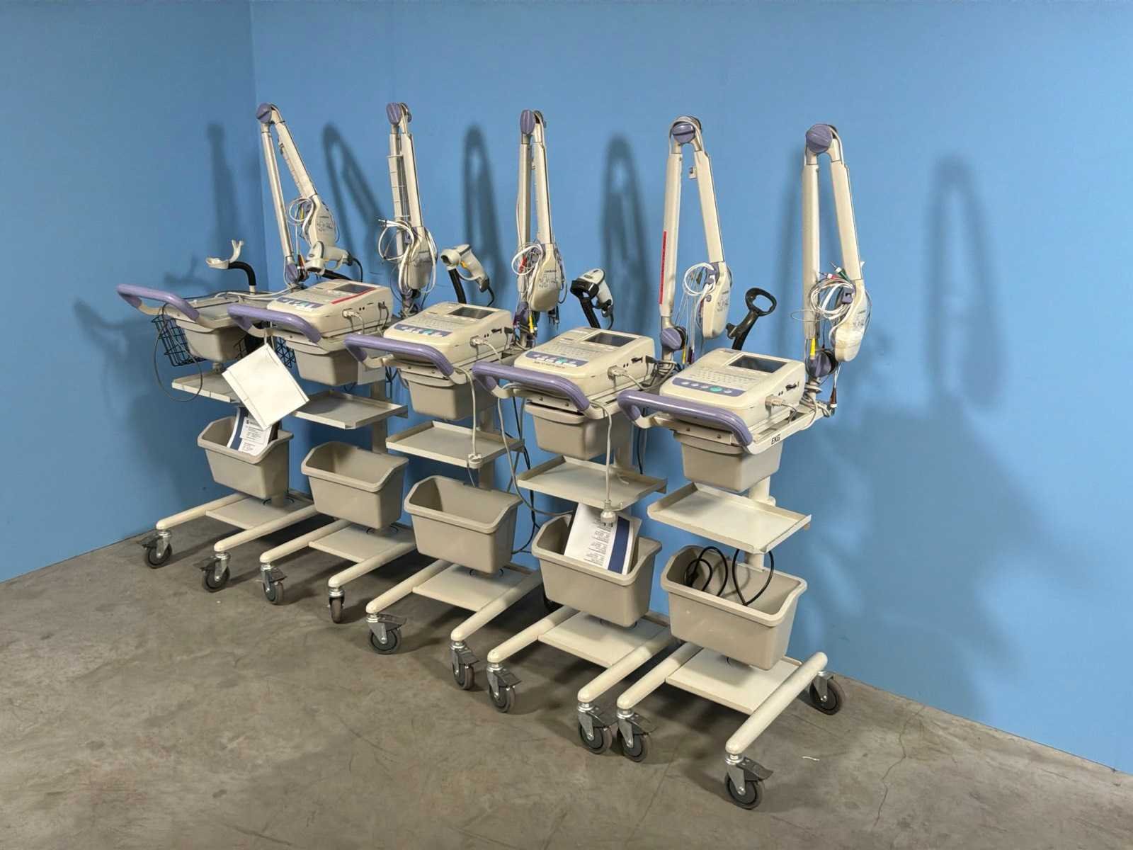 Let op 1 trolley zonder ECG apparaat Merk: Nihon Koden Bouwjaar: 2011 Serienummer: 06839, 06573, 06831, 06829 Totale afmeting L: 330mm Totale afmeting Breedte: 600mm Totale afmeting Hoogte: 1600mm