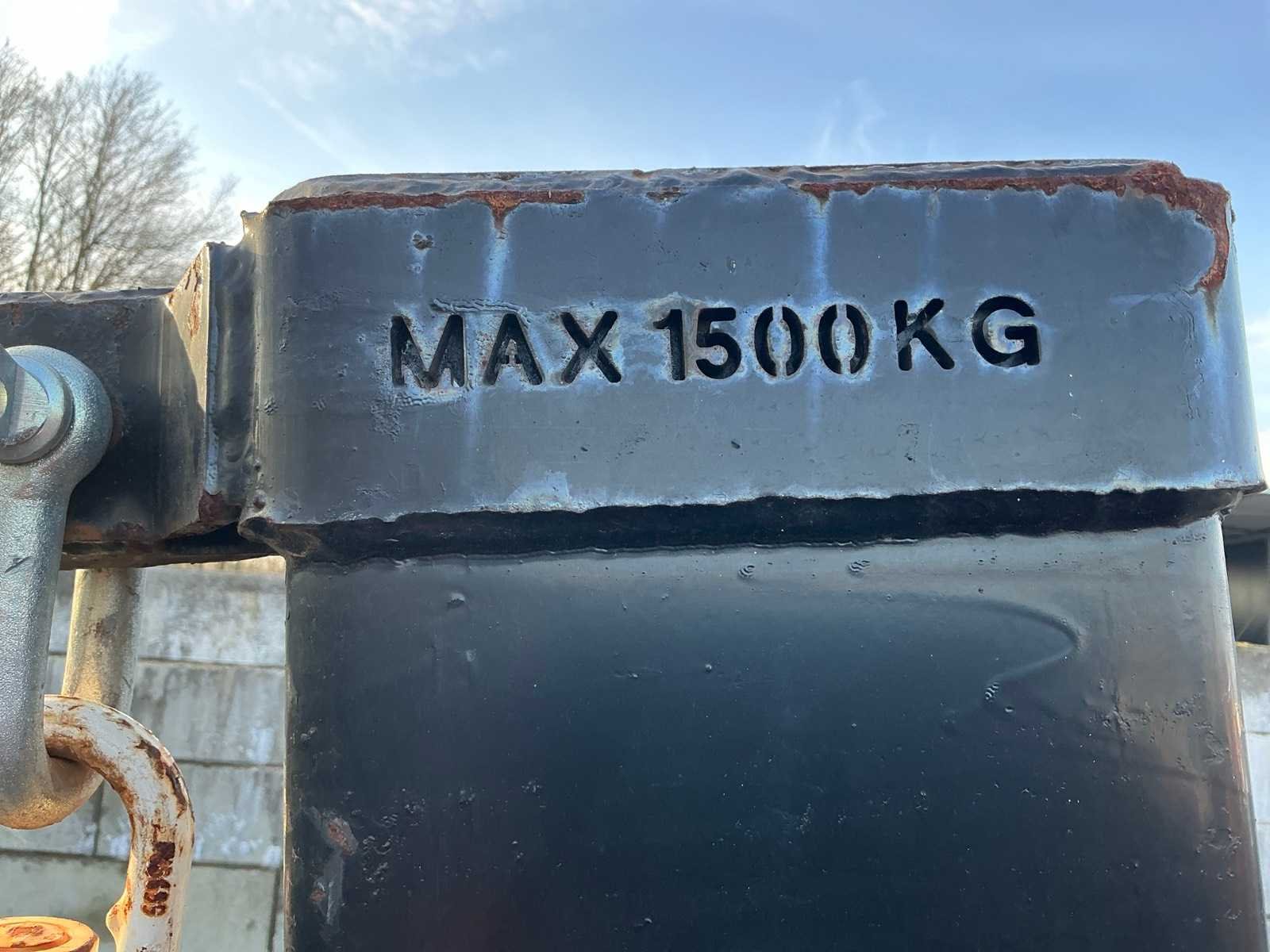 Afstand tussen oren 995mm, max hefvermogen 1500kg Merk: Jako Type: Jip Bouwjaar: 2021 Totale afmeting L: 750mm Totale afmeting Breedte: 1100mm Totale afmeting Hoogte: 2200mm