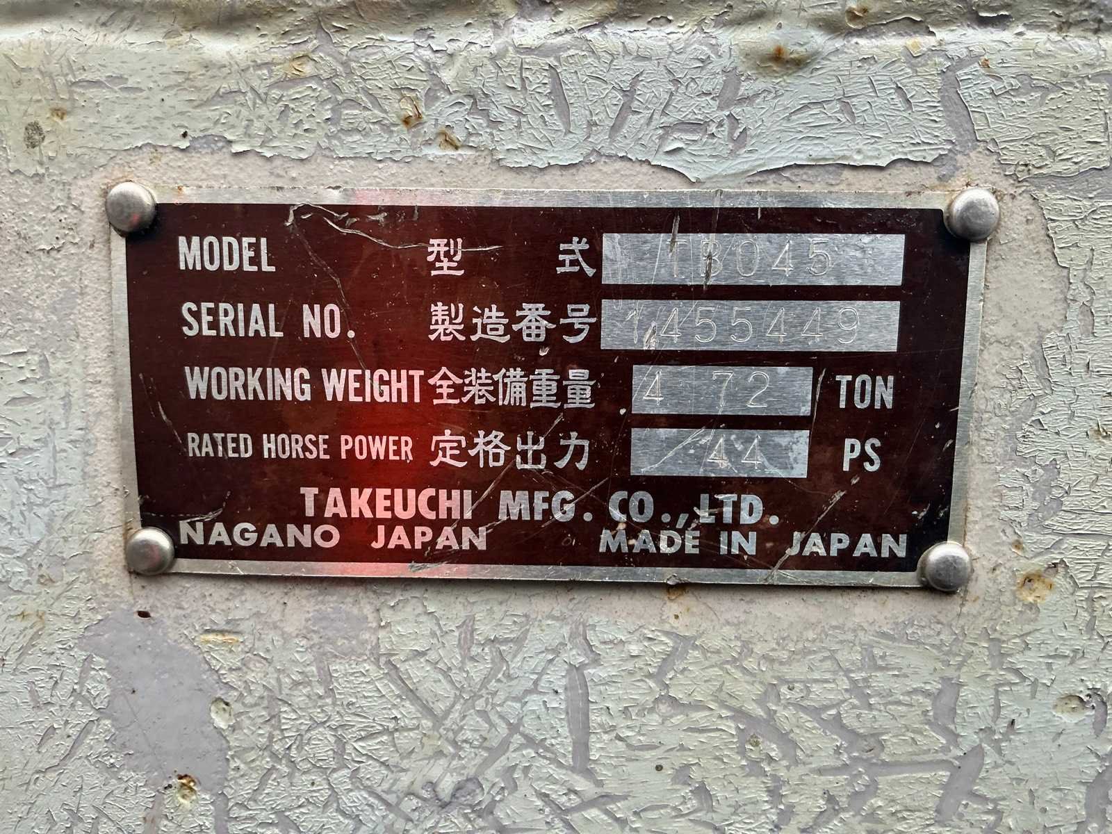 Sloten bak 1150mm, 3e functie, werkverlichting, blad 1840mm, Merk: Takeuchi Type: LB045 Serienummer: 1455449 Merk motor: Yanmar Motorvermogen (kW): 31kW Aantal cilinders: 3 Brandstof: Diesel Bedrijfsgewicht: 4720kg Met graafbak: true Graafbak afm. b: 1150mm Rups breedte: 400mm Afgelezen urenstand: 796 Eigen gewicht: 4720kg Totale afmeting L: 5700mm Totale afmeting Breedte: 1840mm Totale afmeting Hoogte: 2500mm