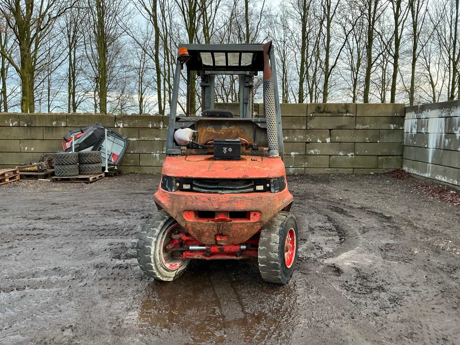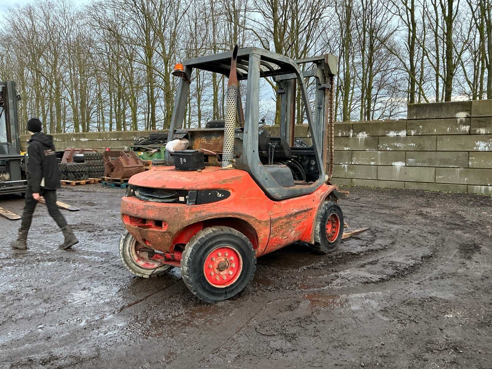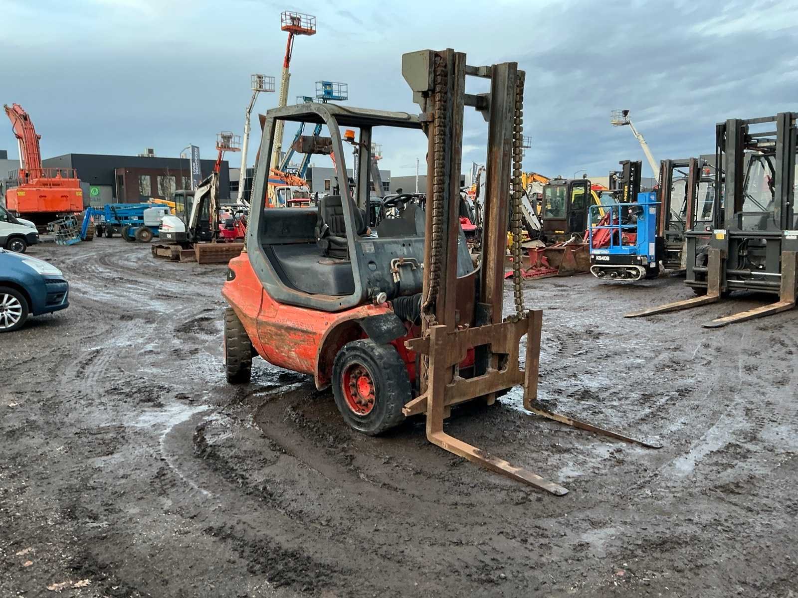 Let op; motor gaat rond maar slaat niet aan, lepels 1000mm, lepelbord 1350mm, trekoog achter, max hefhoogte 4500mm, max hefvermogen 4000kg Merk: Linde Type: H40D Bouwjaar: 1994 Serienummer: 352E11017540 Brandstof: Diesel Mast: Triple Soort band: Volrubber banden Aantal wielen: 4 Afgelezen urenstand: 14648 Eigen gewicht: 6100kg Hefvermogen: 4000kg Max. hefhoogte: 4500mm Vol rubber banden: true Minimale doorrijhoogte: 2700mm Totale afmeting L: 4050mm Totale afmeting Breedte: 1400mm Totale afmeting Hoogte: 2600mm
