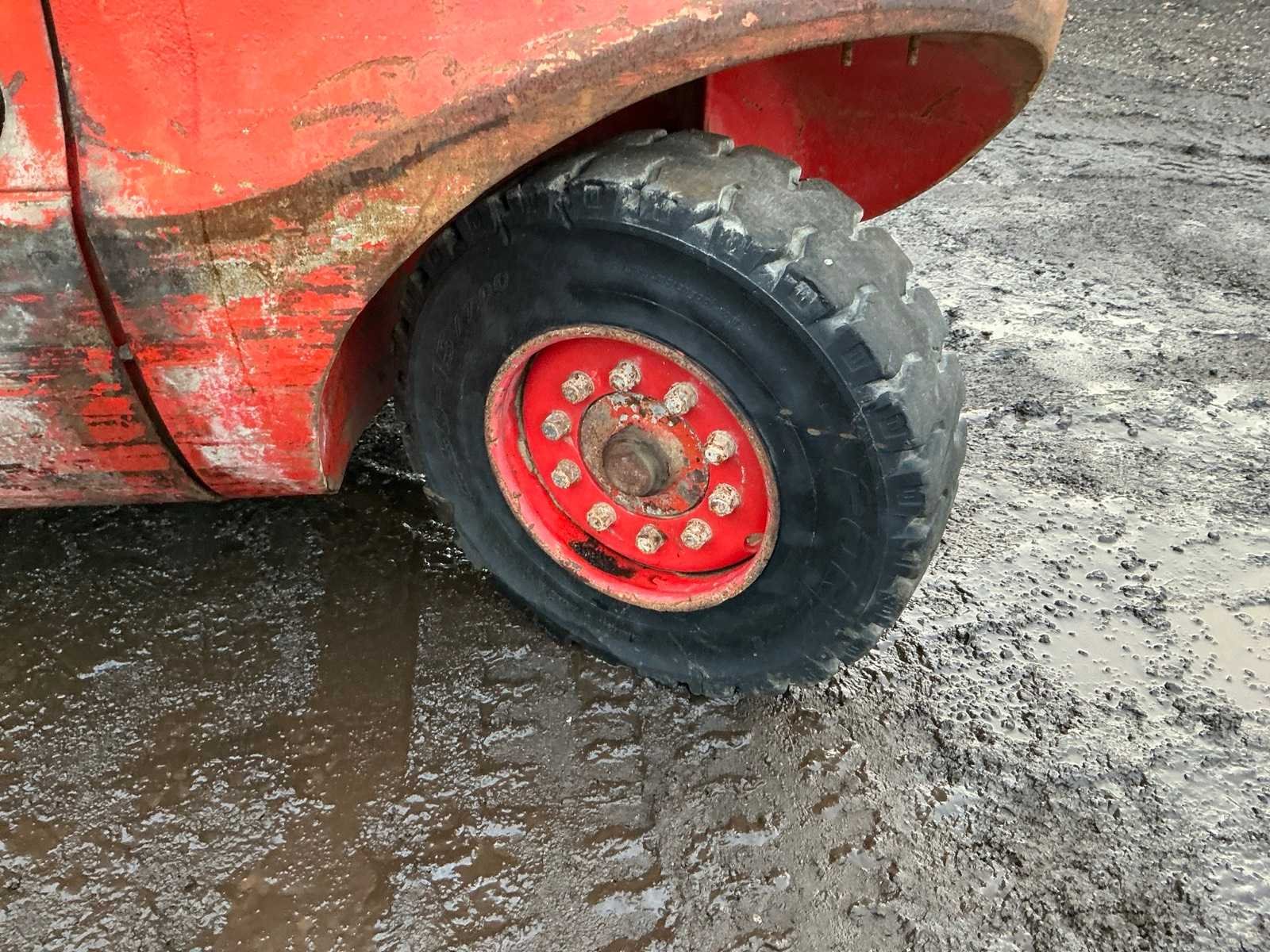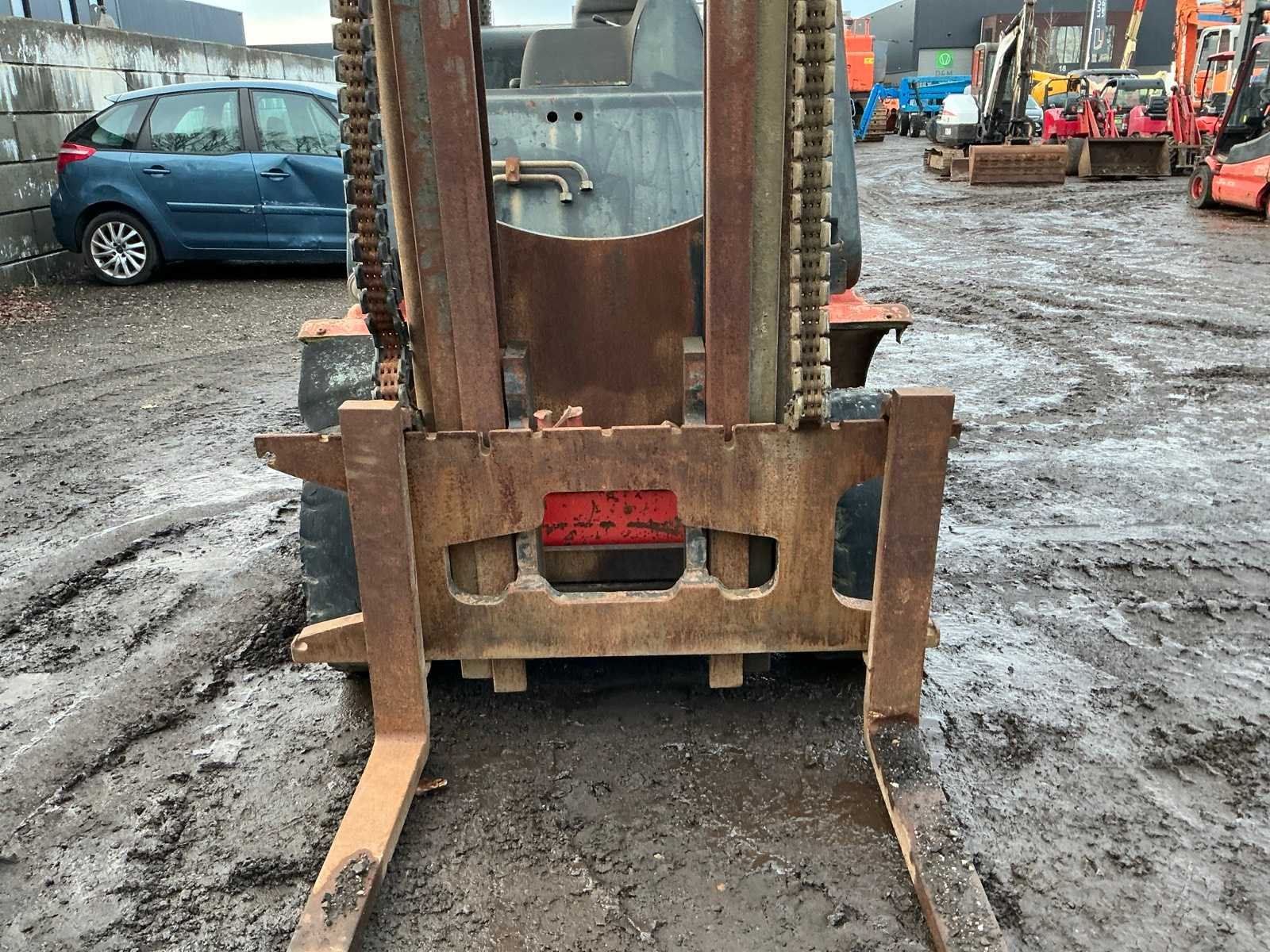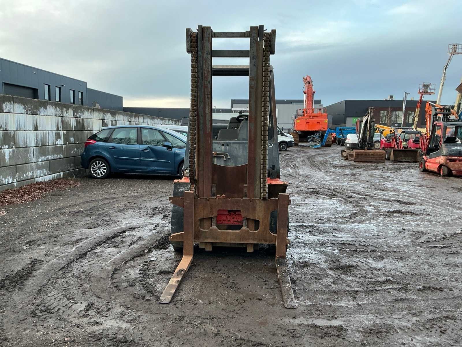 Let op; motor gaat rond maar slaat niet aan, lepels 1000mm, lepelbord 1350mm, trekoog achter, max hefhoogte 4500mm, max hefvermogen 4000kg Merk: Linde Type: H40D Bouwjaar: 1994 Serienummer: 352E11017540 Brandstof: Diesel Mast: Triple Soort band: Volrubber banden Aantal wielen: 4 Afgelezen urenstand: 14648 Eigen gewicht: 6100kg Hefvermogen: 4000kg Max. hefhoogte: 4500mm Vol rubber banden: true Minimale doorrijhoogte: 2700mm Totale afmeting L: 4050mm Totale afmeting Breedte: 1400mm Totale afmeting Hoogte: 2600mm