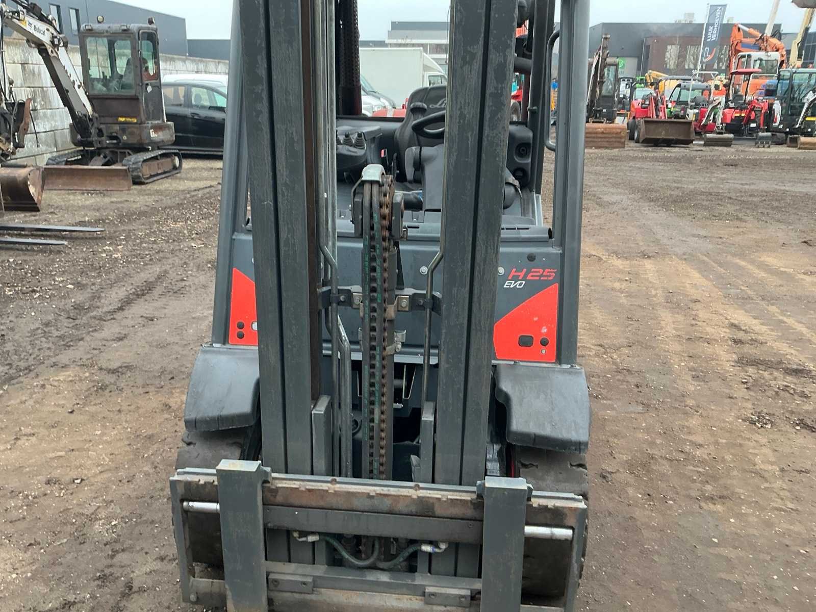 Lepels 1200mm, lepelbord 1100mm, triplex mast, side shift, free lift, led werkverlichting, trekoog met pin 25mm, max hefhoogte 4400mm, max hefvermogen 2500kg Merk: Linde Type: H25T-02 EVO Bouwjaar: 2018 Serienummer: H2X392J01635 Brandstof: LPG Mast: Triple Soort band: Volrubber banden Aantal wielen: 4 Afgelezen urenstand: 14865 Free-lift: true Side-shift: true Triple mast: true Eigen gewicht: 3875kg Hefvermogen: 2500kg Lepellengte: 1200mm Max. hefhoogte: 4400mm Vol rubber banden: true Minimale doorrijhoogte: 2300mm Totale afmeting L: 3900mm Totale afmeting Breedte: 1200mm Totale afmeting Hoogte: 2200mm