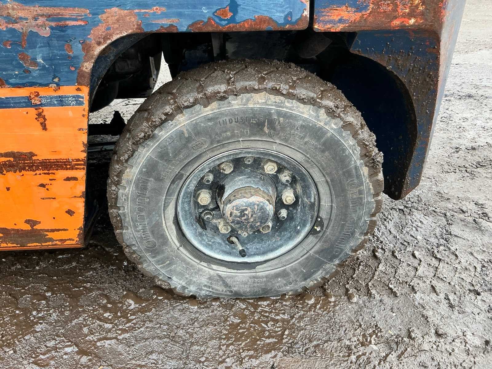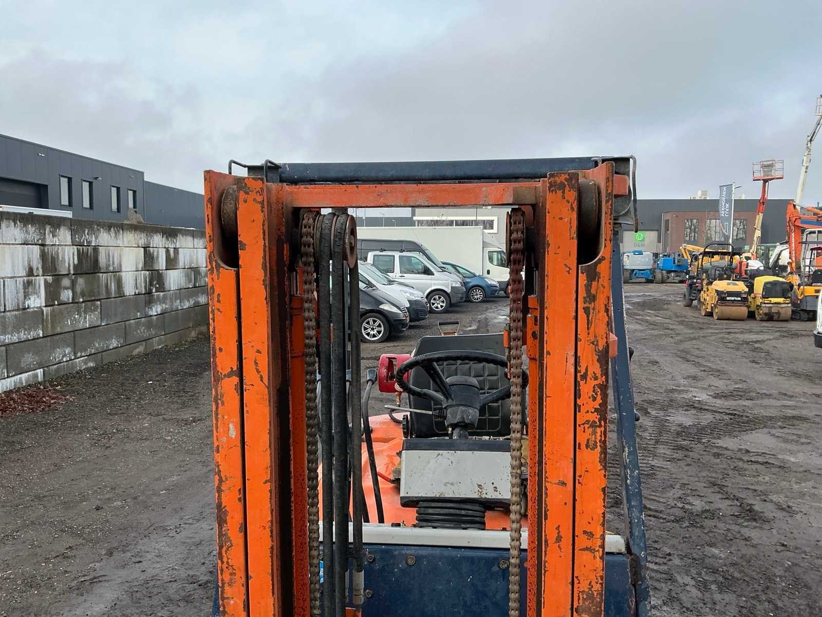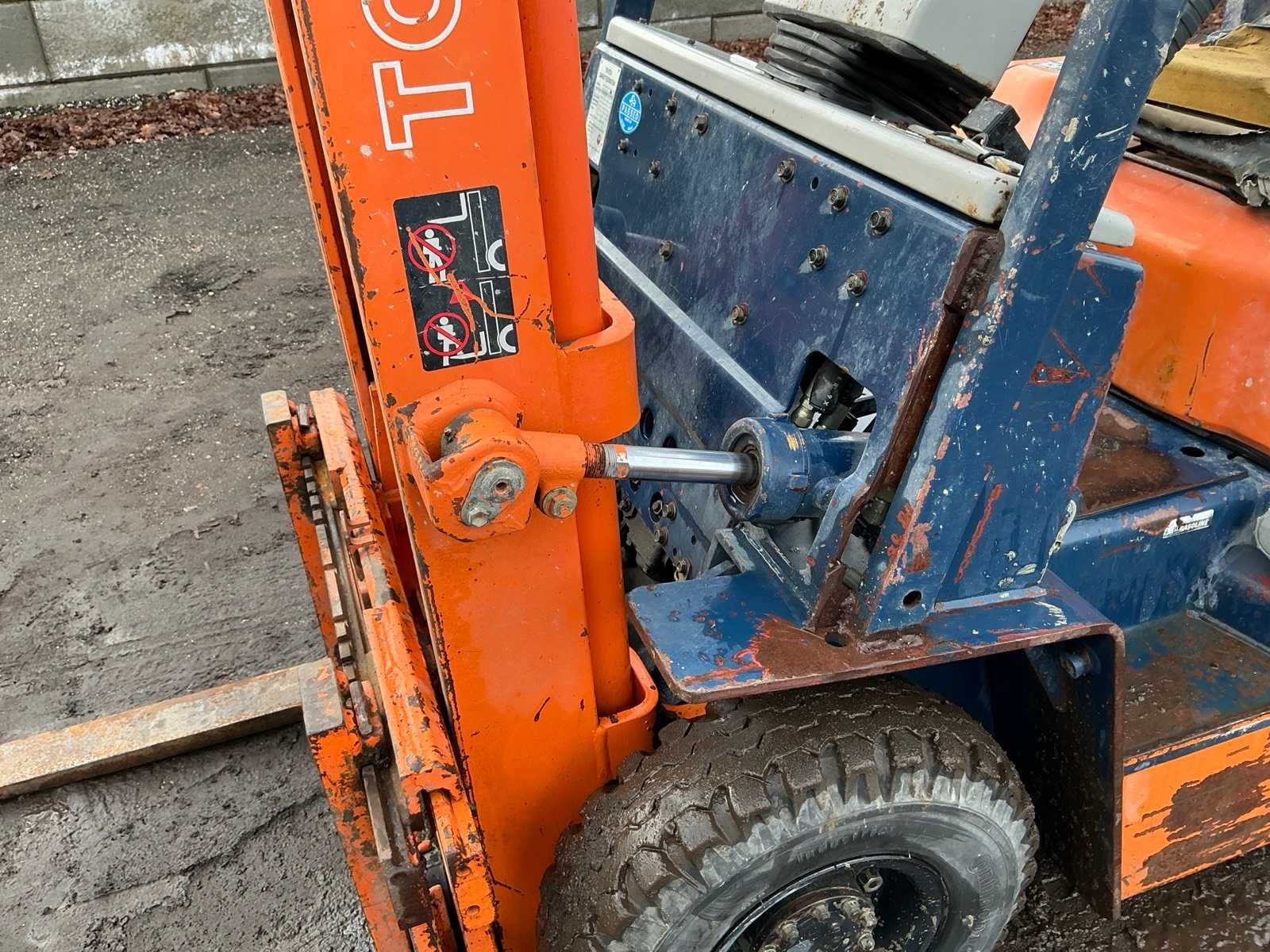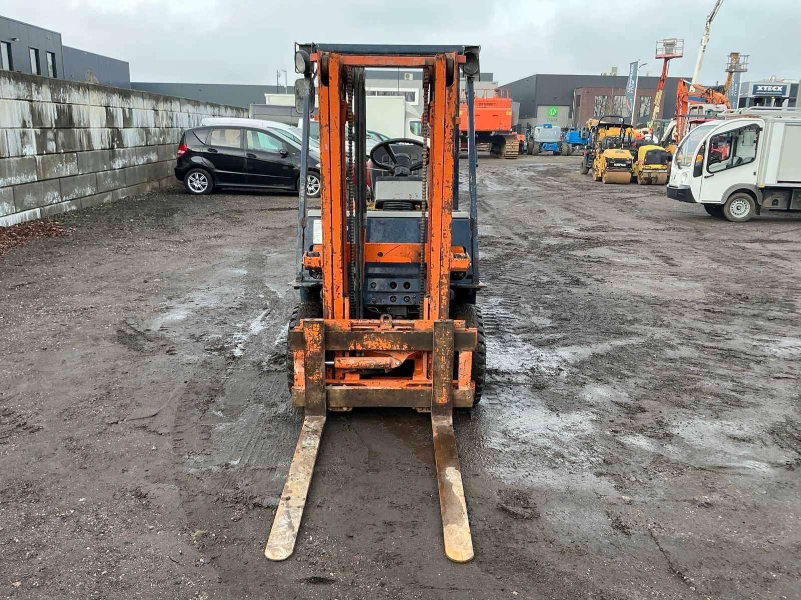 Lepels 1000mm, lepelbord 950mm, duplex mast, side shift, werkverlichting, trekoog, max hefhoogte 2650mm, max hefvermogen 1750kg Merk: Toyota Type: 5 FG18 Bouwjaar: 1987 Serienummer: 11555 K Brandstof: LPG Mast: Duplex Soort band: Luchtbanden Aantal wielen: 4 Afgelezen urenstand: 3004 Side-shift: true Duplex mast: true Eigen gewicht: 2860kg Hefvermogen: 1750kg Lepellengte: 1000mm Max. hefhoogte: 2650mm Luchtbanden: true Minimale doorrijhoogte: 2000mm Totale afmeting L: 3100mm Totale afmeting Breedte: 1050mm Totale afmeting Hoogte: 1900mm LPG: true