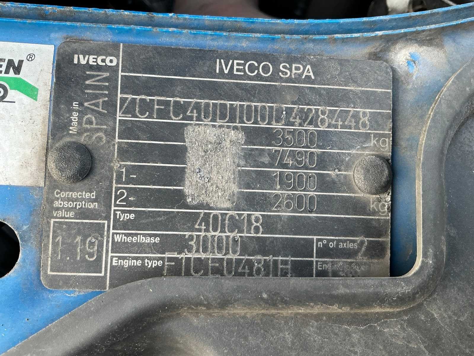 Elektrische ramen, elektrische spiegels, verwarmde spiegels, centrale vergrendeling, cruise control, abs, radio/cd speler, verwarming, digitale tachograaf, verstelbare luchtvering achter, duomatic lucht koppeling, 13 polige stekker Kenteken: 6-VJL-21 Merk: Iveco Type: 40C18 Model: Daily Bouwjaar: 2010 Chassisnummer: ZCFC40D100D428448 Afgelezen kilometerstand: 402704km Cilinderinhoud: 2998cc Vermogen (kW): 130kW Brandstof: diesel Datum eerste toelating: 2010-08-26 Datum eerste toelating (NL): 2010-08-26 APK vervaldatum: 2026-09-23 NAP status: Logisch Transmissie: Handgeschakeld Aantal zitplaatsen: 3 Kleur: niet van toepassing Nationaliteit documenten: Nederland Bruto BPM (NL): 12982 Rest BPM: 0 Aantal deuren: 2 Ledig gewicht: 2010kg Laadvermogen: 1490kg Vermogen (pk): 177 Aantal cilinders: 4 Velgmaat: 195/75 R16 Carrosserie: Opleggertrekker Emissieklasse: 4 Maximaal trekgewicht ongeremd: 750