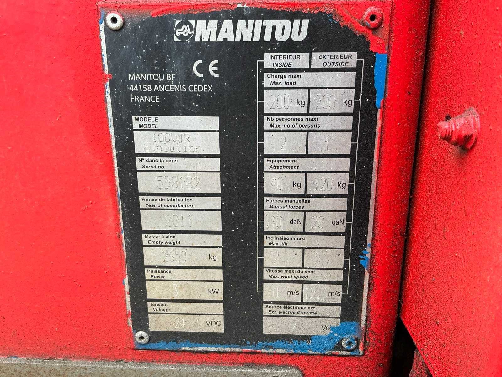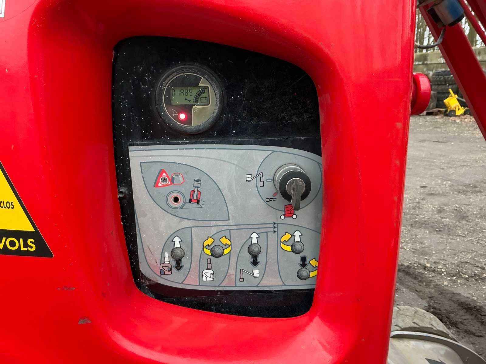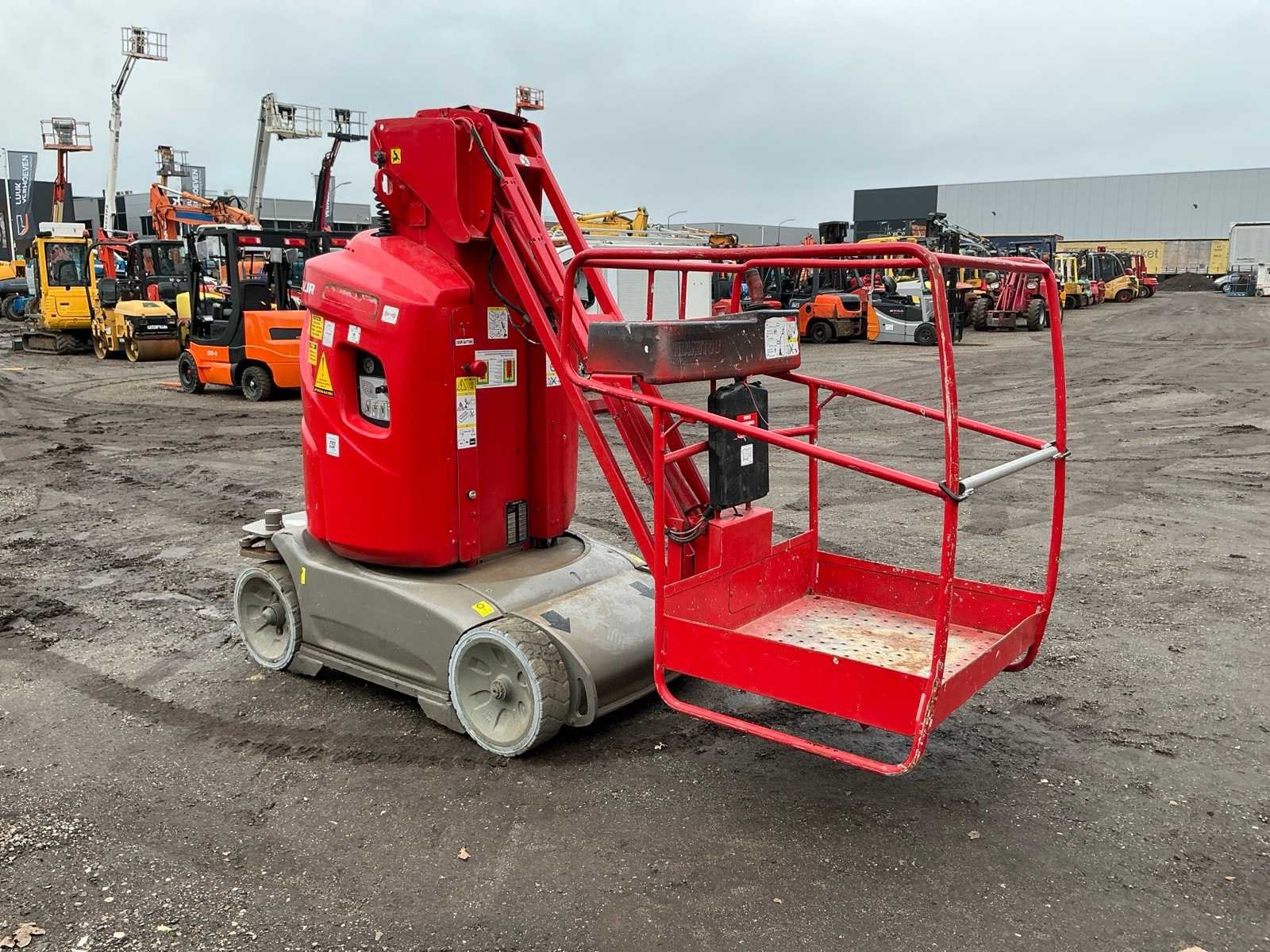 Ingebouwde lader, 24V accupakket, max hefhoogte 9900mm, max hefvermogen 200kg Merk: Manitou Type: 100 VJR Bouwjaar: 2011 Serienummer: 598182 Elektrisch: true Masthoogwerker: true Werkhoogte: 9900mm Horizontale rijkwijdte: 2600mm Plateau afm. l: 750mm Plateau afm. b: 900mm Platform capaciteit: 200kg Afgelezen urenstand: 1889 Eigen gewicht: 2650kg Totale afmeting L: 2800mm Totale afmeting Breedte: 990mm Totale afmeting Hoogte: 2000mm