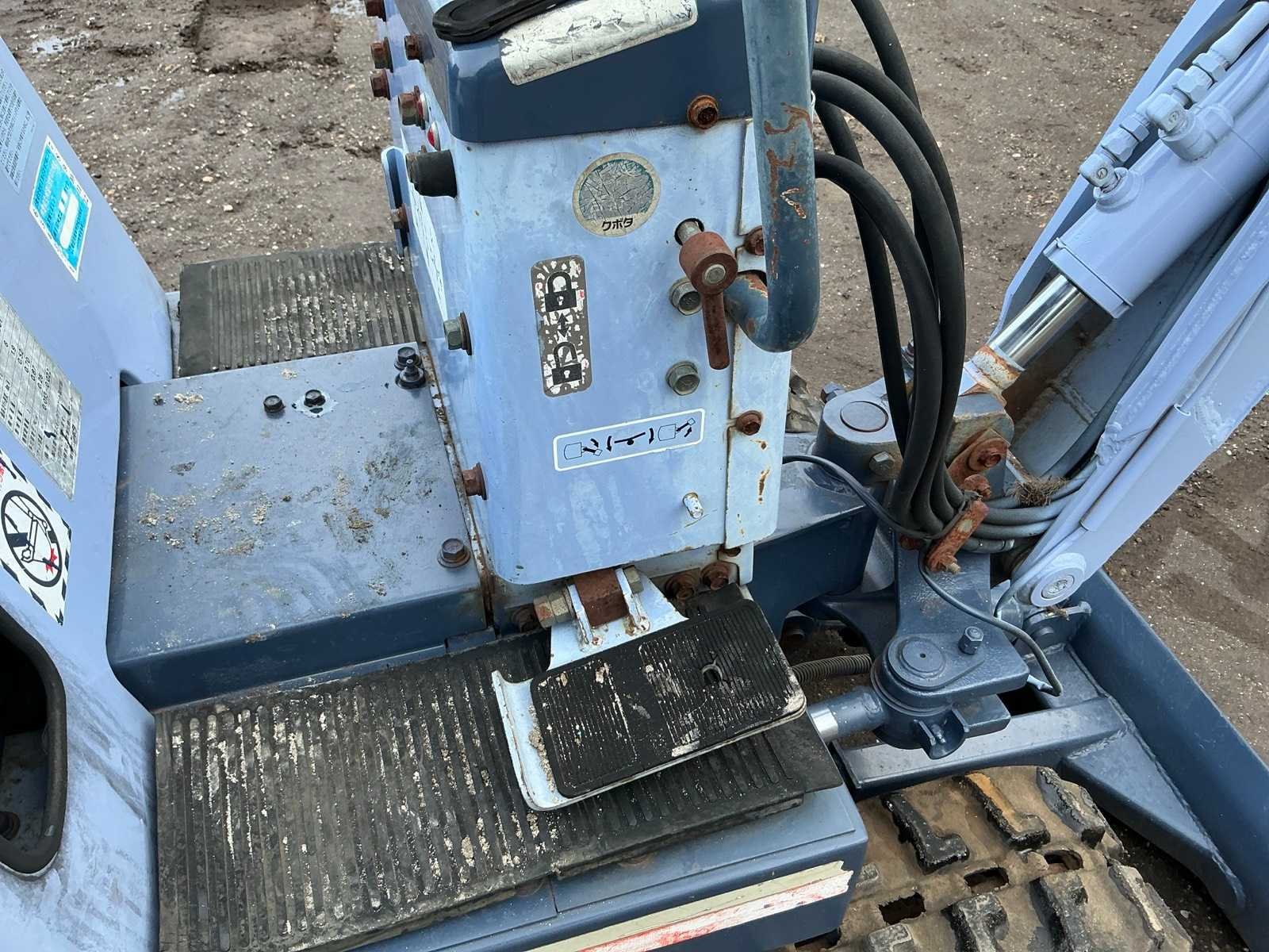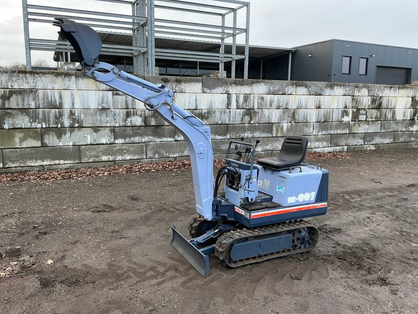 Dieplepel 320mm, vaste pen, blad 820mm, Merk: Kubota Type: KH007 Serienummer: 21628 Merk motor: Kubota Motorvermogen (kW): 6kW Aantal cilinders: 2 Brandstof: Diesel Bedrijfsgewicht: 870kg Inclusief graafbak: Yes Graafbak afm. b: 320mm Rups breedte: 180mm Afgelezen urenstand: 1091 Eigen gewicht: 870kg Totale afmeting L: 2750mm Totale afmeting Breedte: 820mm Totale afmeting Hoogte: 1100mm