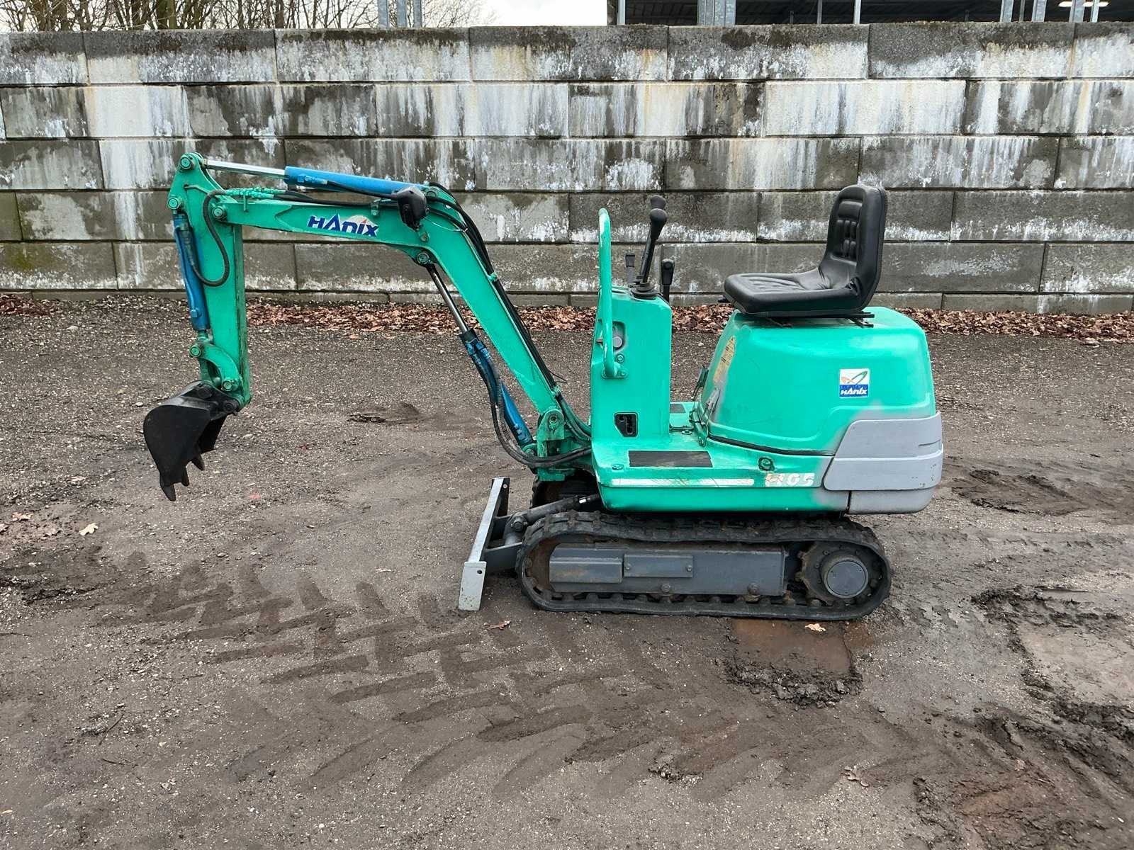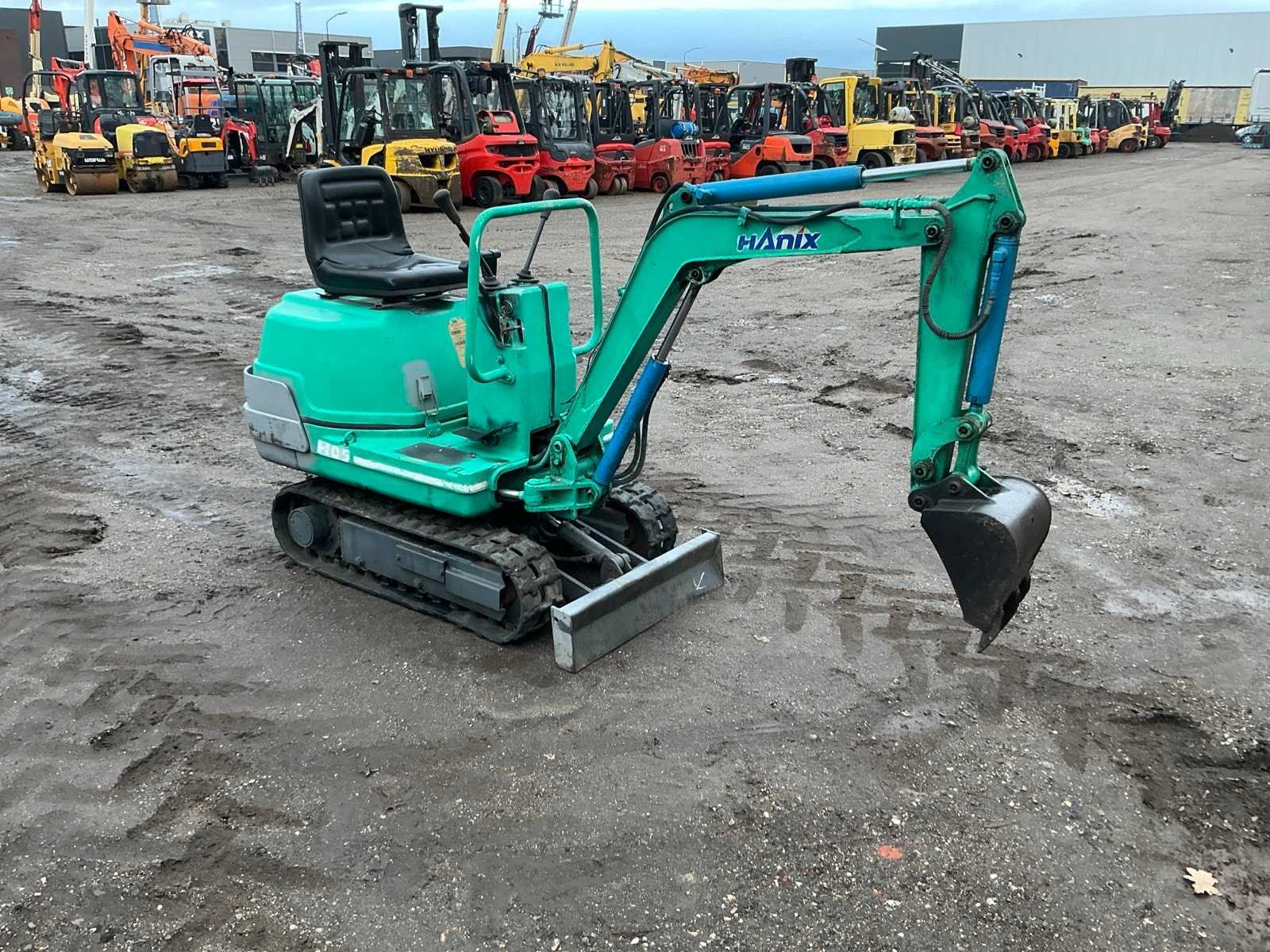 Dieplepel 320mm, werkverlichting, blad 720mm, Merk: Hanix Type: H05 Serienummer: 00055 Motorvermogen (kW): 3.5kW Aantal cilinders: 1 Brandstof: Diesel Bedrijfsgewicht: 500kg Inclusief graafbak: Yes Graafbak afm. b: 320mm Rups breedte: 155mm Afgelezen urenstand: 868 Eigen gewicht: 500kg Totale afmeting L: 2500mm Totale afmeting Breedte: 720mm Totale afmeting Hoogte: 1100mm