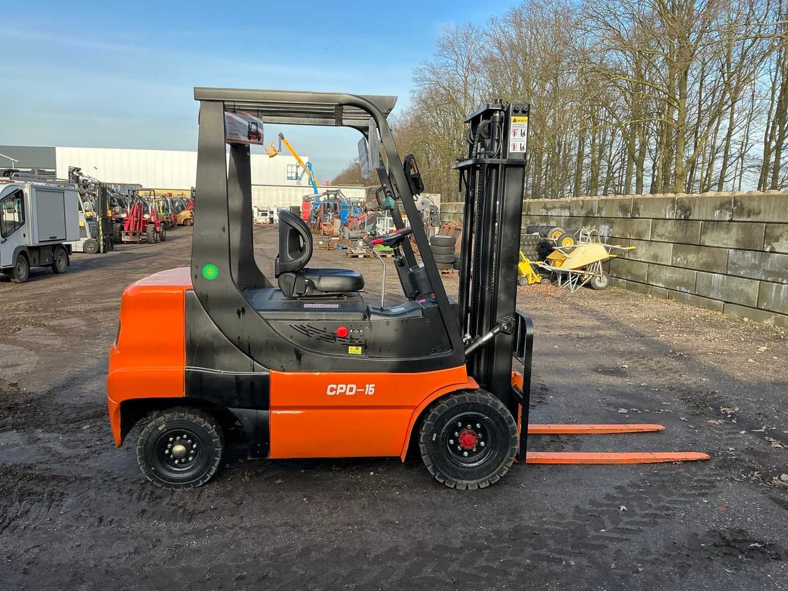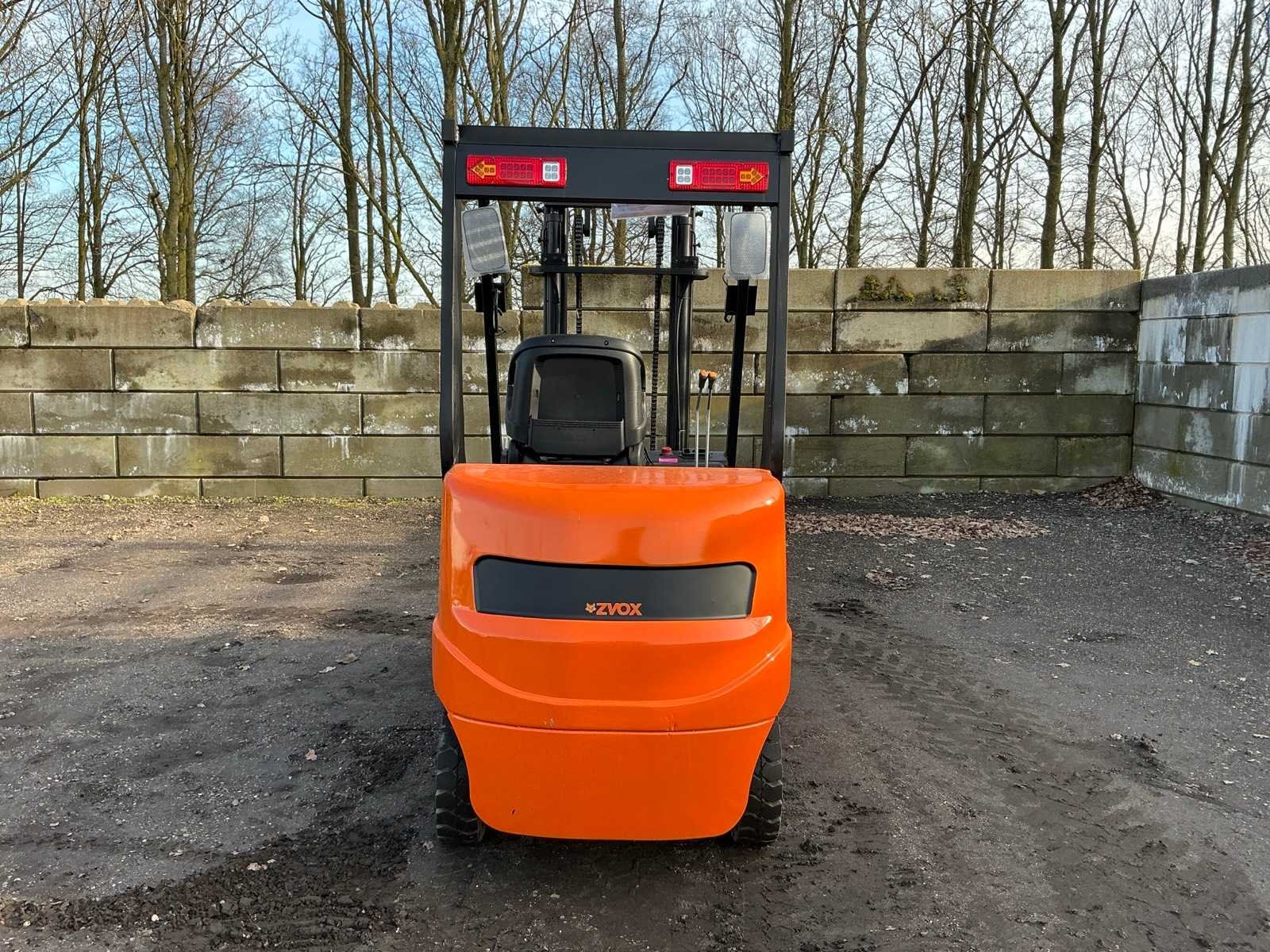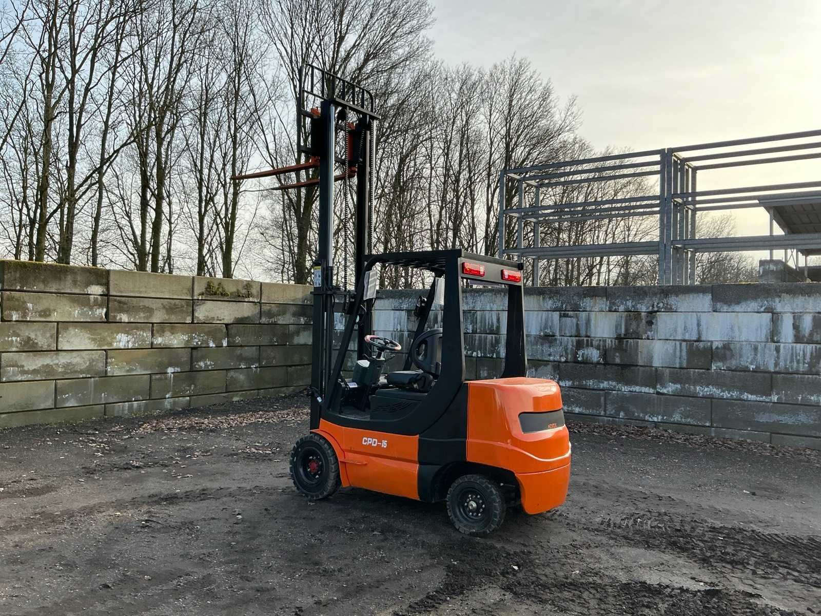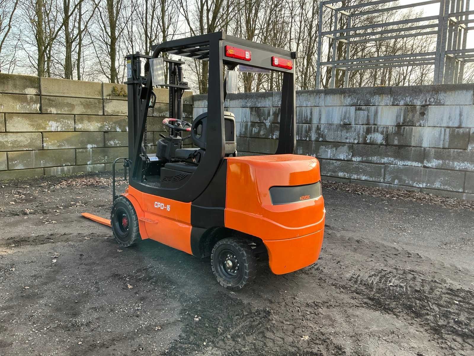 Lepels 1200mm, lepelbord met lastrek 1100mm, duplex mast, 60V accupakket, inclusief lader 110V stekker, led werkverlichting, max hefhoogte 3000mm, max hefvermogen 1500kg Merk: ZVOX Type: CPD-15 Bouwjaar: 2025 Serienummer: DLK2025-3363 Brandstof: Elektrisch Mast: Duplex Soort band: Volrubber banden Aantal wielen: 4 Duplex mast: true Eigen gewicht: 2400kg Hefvermogen: 1500kg Lepellengte: 1200mm Max. hefhoogte: 3000mm Vol rubber banden: true Minimale doorrijhoogte: 2200mm Totale afmeting L: 3520mm Totale afmeting Breedte: 1200mm Totale afmeting Hoogte: 2100mm
