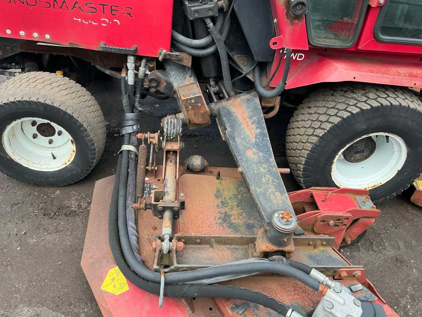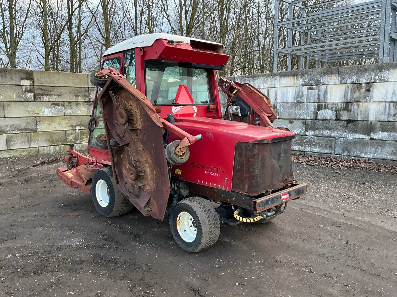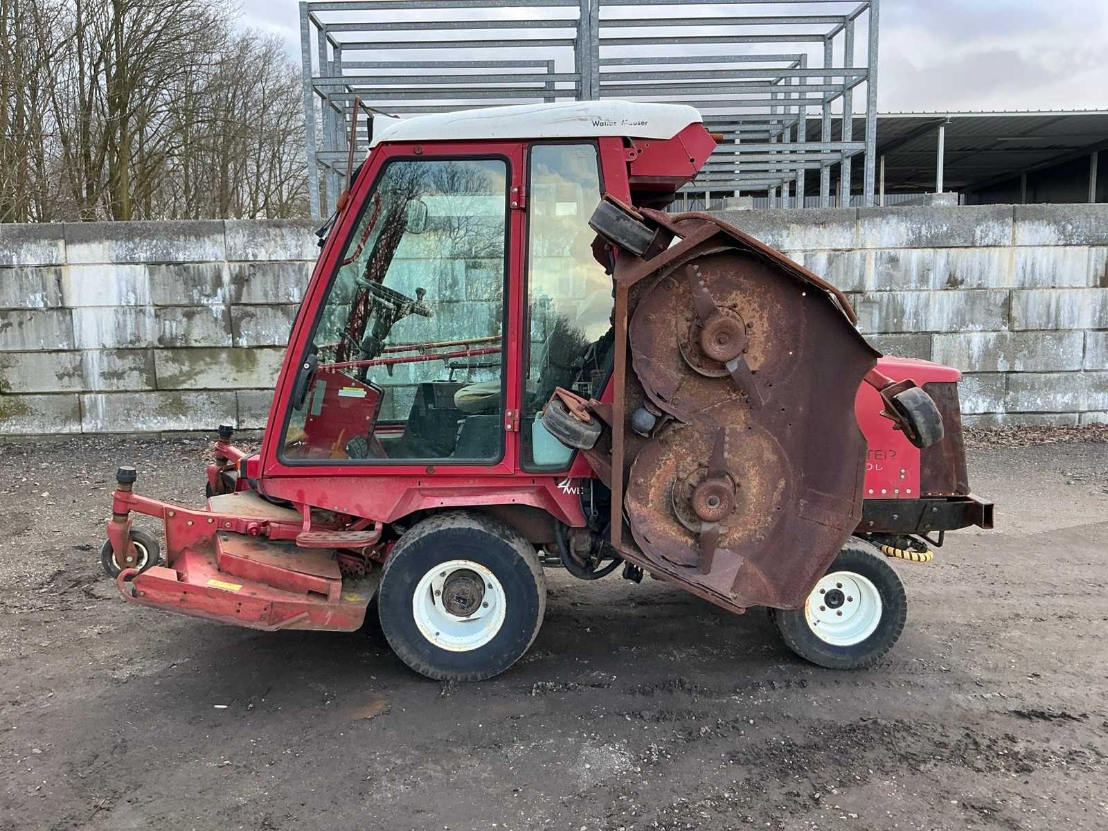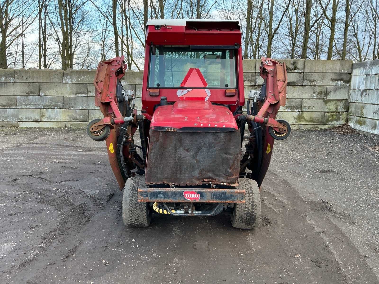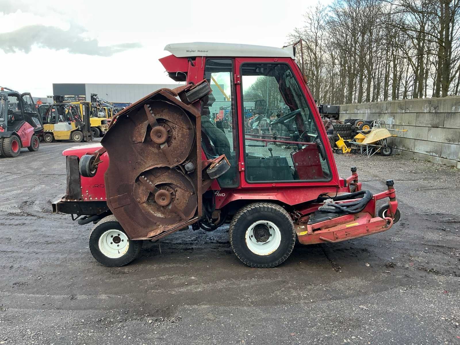 Triple maaidek, Front 1500mm, 2x side 1200mm, hydrostatische aandrijving, werkverlichting, gesloten cabine, radio, verwarming, airco Merk: Toro Type: Groundmaster 4000D Bouwjaar: 2007 Serienummer: 30410-270000820 Werkbreedte: 3900mm Zelfrijdend: true Zitmaaier: true Brandstof: Diesel Motorvermogen (kW): 35kW Eigen gewicht: 1856kg Totale afmeting L: 3500mm Totale afmeting Breedte: 2300mm Totale afmeting Hoogte: 2150mm