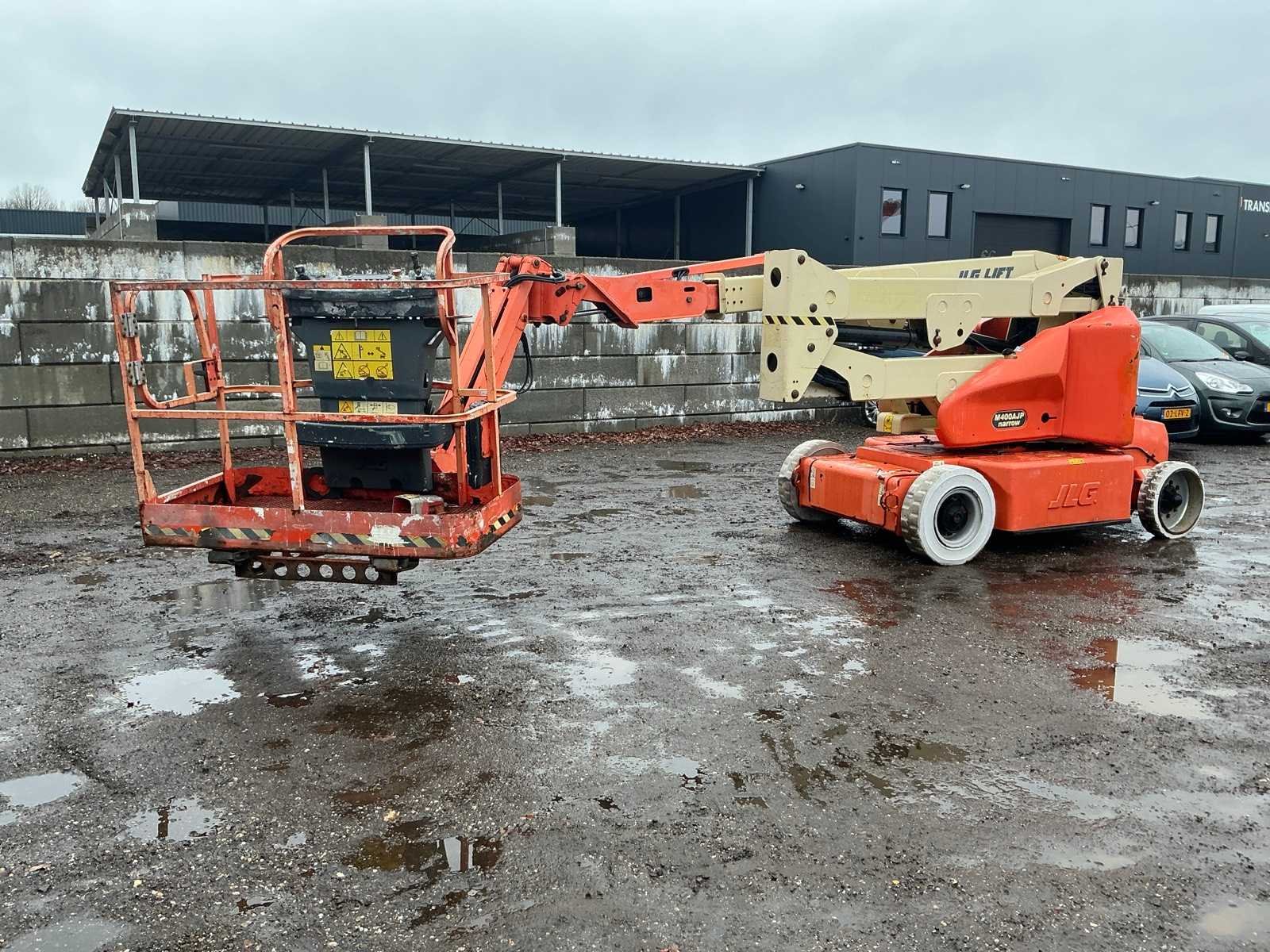 Roterende opbouw, roterende werkbak, roterende Jip, telescopische mast, 48V accupakket Merk: JLG Type: M400 AJP Narrow Bouwjaar: 2008 Serienummer: 0300130846 Diesel: true Elektrisch: true Knikarm hoogwerker: true Werkhoogte: 12190mm Horizontale rijkwijdte: 6830mm Plateau afm. l: 750mm Plateau afm. b: 1530mm Platform capaciteit: 230kg Eigen gewicht: 6900kg Totale afmeting L: 6900mm Totale afmeting Breedte: 1500mm Totale afmeting Hoogte: 2100mm