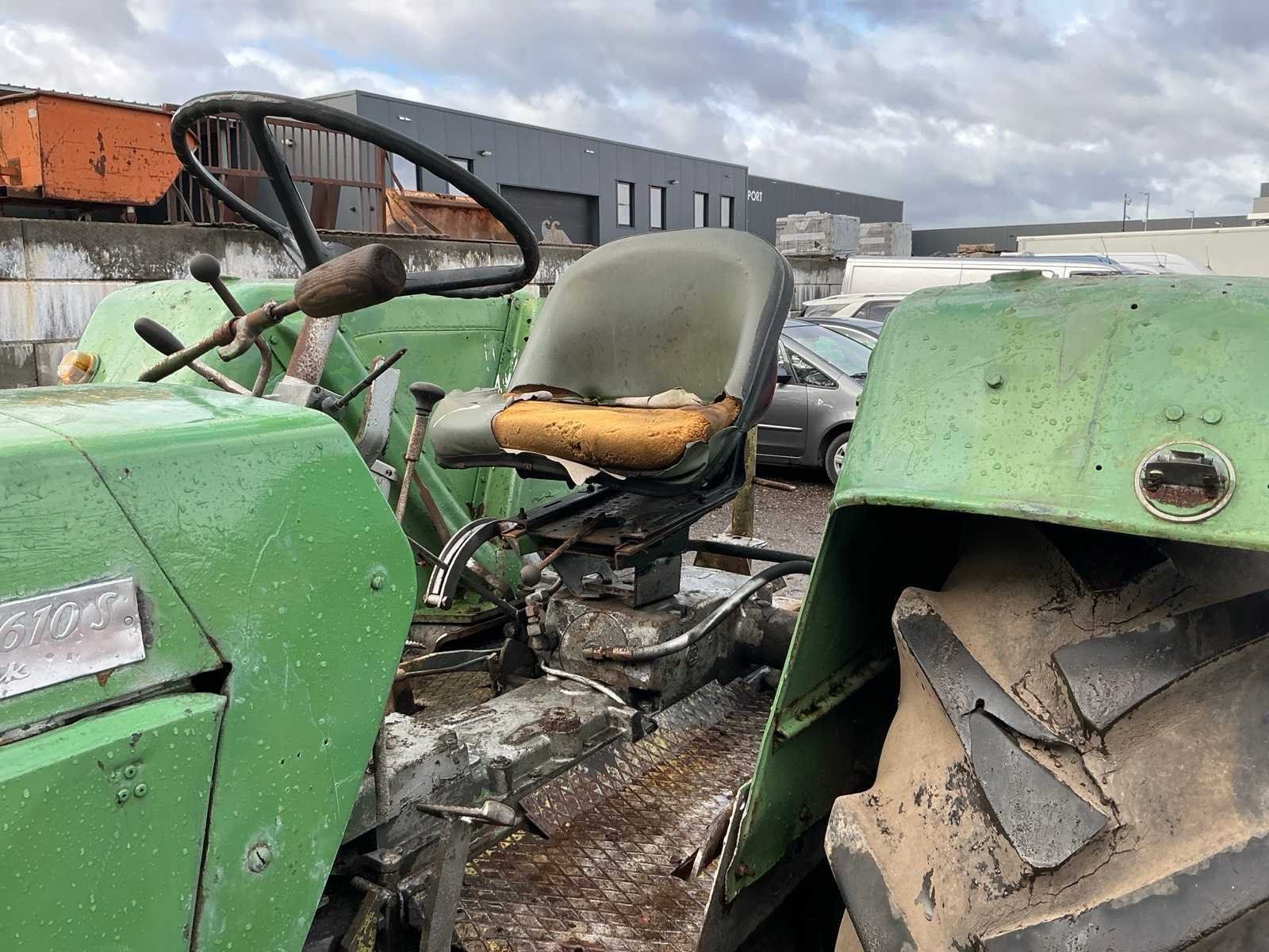 Merk: Fendt Type: 610S turbomatic Bouwjaar: 1972 Serienummer: 181210746 Motorvermogen (kW): 63.4kW Afgelezen urenstand: 5485 Versnellingsbaktype: Handmatig Bandenmaat voor: 12.4/11 R24 Bandenmaat achter: 18.4/15 R34 Eigen gewicht: 4310kg Totale afmeting L: 4400mm Totale afmeting Breedte: 2200mm Totale afmeting Hoogte: 2550mm Nationaliteit documenten: België