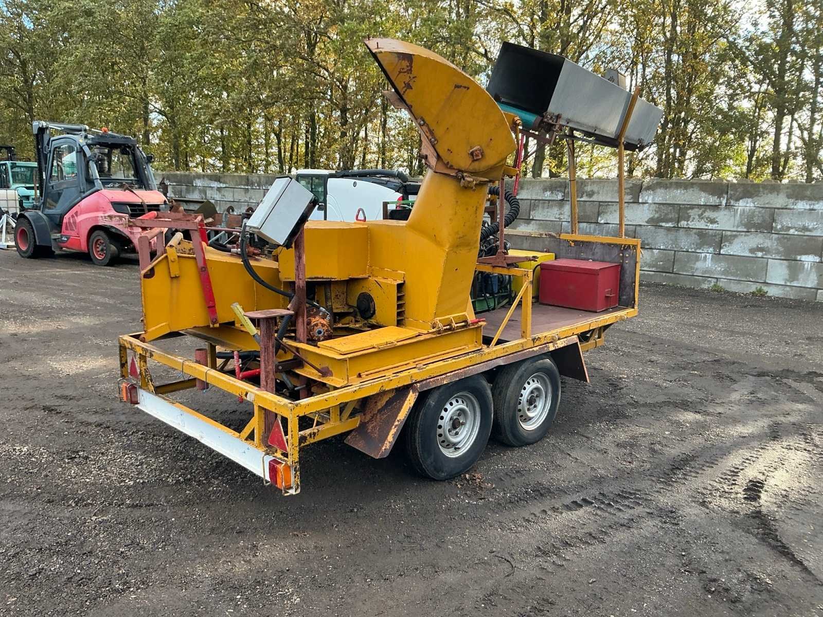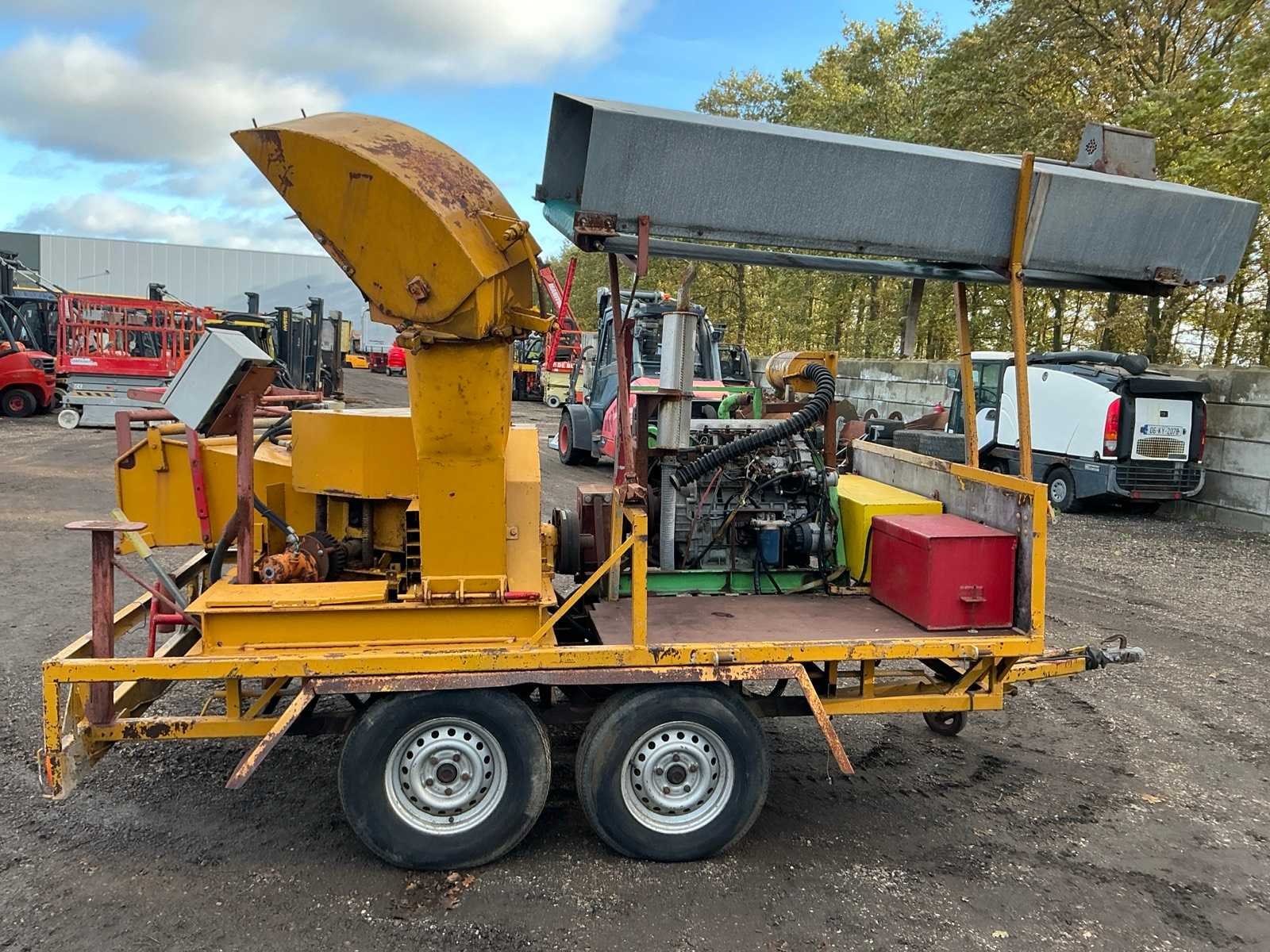 Let op; werking onbekend, startmotor ontbreekt, inclusief transport band, Merk: Peter Jensen Bouwjaar: 1977 Serienummer: 2906 Brandstofmotor aangedreven: true Eigen gewicht: 900kg Totale afmeting L: 4200mm Totale afmeting Breedte: 2200mm Totale afmeting Hoogte: 2500mm