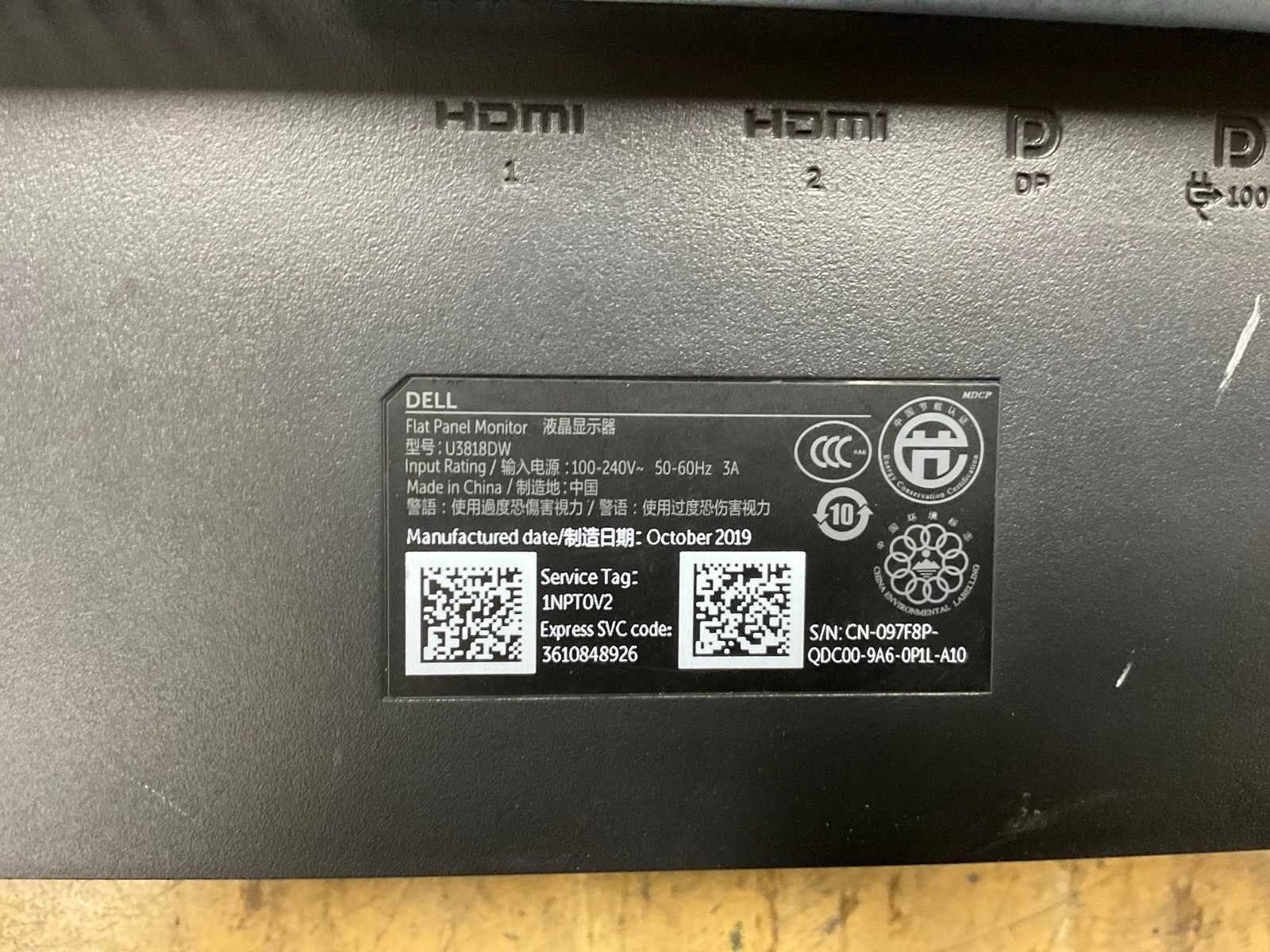 2019: Merk: Dell Type: U3818DW HDMI: 2 USB: 3 Breedte: 90cm Hoogte: 40cm