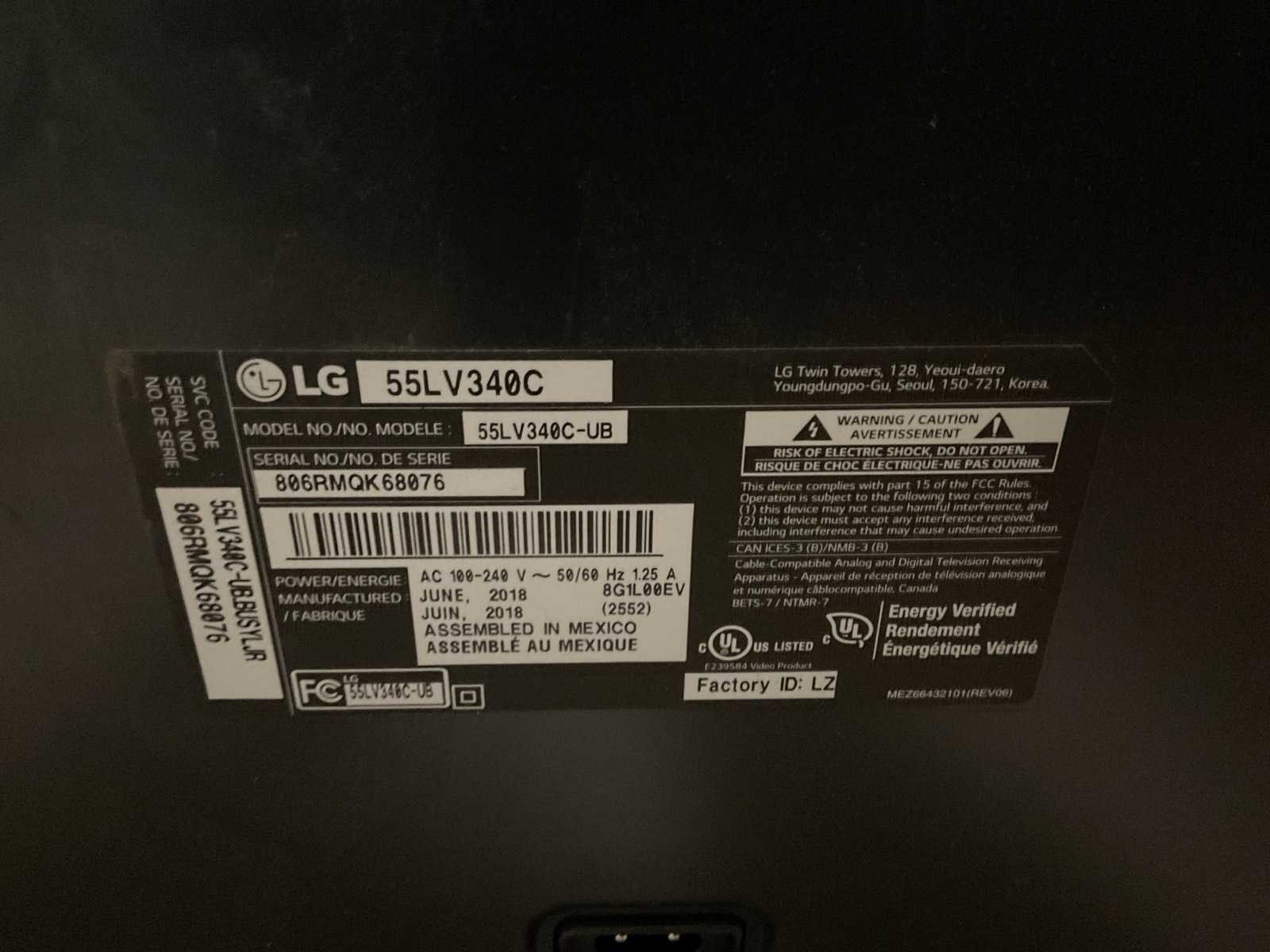 Merk: LG Type: 55LV340C Beelddiagonaal: 55'' HDMI: 1