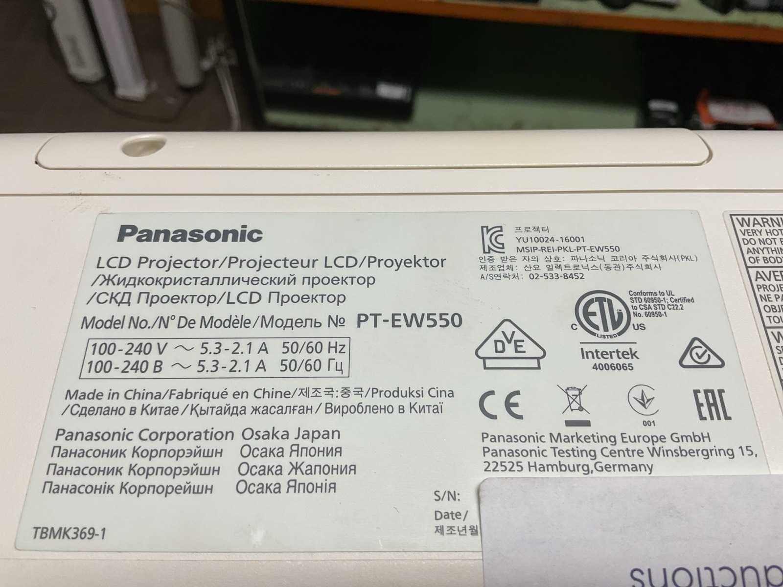 Panasonic pt-ew550 projector