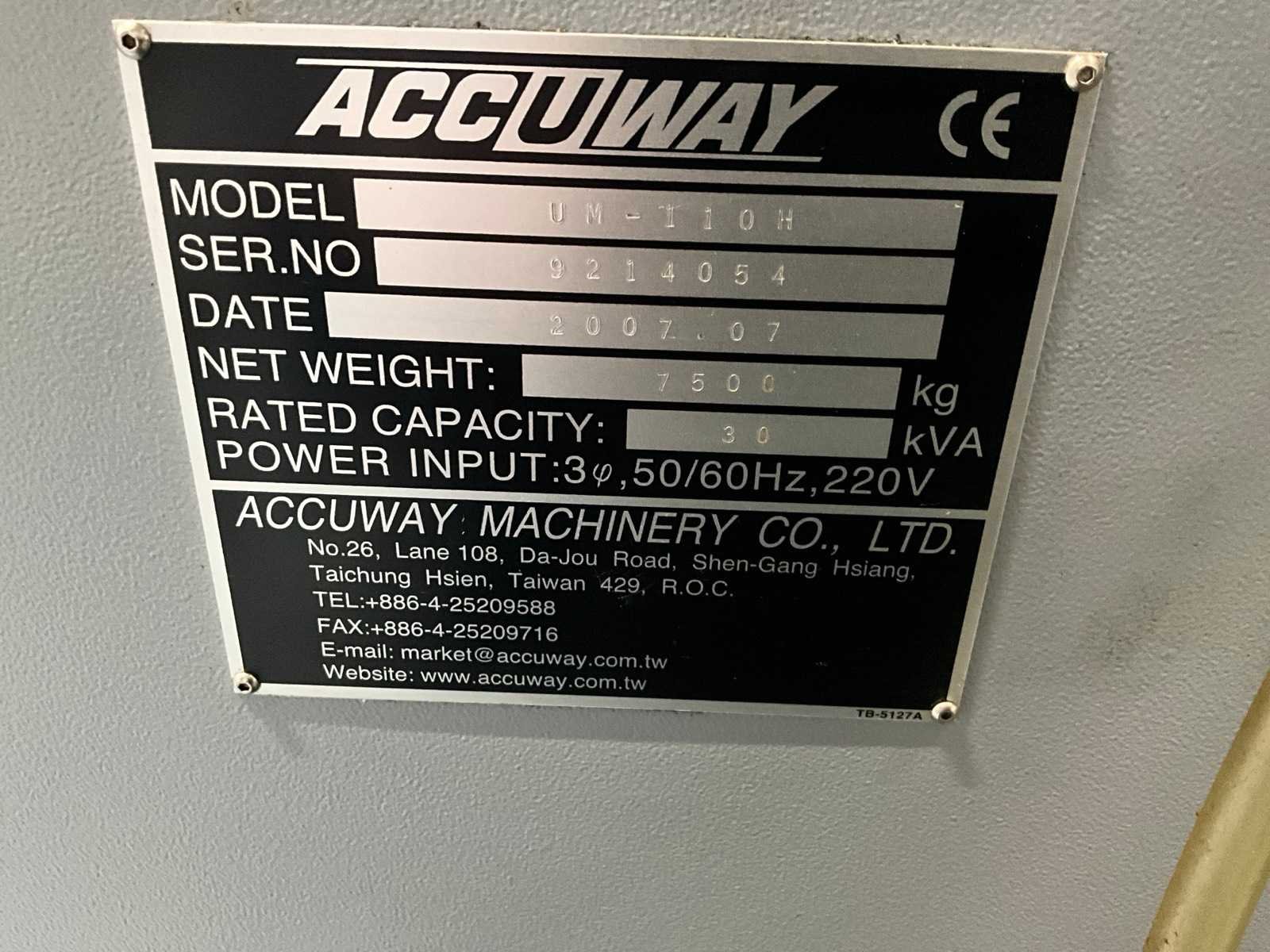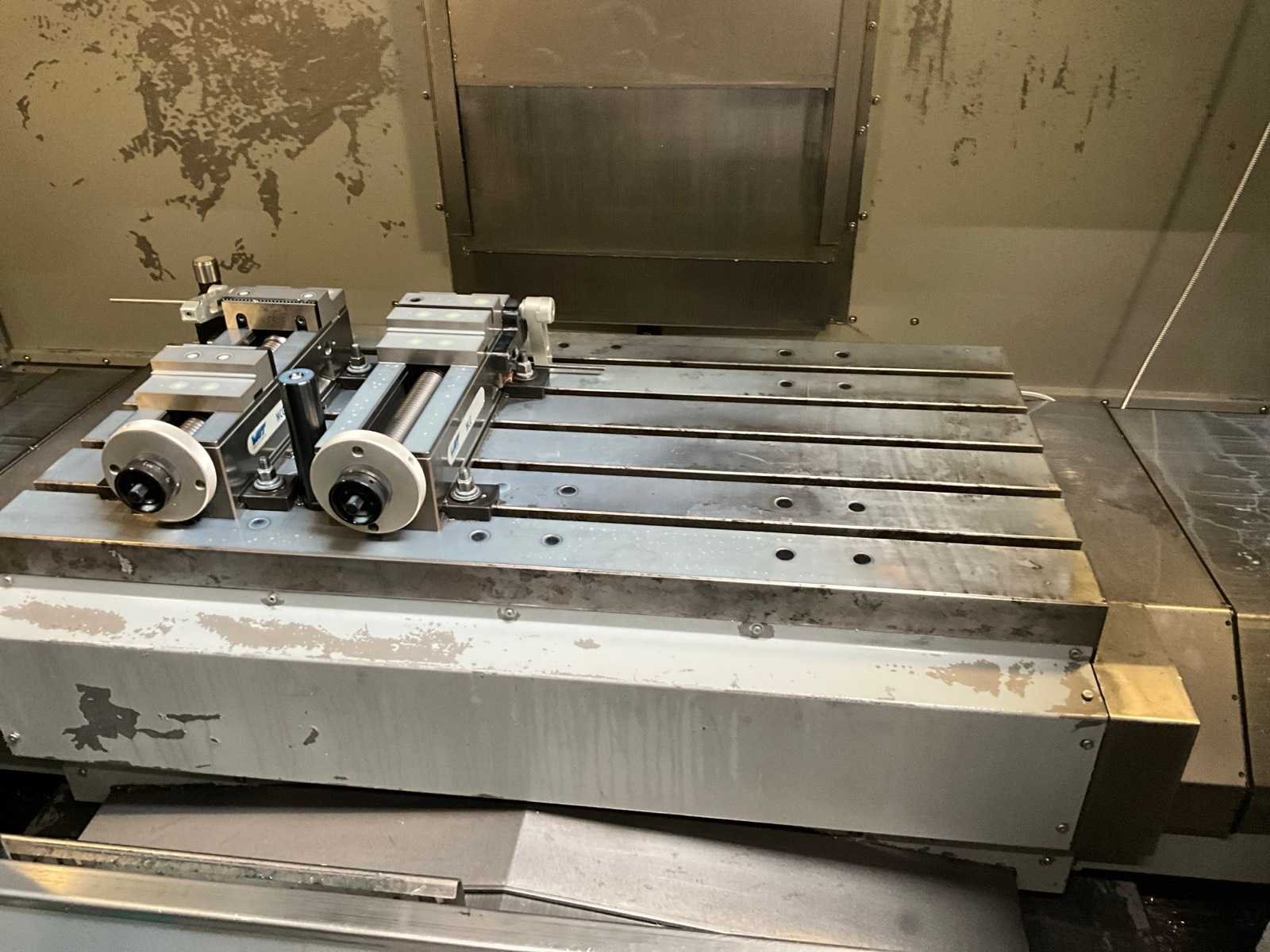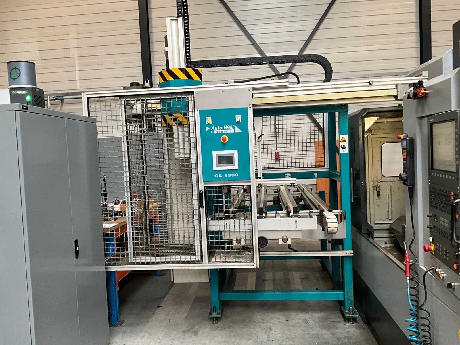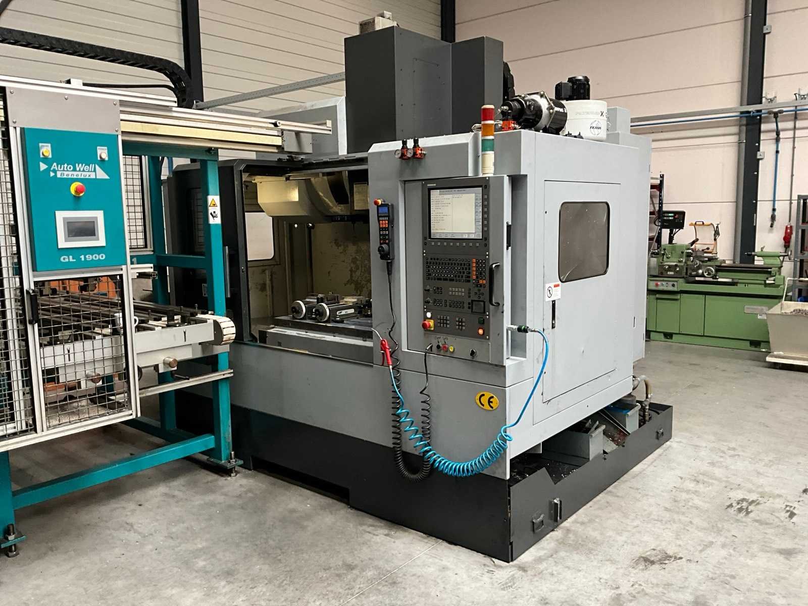 Voorzien van 24 gereedschap wisselstations, Autowell GL1900 loader / Portaallader, machineklemmen in de machine zijn niet inbegrepen, spindel vervangen in 2023, inclusief vierde as in 2 pallets Merk: Accuway Type: UM-110H Bouwjaar: 2007 Verplaatsing x-as: 1100mm Verplaatsing y-as: 550mm Verplaatsing z-as: 550mm Opname: BT40 Snelheid van n =: 50rpm Snelheid tot n =: 12000rpm Tafel afmeting l: 600mm Tafel afmeting b: 1200mm CNC-besturing, merk, type: Heidenhain TNC530i Aansluiting: 380V Machinegewicht: 7500kg Afmeting l: 3000mm Afmeting b: 3000mm Afmeting h: 2700mm