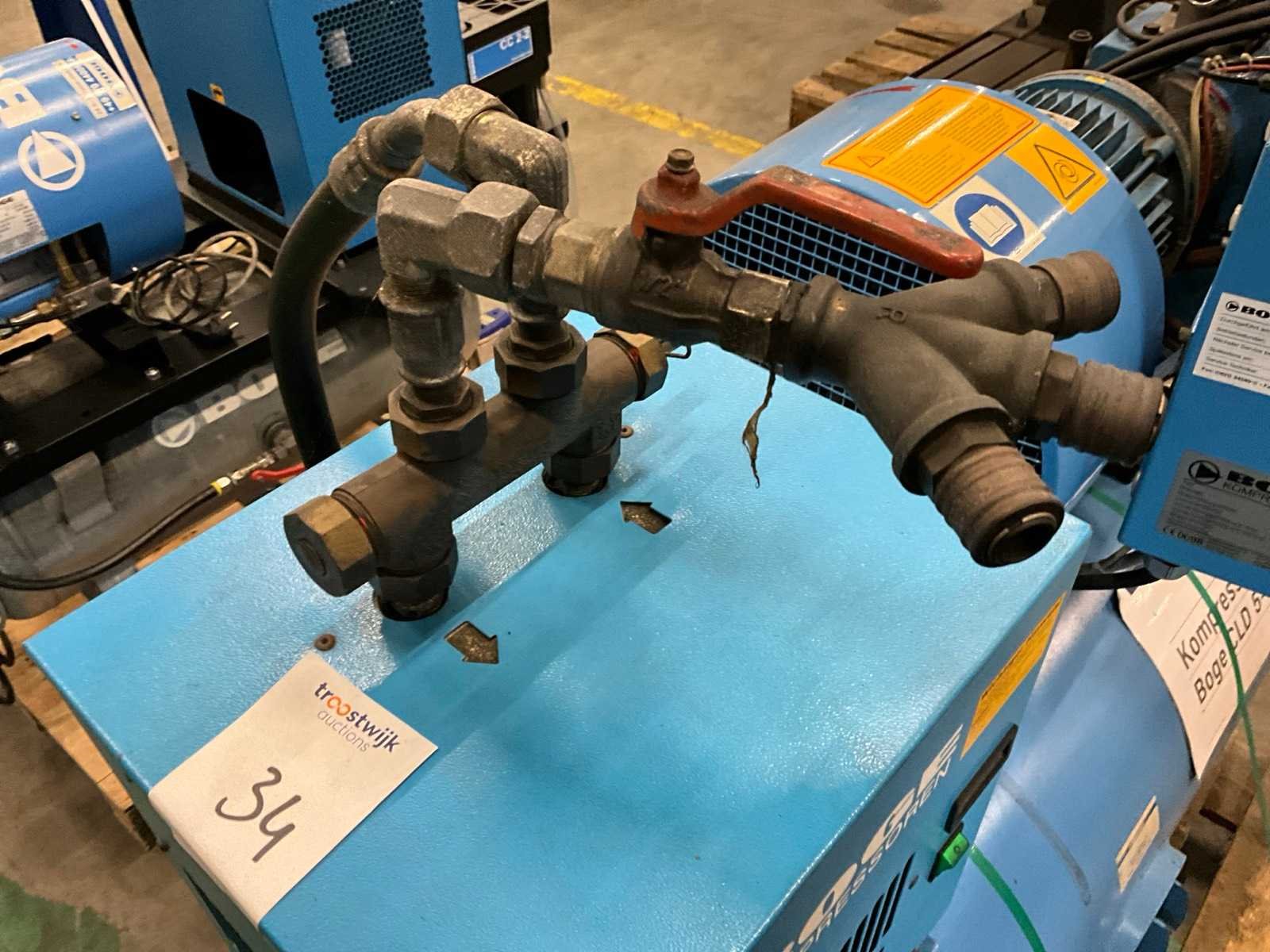 Boge DB3 luchtdroger 230 Volt; 3x snelkoppeling, vocht aftapkraan tank; inclusief pallet; Merk: Boge Type: CLD5-270 Bouwjaar: 2003 Serienummer: 51588 Capaciteit.: 10bar Luchtstroom: 482l/min Vermogen: 4kW Buffertank inhoud: 270l Luchtdroger: true Aansluiting: 400V Eigen gewicht: 300kg Totale afmeting L: 1550mm Totale afmeting Breedte: 600mm Totale afmeting Hoogte: 1250mm