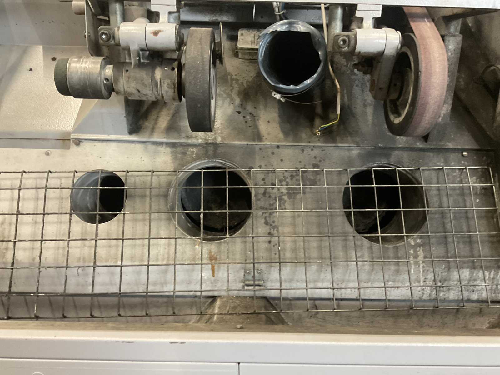 (2x) elektrisch aangedreven schuur-/polijstband; maximale werkbreedte 40 mm; voorzien van afzuigslang; gemonteerd op ladenkast Aansluiting: 400V Totale afmeting L: 1350mm Totale afmeting Breedte: 750mm Totale afmeting Hoogte: 1700mm