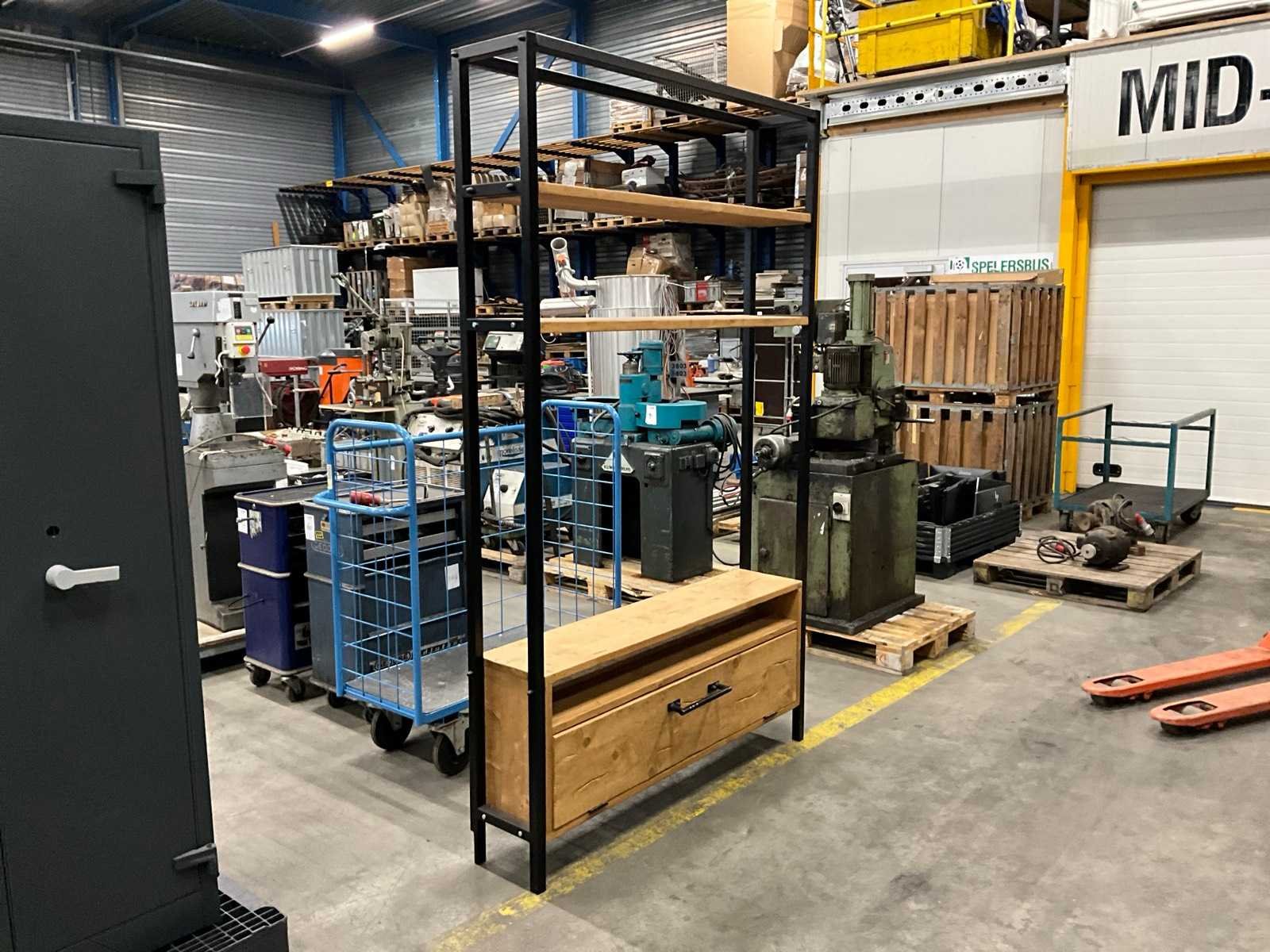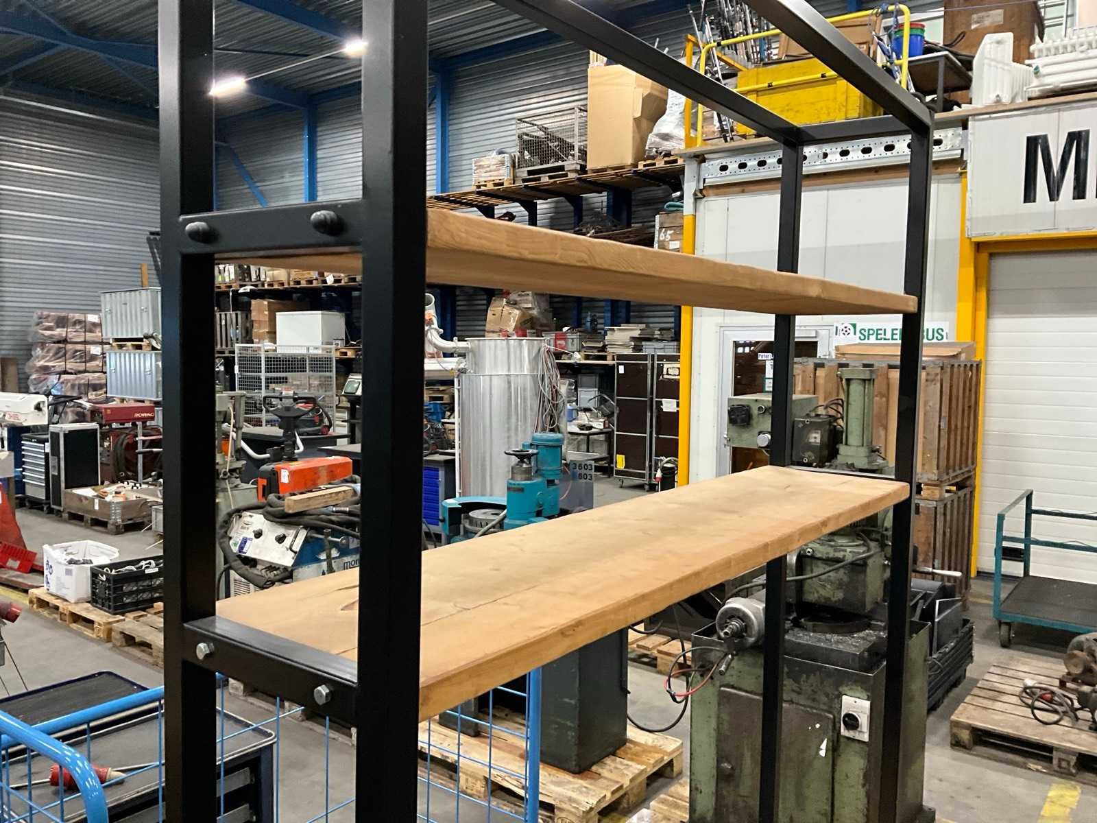 Stalen frame met houten planken en klep Lengte: 30cm Breedte: 150 Hoogte: 240cm