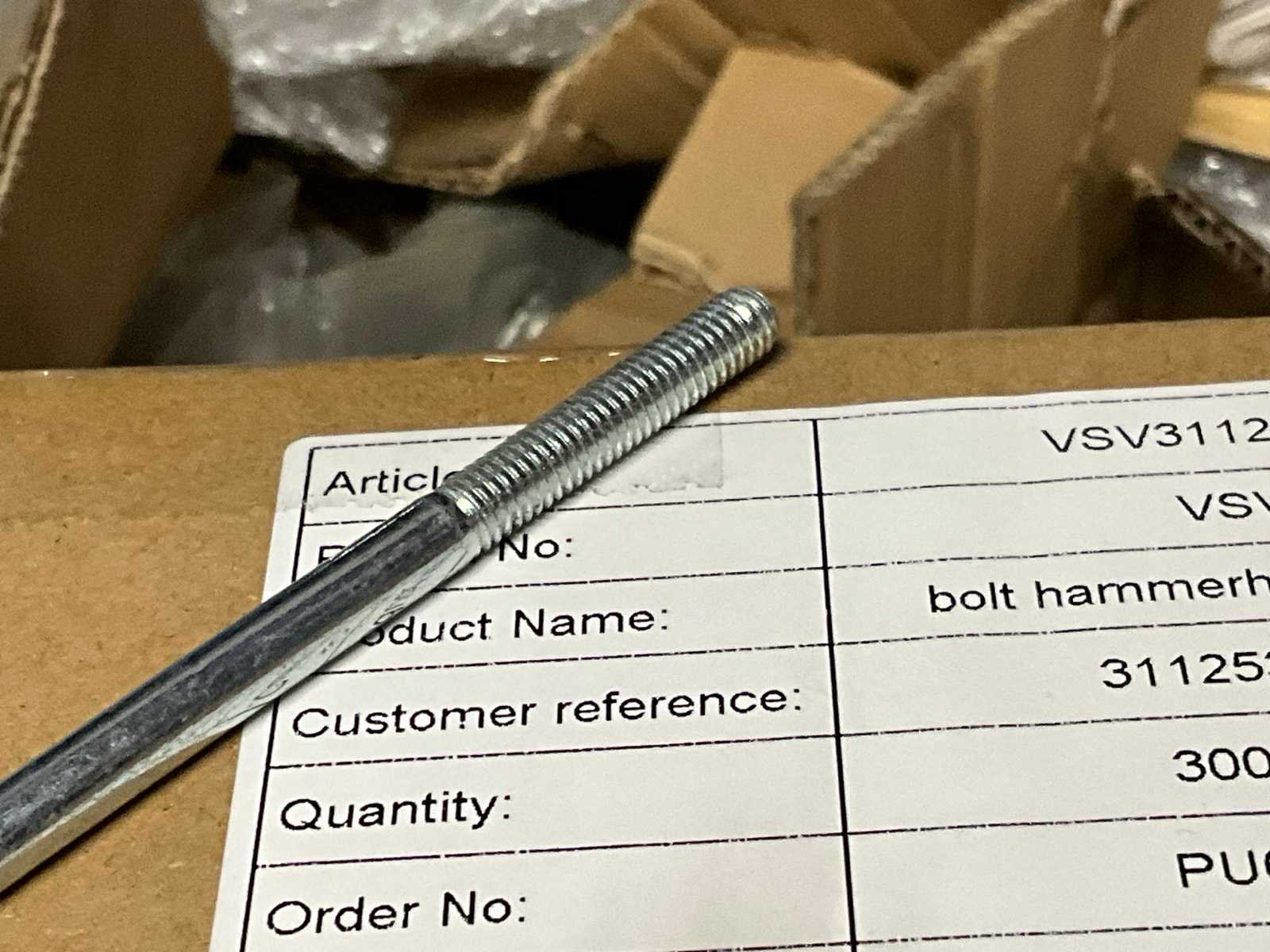 30 dozen à 300 stuk per doos; gewicht 9,4 kg per doos; inclusief pallet; Type: M6x127 mm
