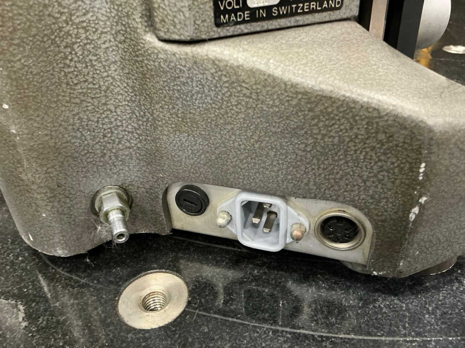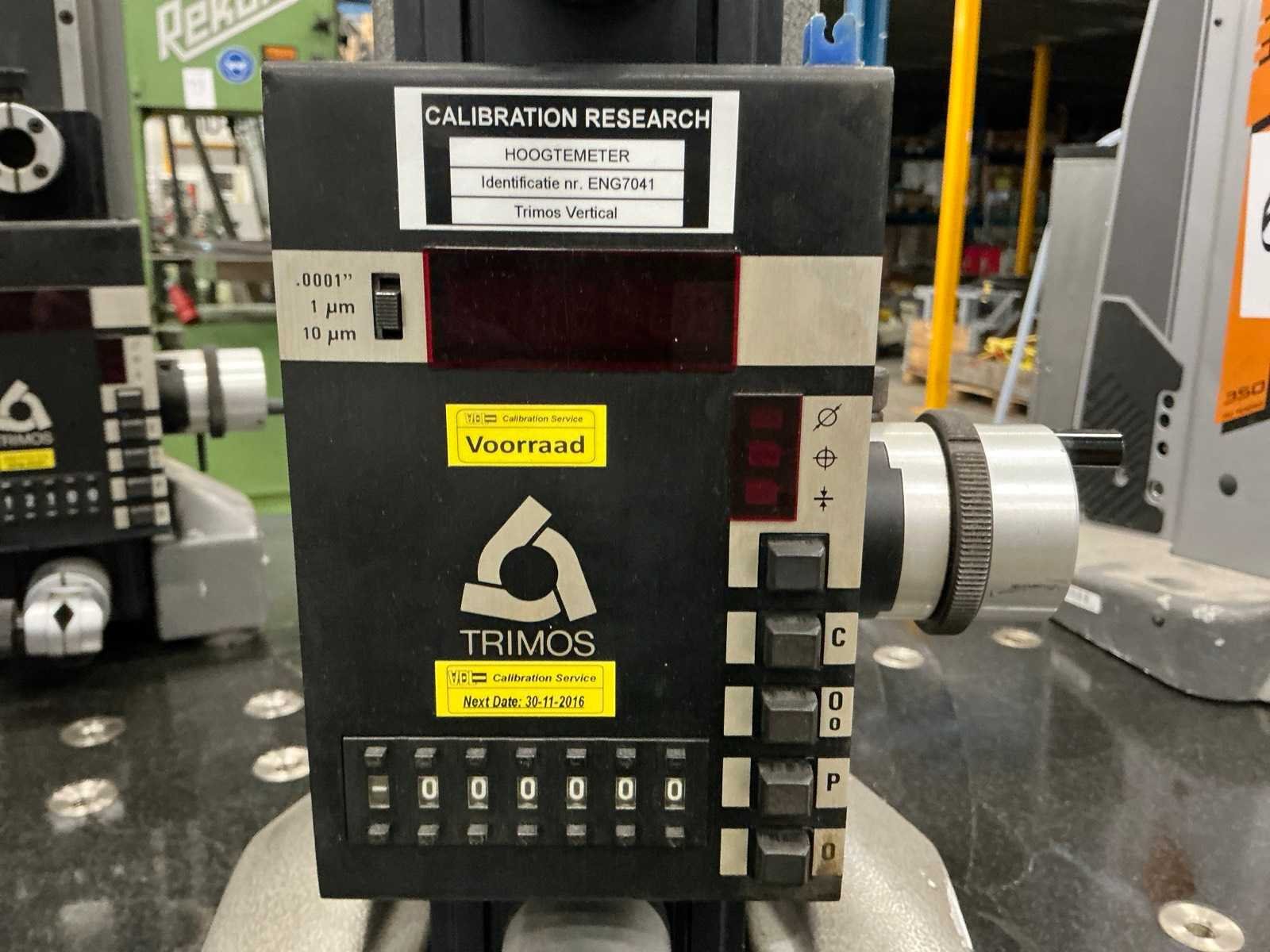Meet nauwkeurigheid instelbaar, 0,001”, 1um of 10 um, perslucht aansluiting Merk: Trimos Type: Vertical Serienummer: 3119 Aansluiting: 230V Totale afmeting L: 210mm Totale afmeting Breedte: 240mm Totale afmeting Hoogte: 850mm