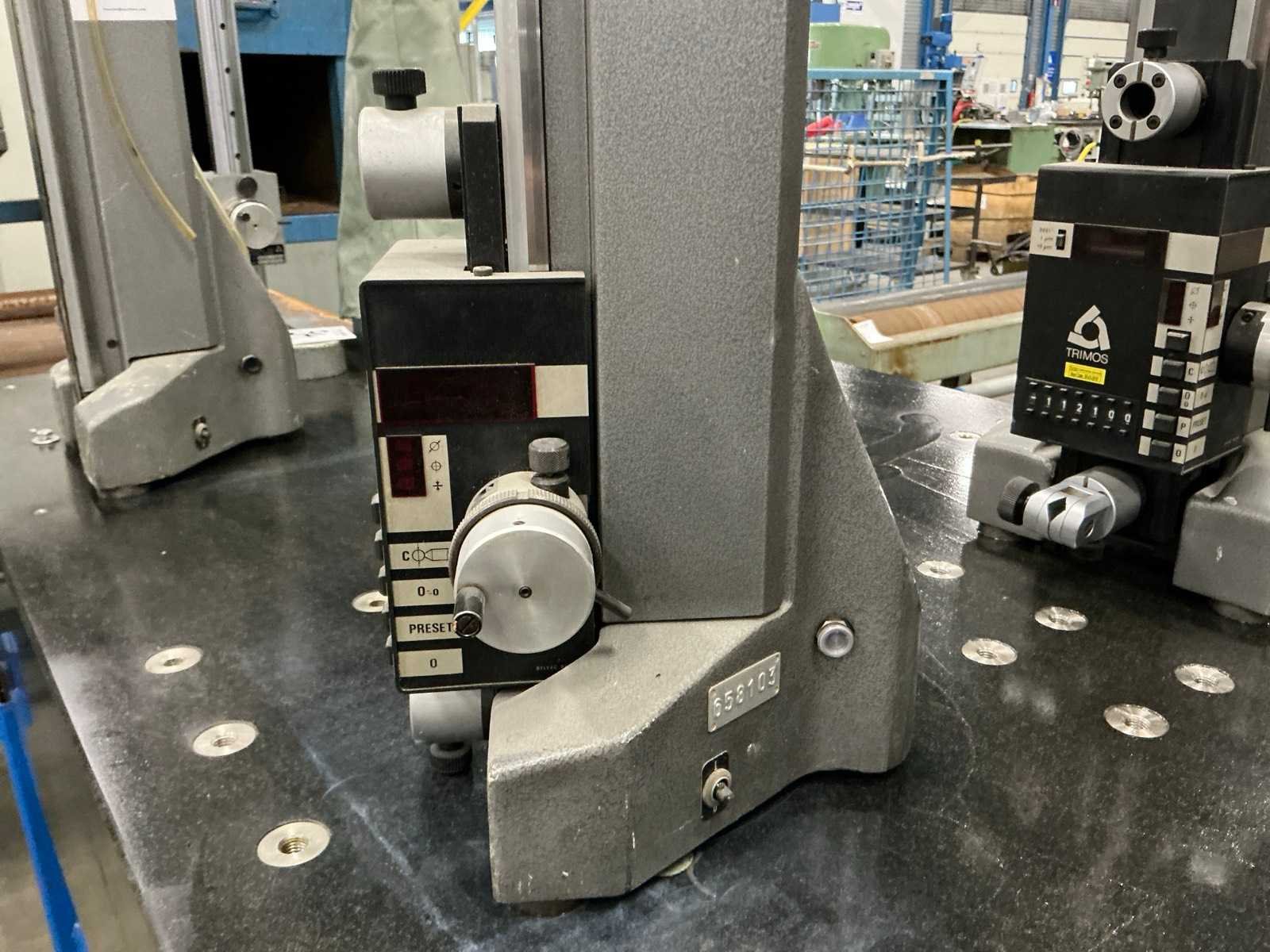 Meet nauwkeurigheid instelbaar, 0,001”, 1um of 10 um, perslucht aansluiting Merk: Trimos Type: Vertical Serienummer: 6355 Aansluiting: 230V Totale afmeting L: 210mm Totale afmeting Breedte: 240mm Totale afmeting Hoogte: 850mm